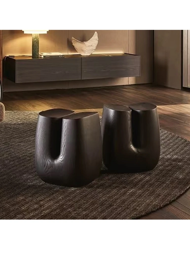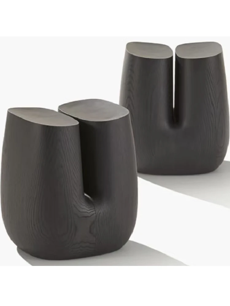 Poliform Italian Minimalist Solid Black Oak Stool - Creative UBE Bedside Table and Dressing Stool for Bedroom