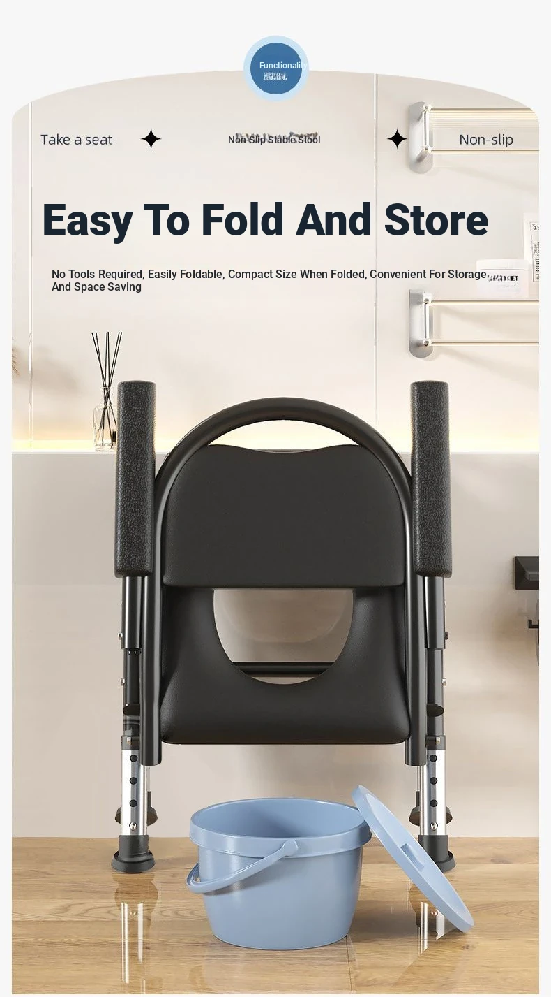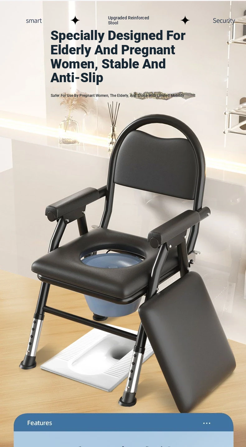 Portable Folding Toilet Chair for Seniors - Comfortable and Convenient Commode for the Elderly, Pregnant Women, and Patients - Ideal for Home Use and Easy Mobility