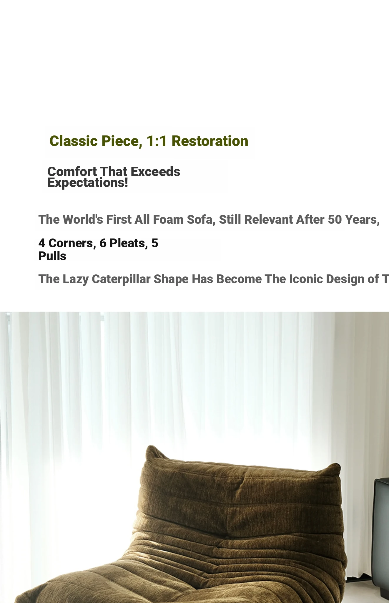 Premium Designer Togo Caterpillar Lazy Sofa Chair - Stylish and Comfortable Single Recliner for Relaxation - Perfect for Your Space