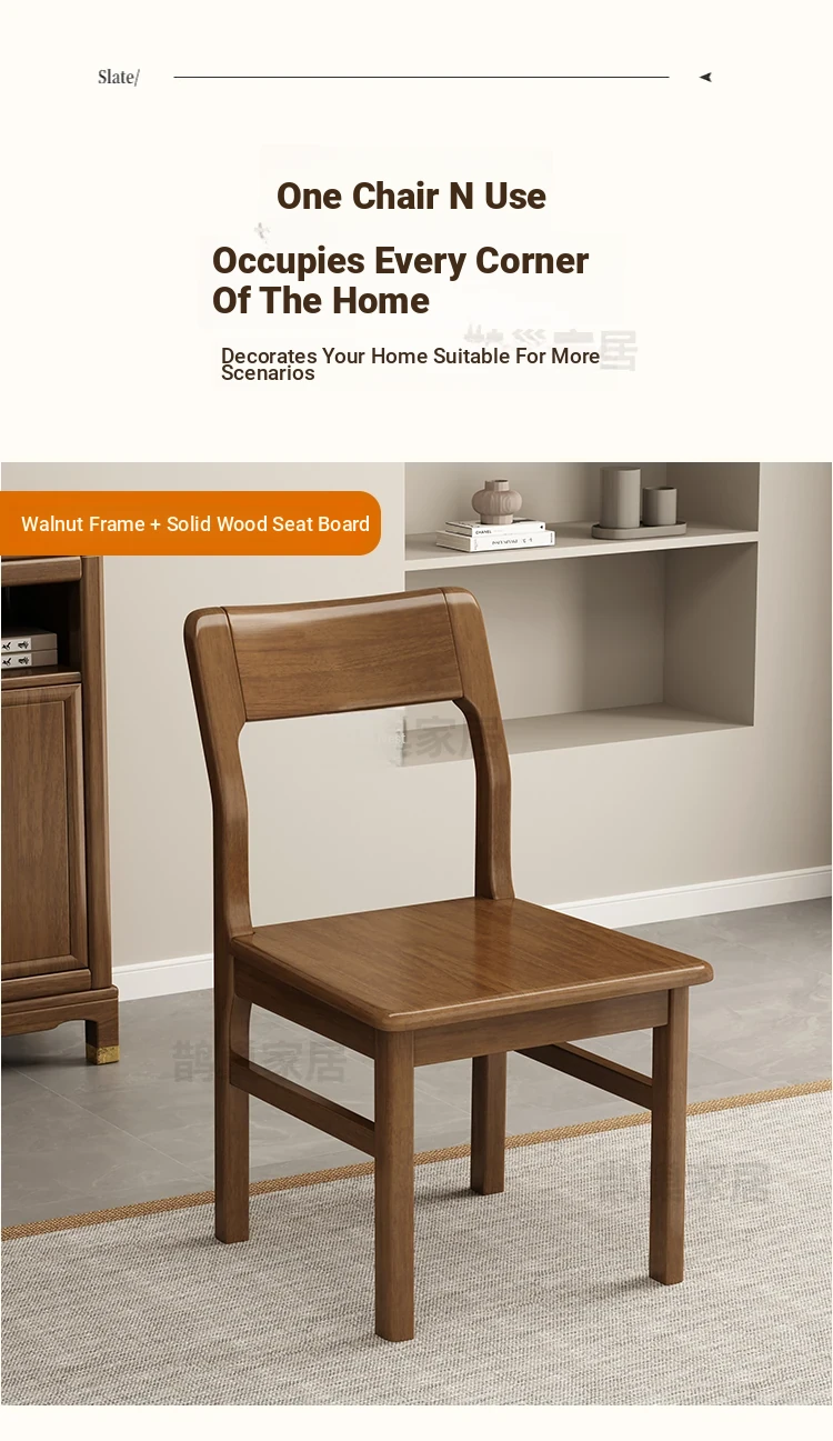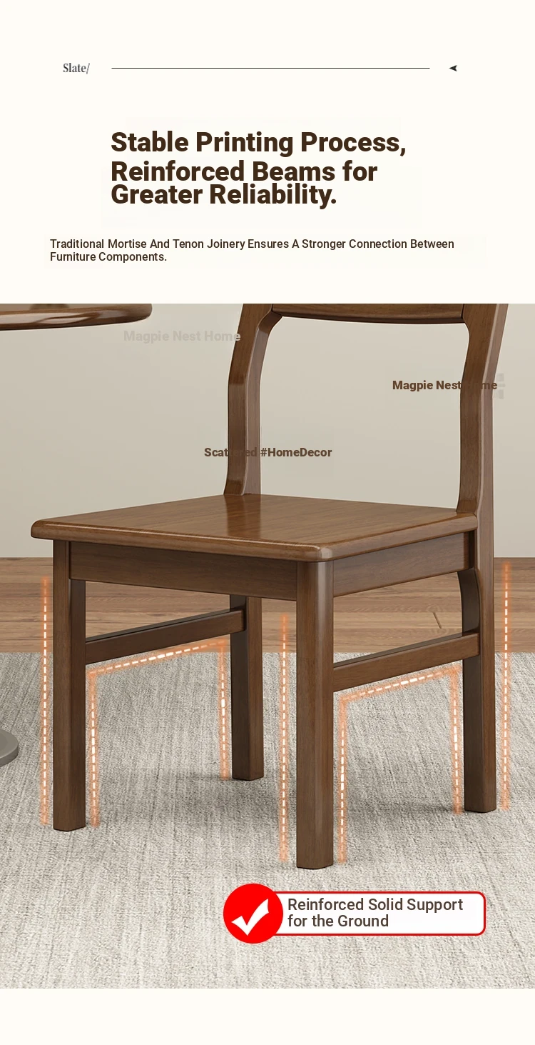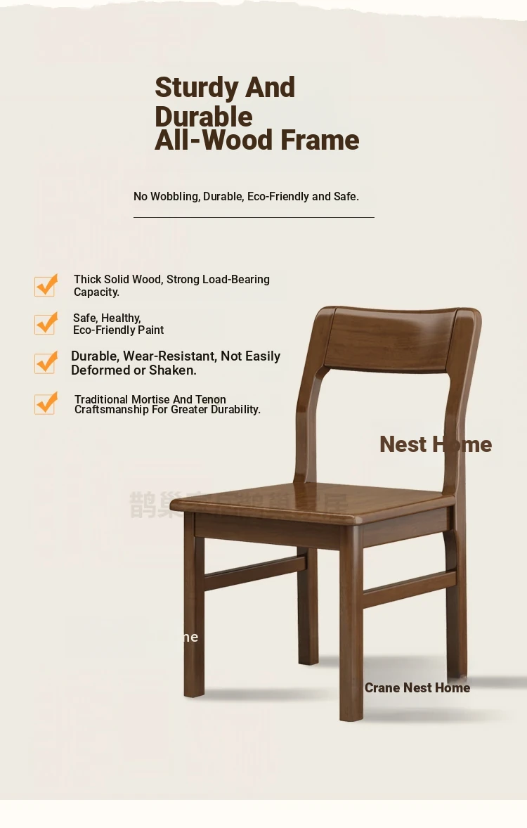 Solid Wood Dining Chair - Versatile Home and Office Seating for Dining Rooms, Desks, and Lounging - Comfortable Backrest, Stylish Design, Perfect for Relaxation and Productivity.