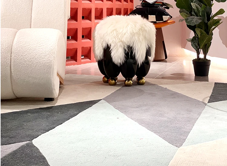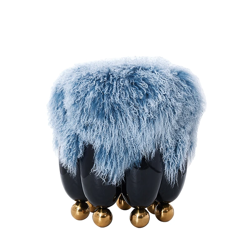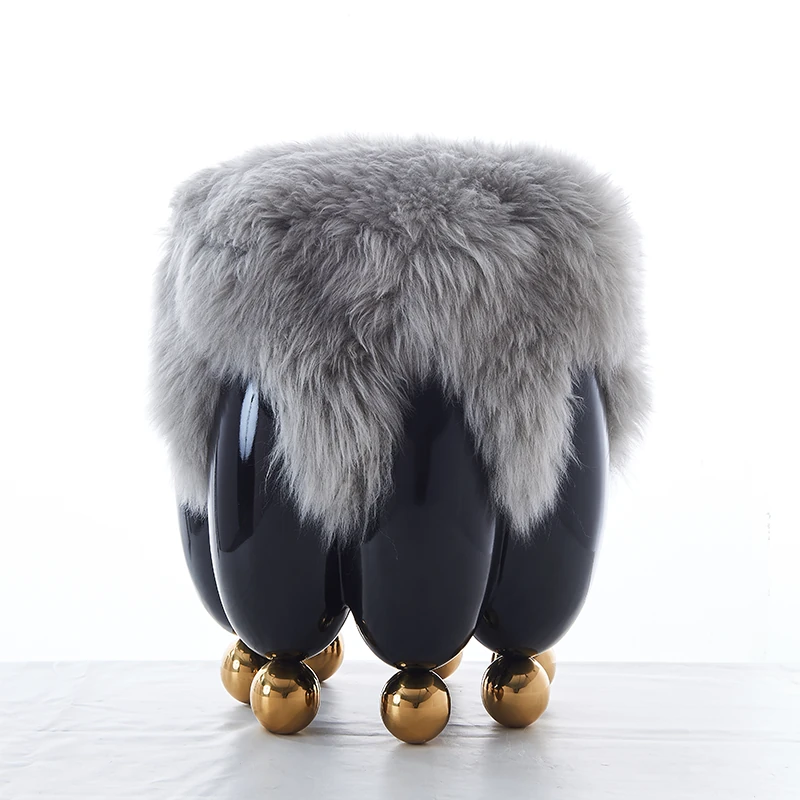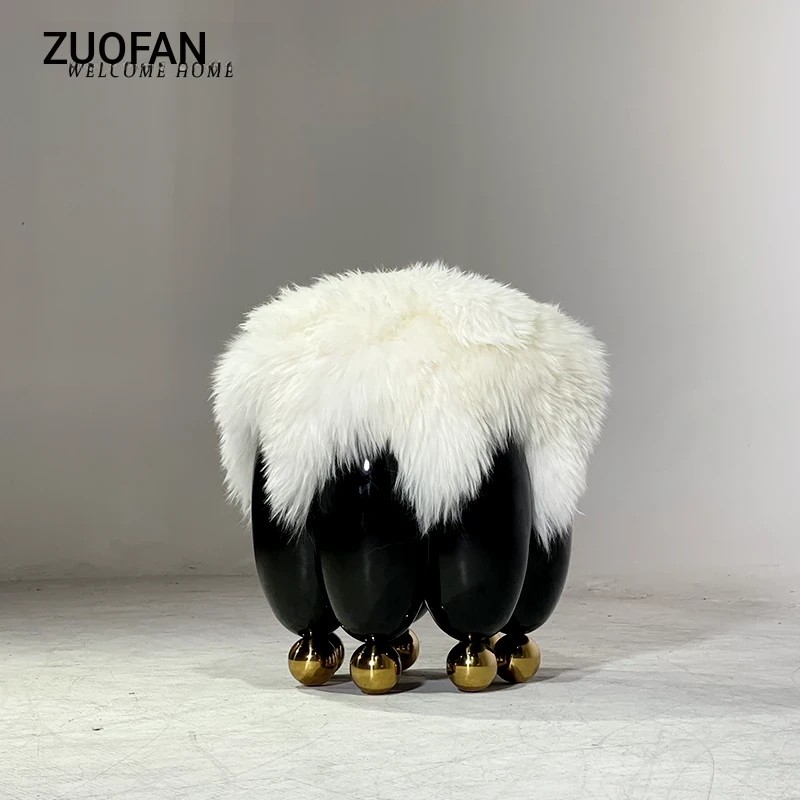 Stylish Luxury Natural Wool Low Stool - Italian Minimalist Small Round Stool for Living Room, Shoe Changing, Makeup, and Sofa Use
