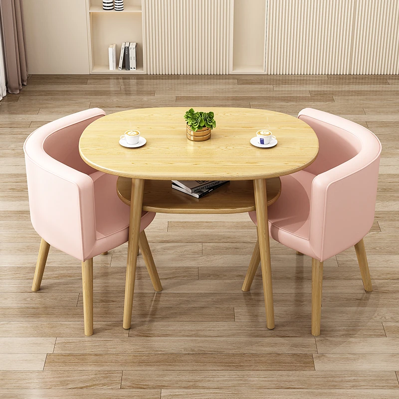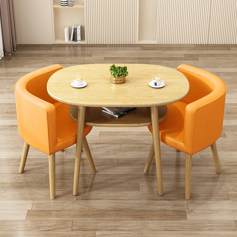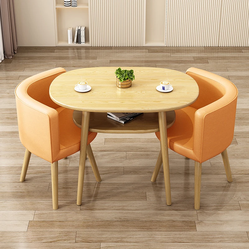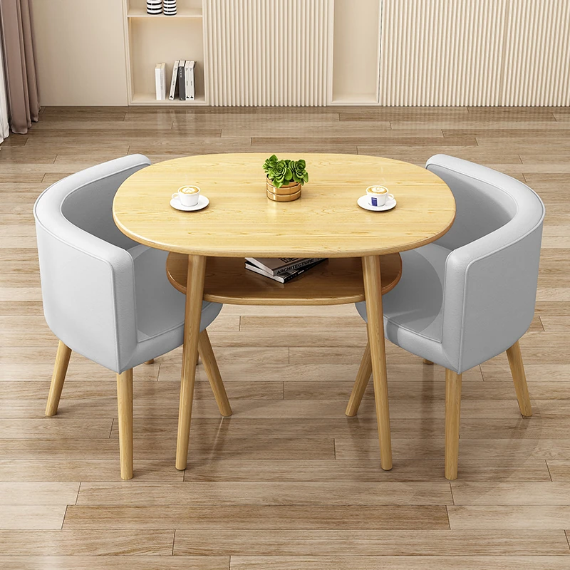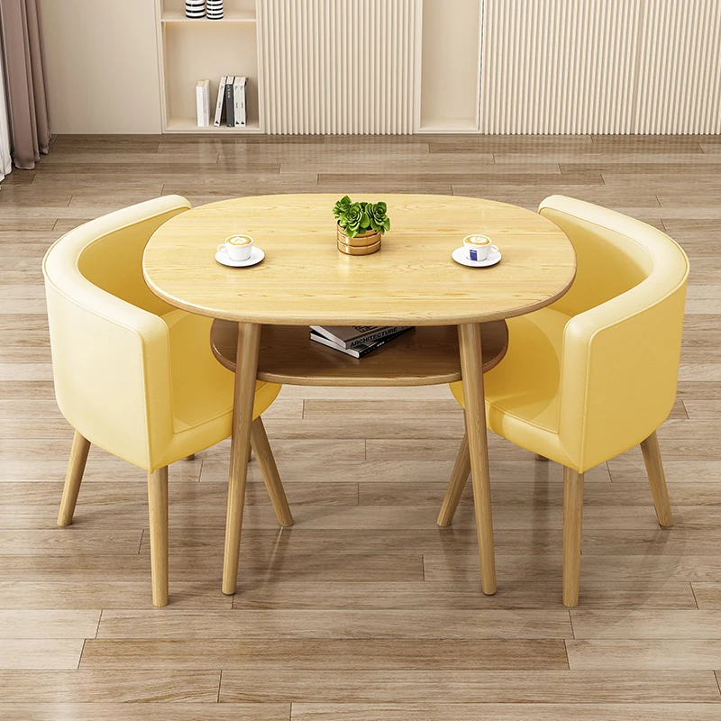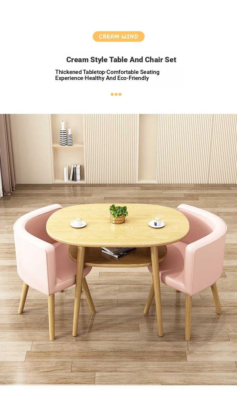 Stylish Reception Table and Chair Set for Cozy Spaces – Creamy Aesthetic Small Round Dining Table, Perfect for Shops and Casual Meetings