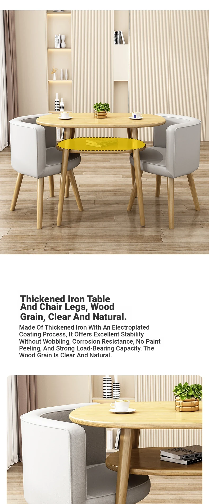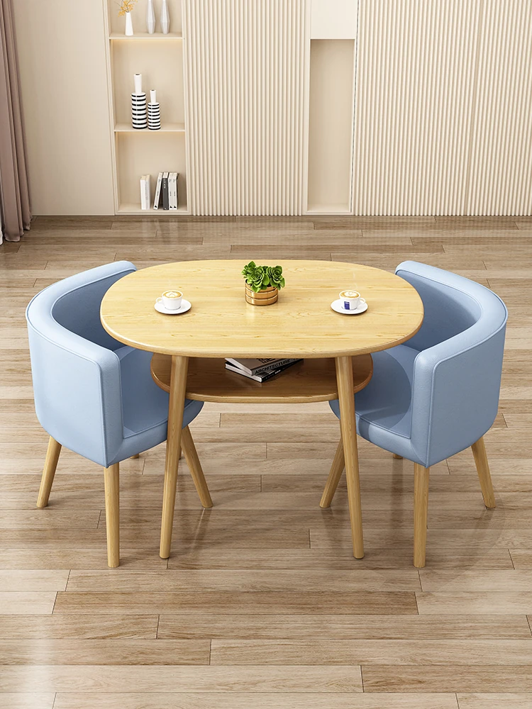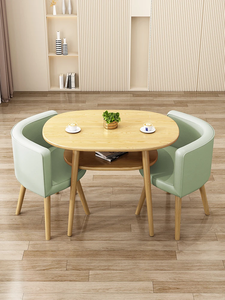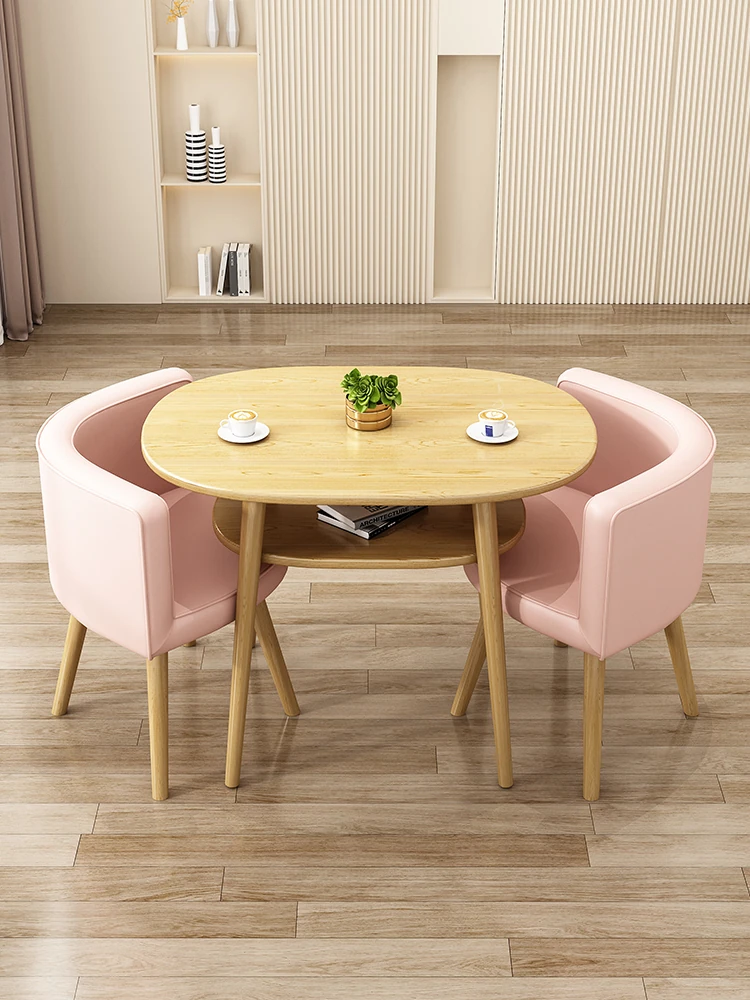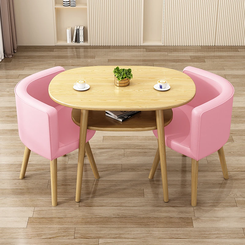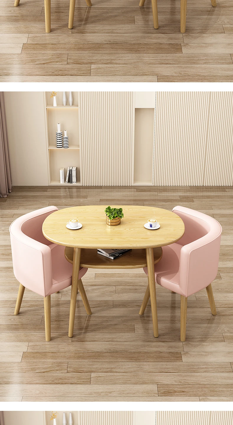 Stylish Reception Table and Chair Set for Cozy Spaces – Creamy Aesthetic Small Round Dining Table, Perfect for Shops and Casual Meetings