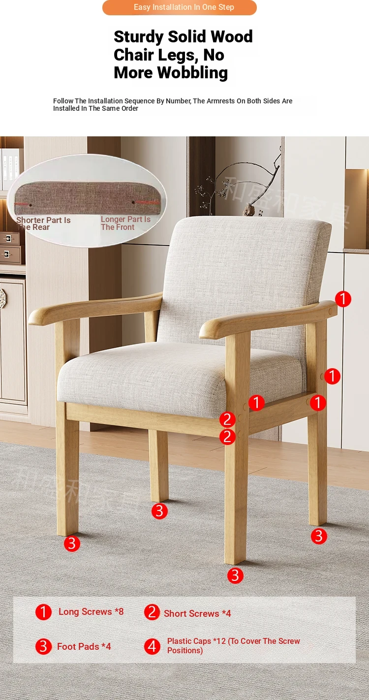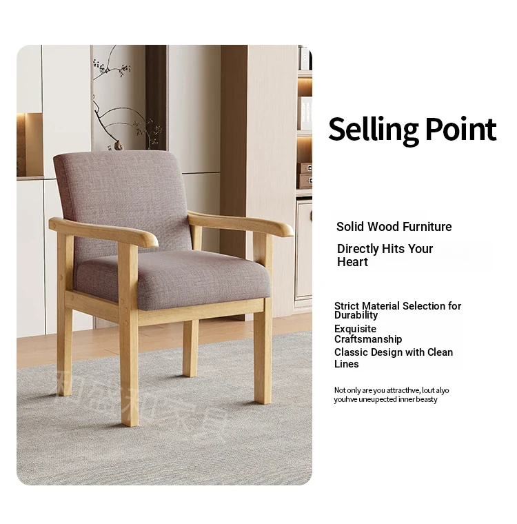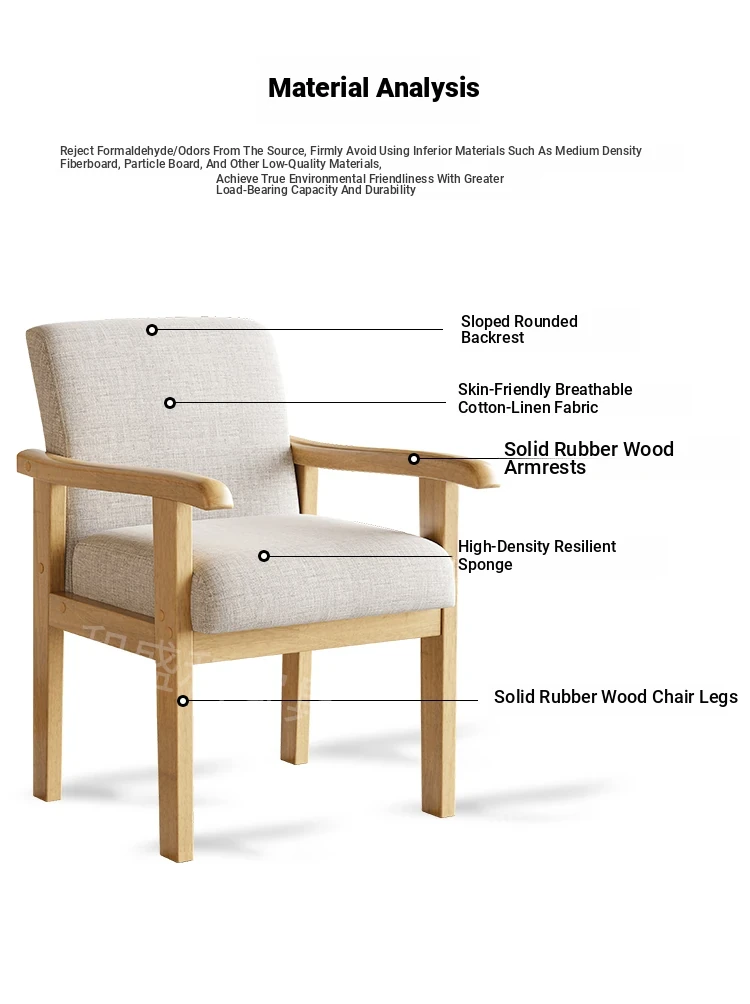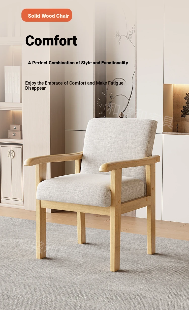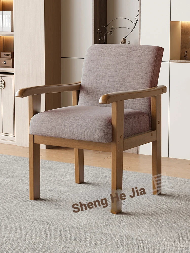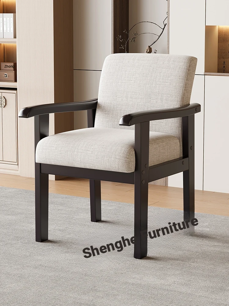 Thickened Solid Wood Armchair - Versatile Conference, Dining, and Study Chair for Home Use, Perfect for Mahjong Games and Comfortable Support for Seniors