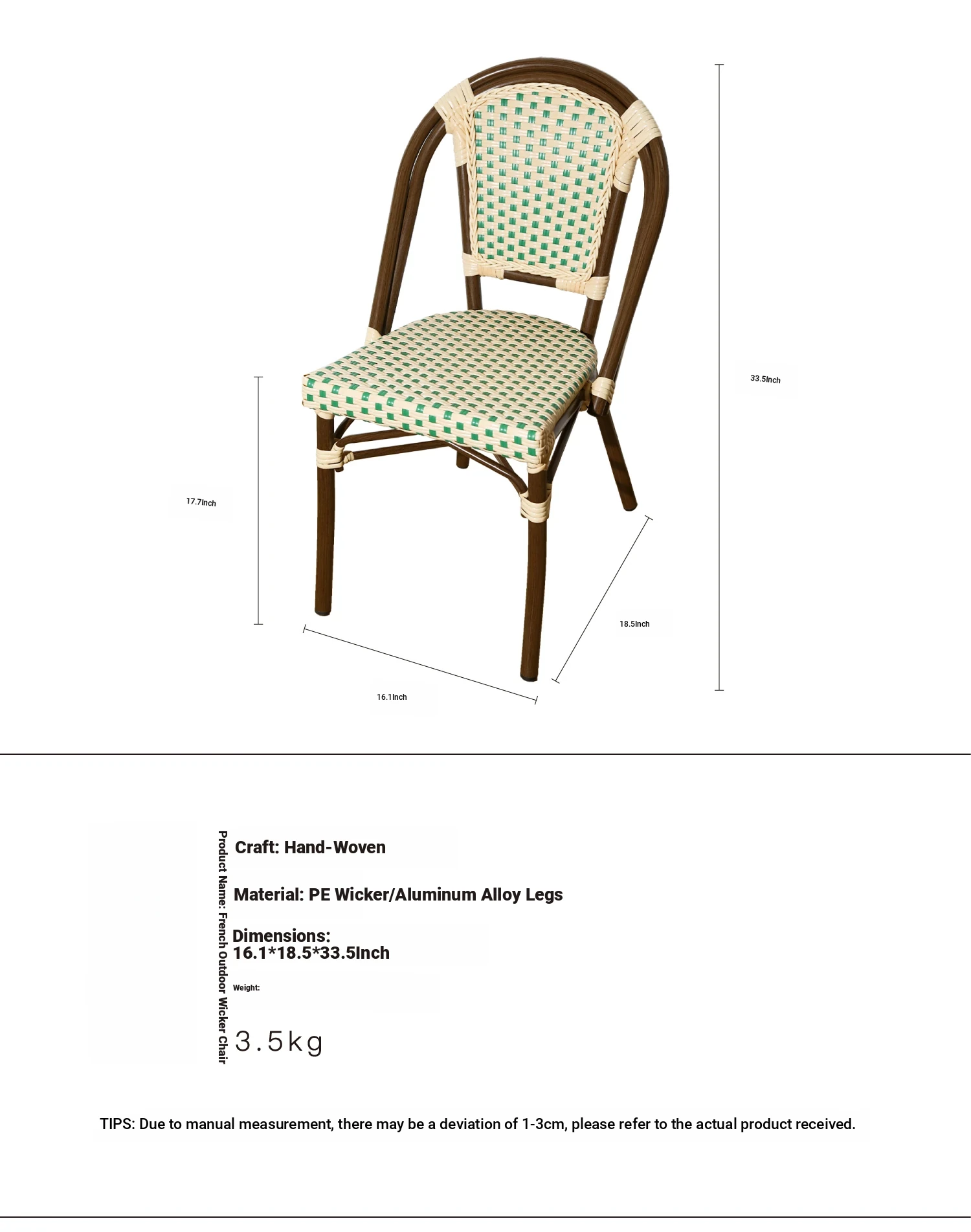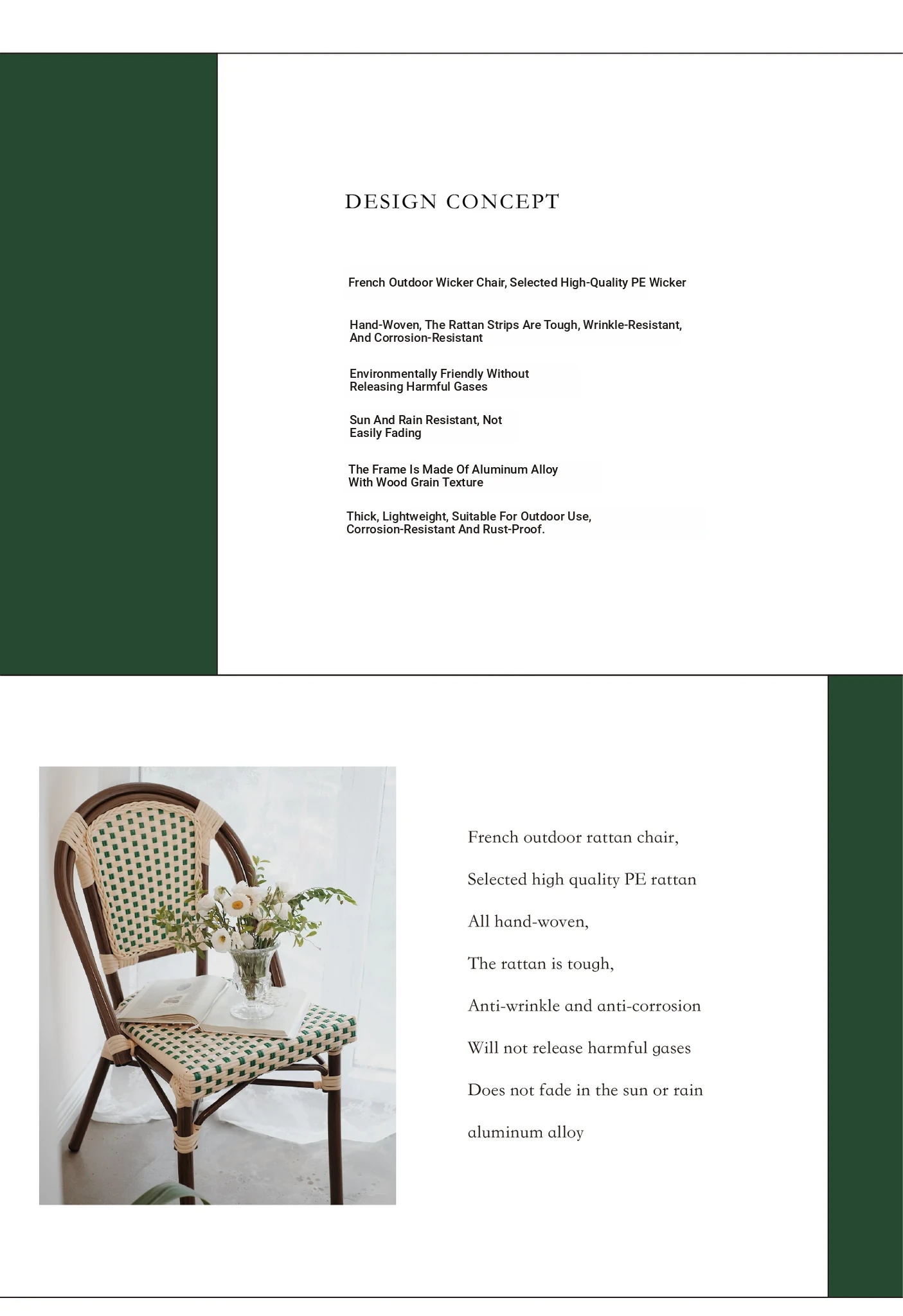 ZHUOSE French Style Ins Outdoor Rattan Chair - Minimalist Balcony Leisure Chair, Perfect for Cafes and Relaxation - Single Seat Design