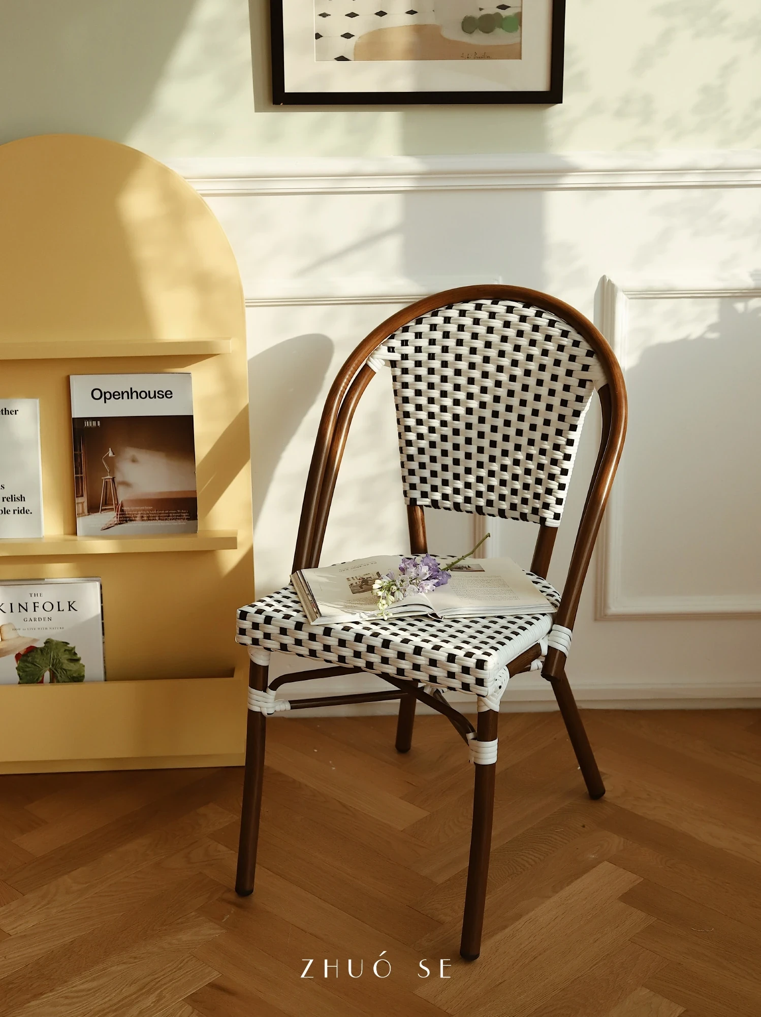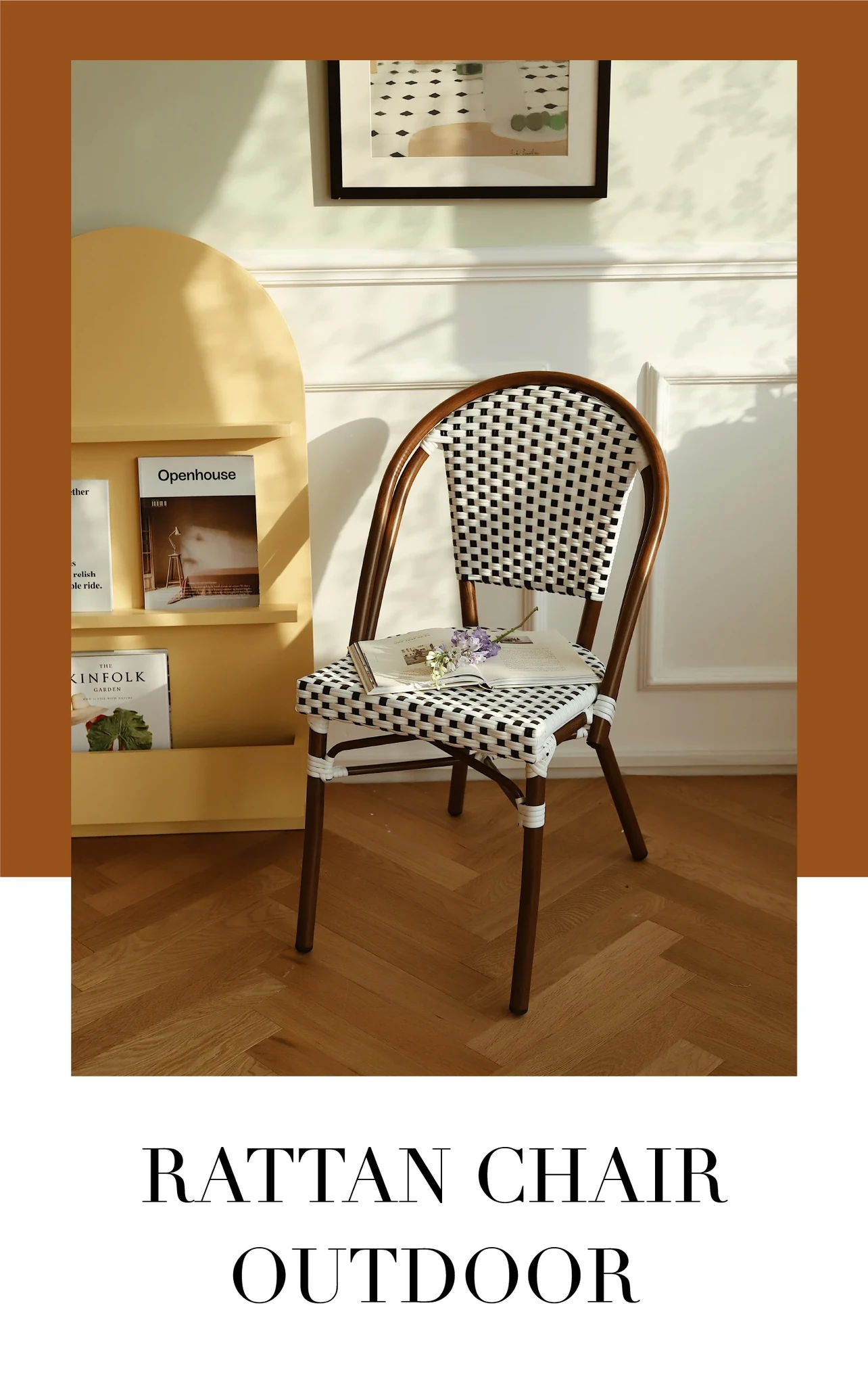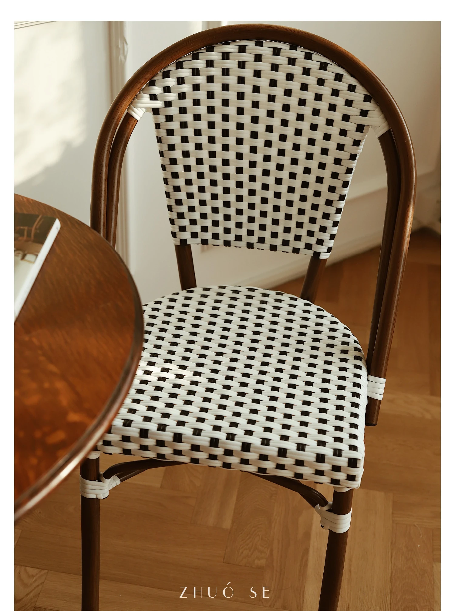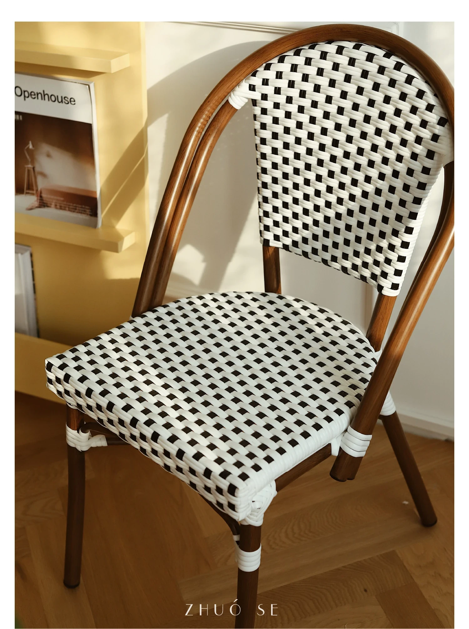 ZHUOSE French Style Outdoor Rattan Lounge Chair - Nordic Minimalist Dining Chair for Home, Balcony, and Café Relaxation. Perfect for Stylish Outdoor Spaces!