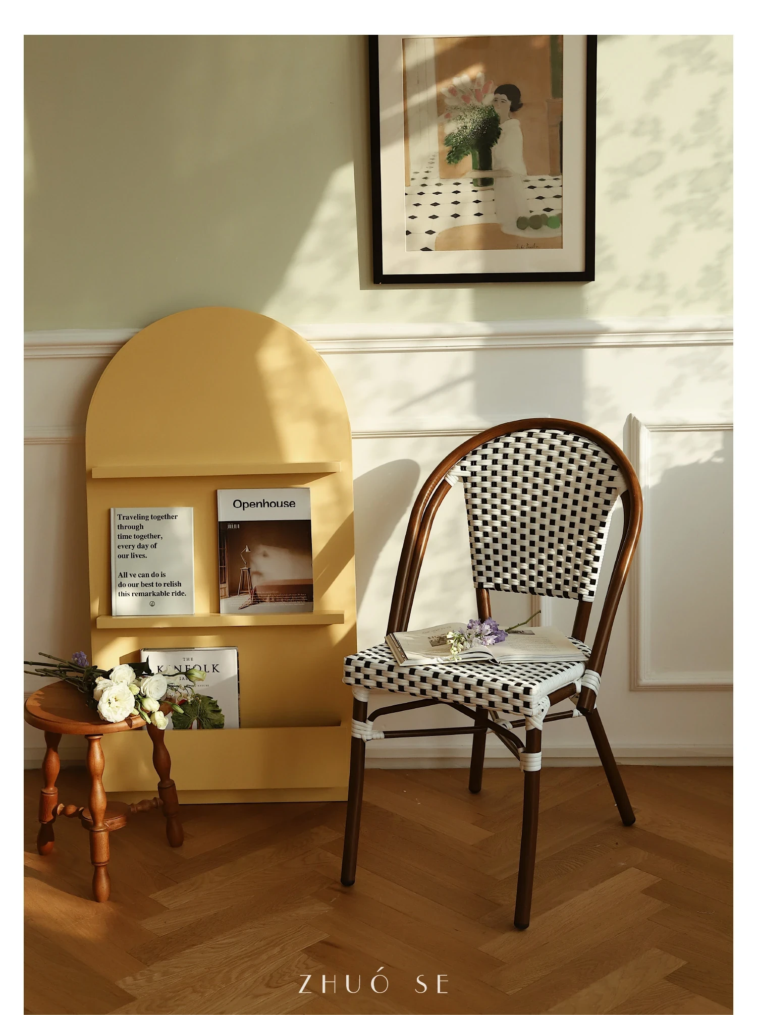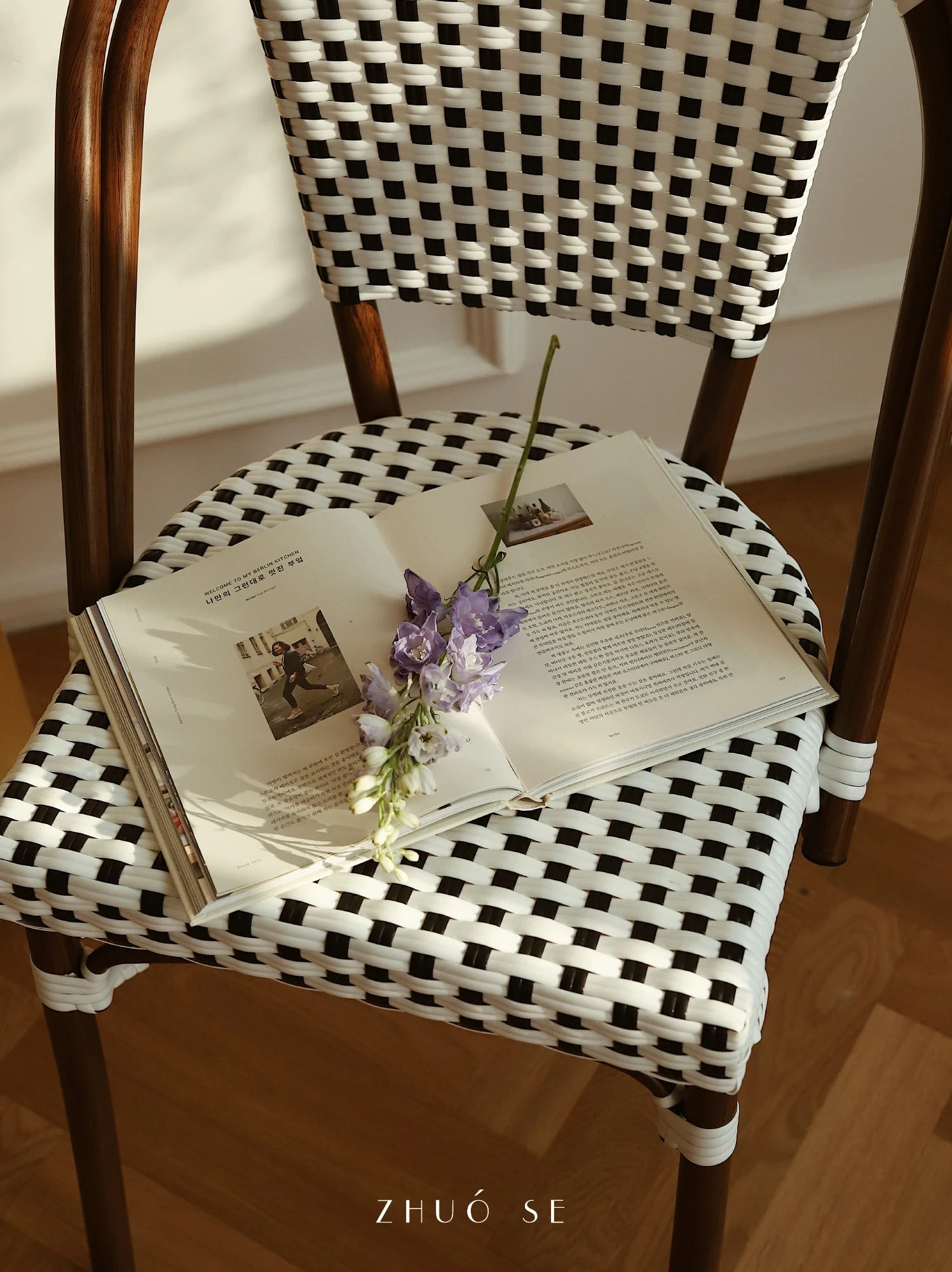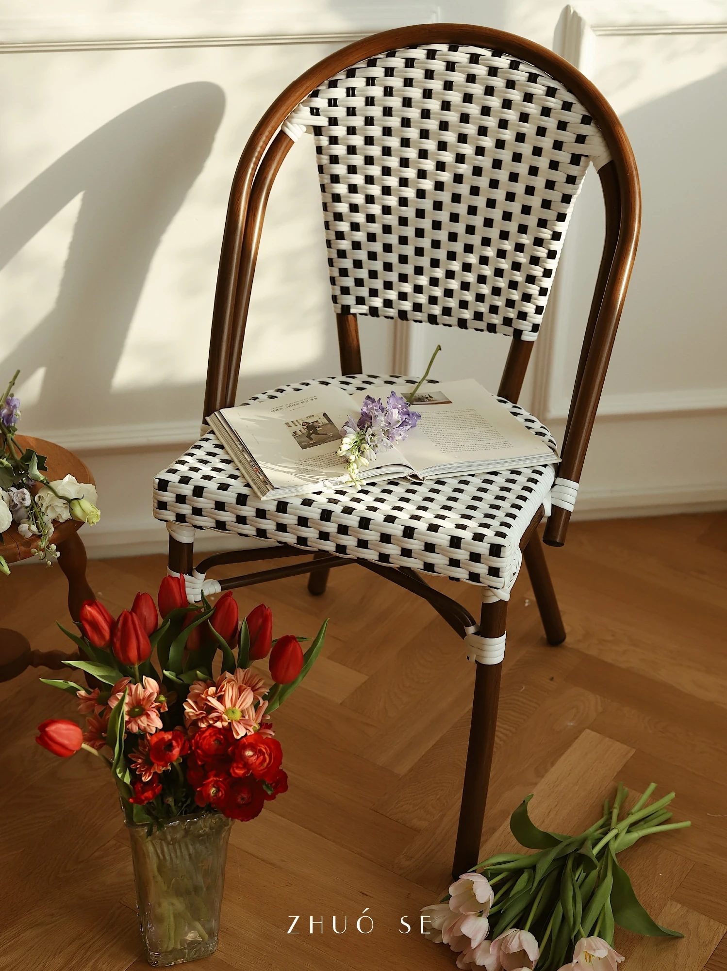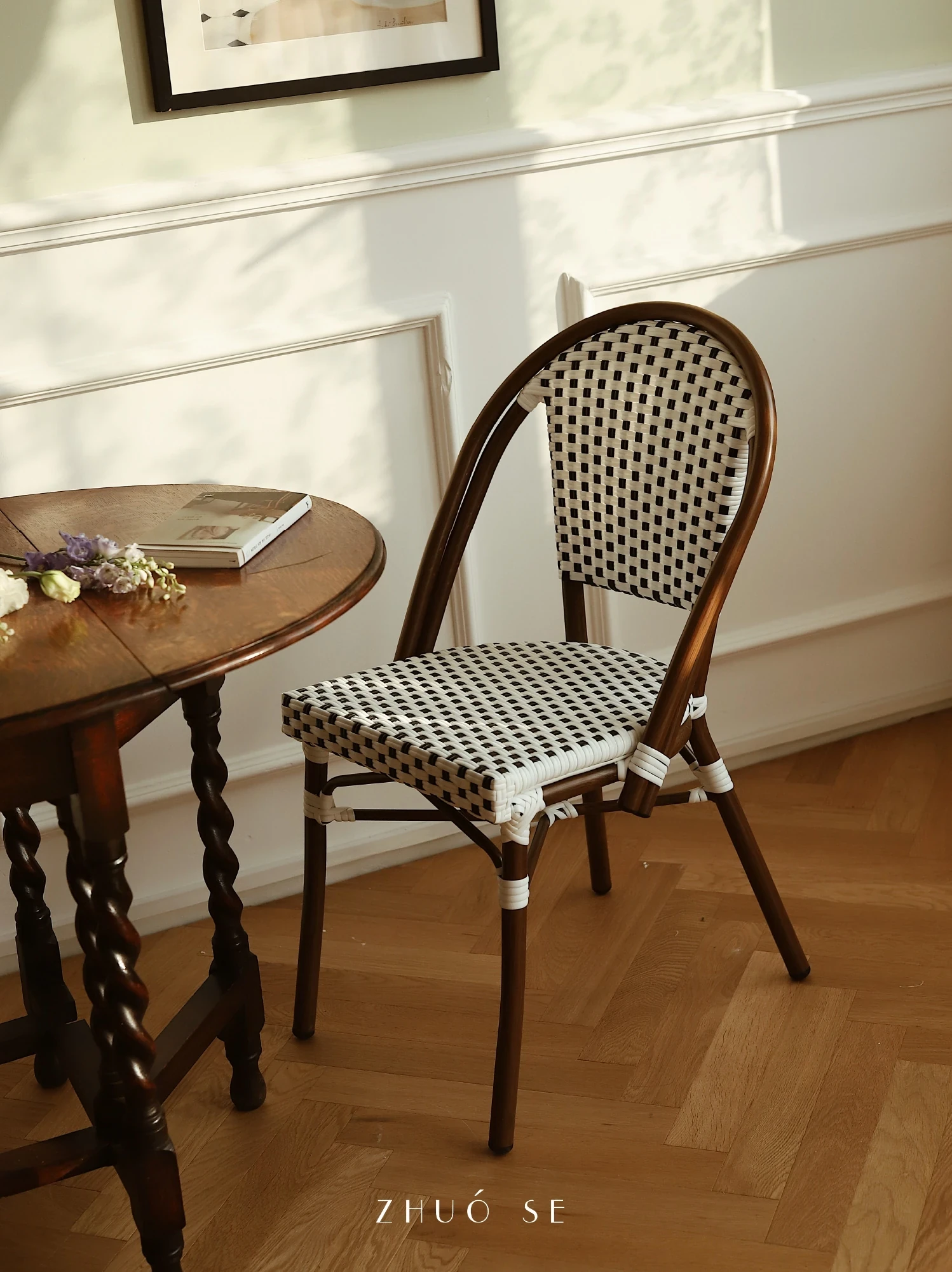 ZHUOSE French Style Outdoor Rattan Lounge Chair - Nordic Minimalist Dining Chair for Home, Balcony, and Café Relaxation. Perfect for Stylish Outdoor Spaces!