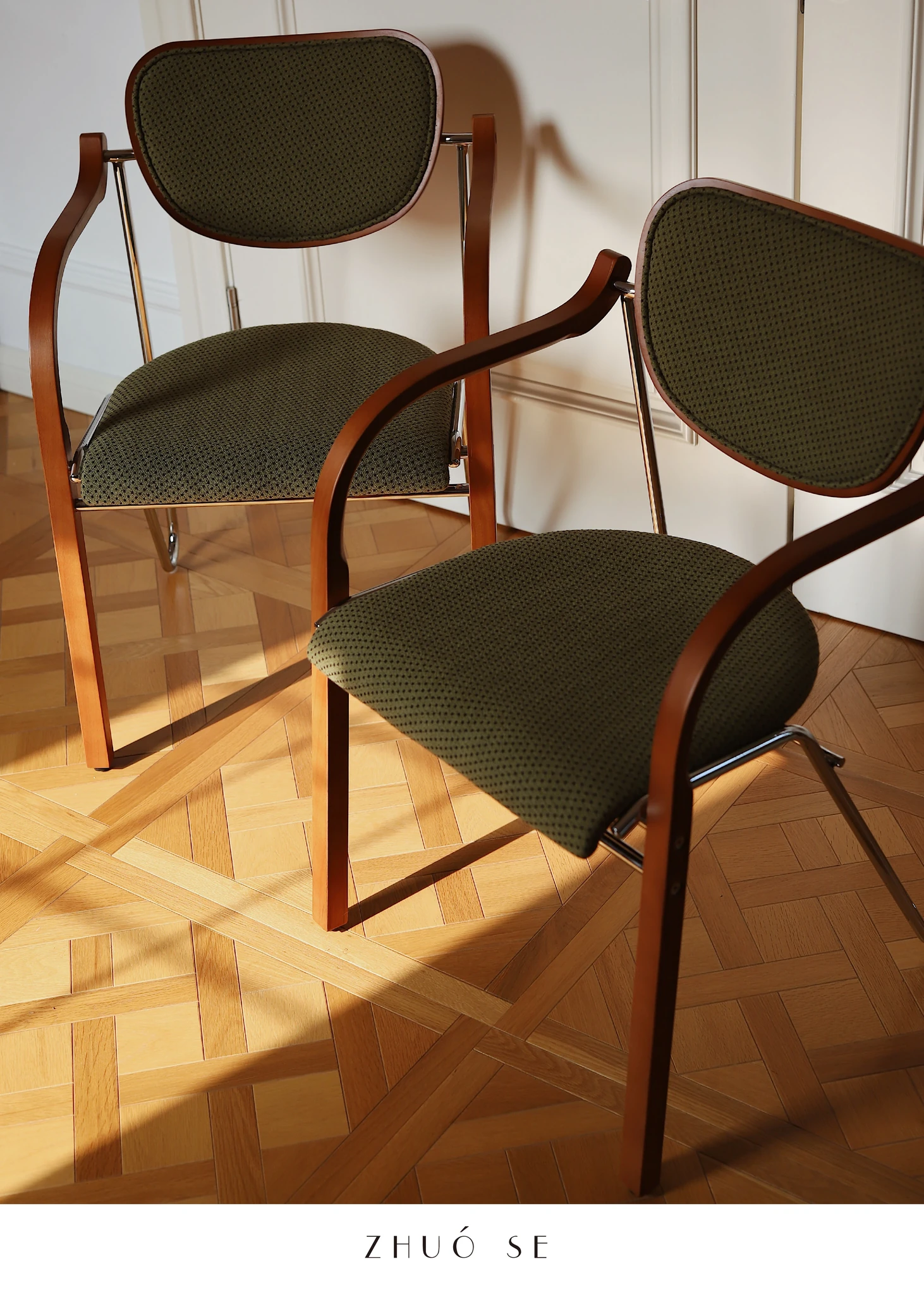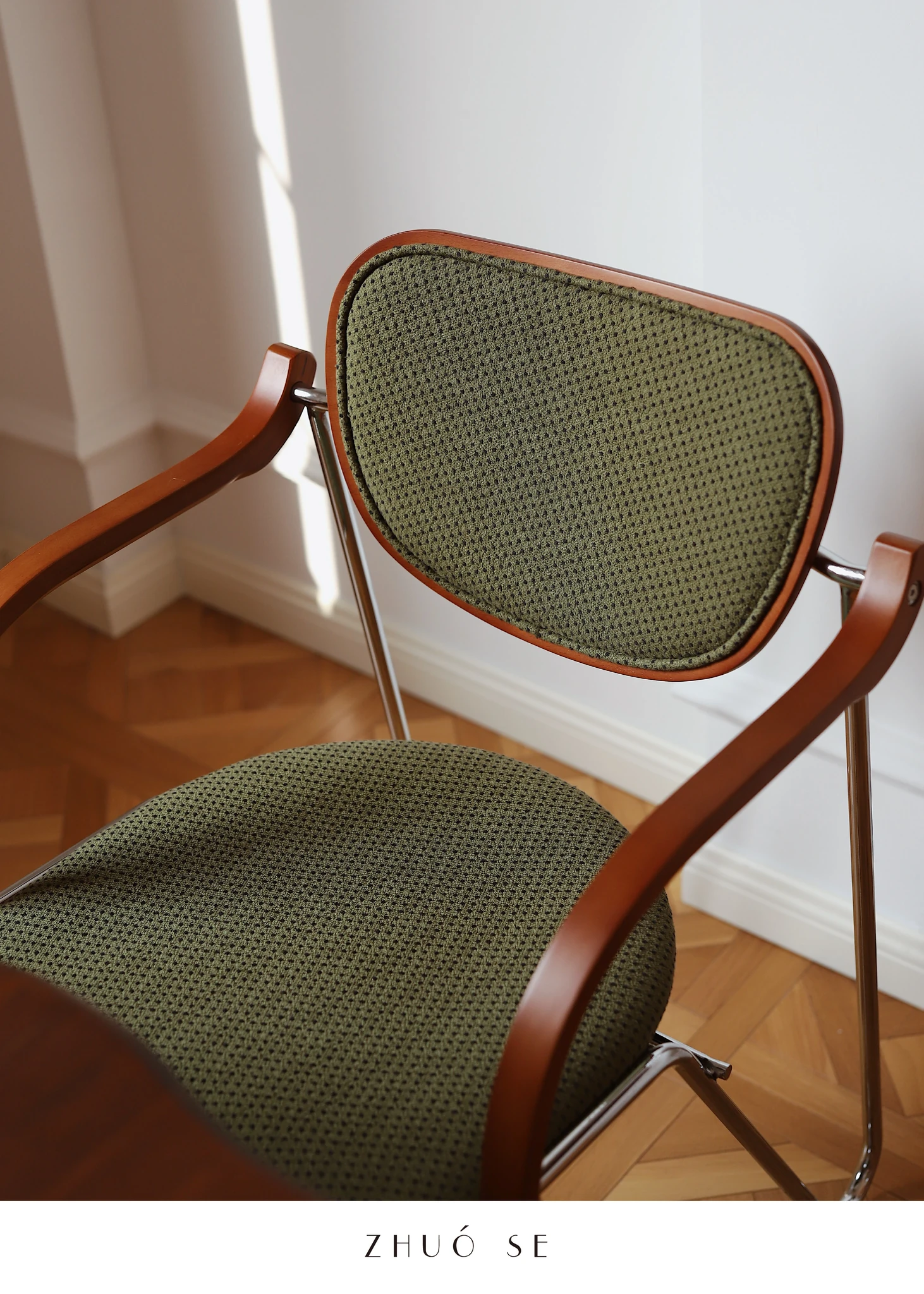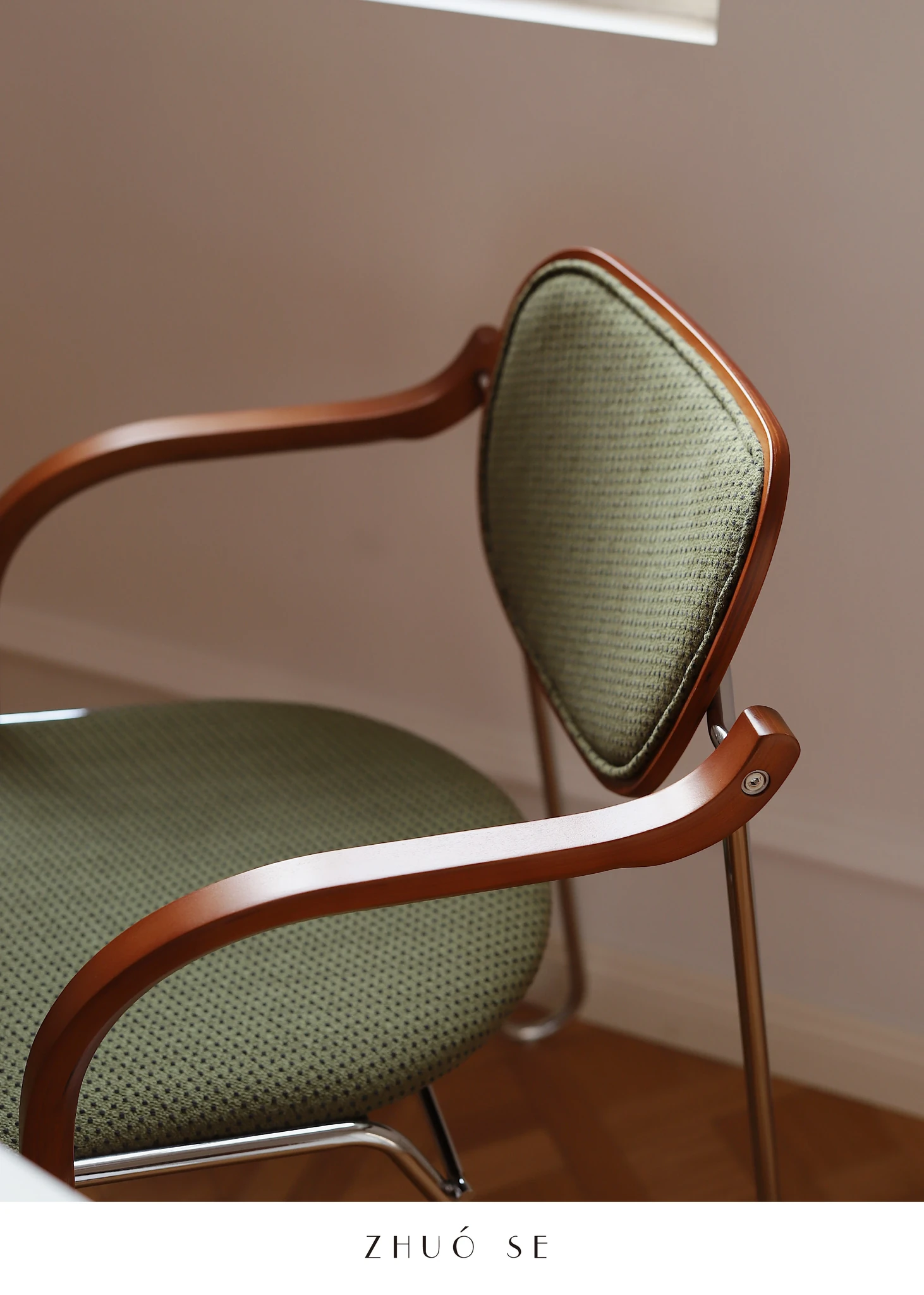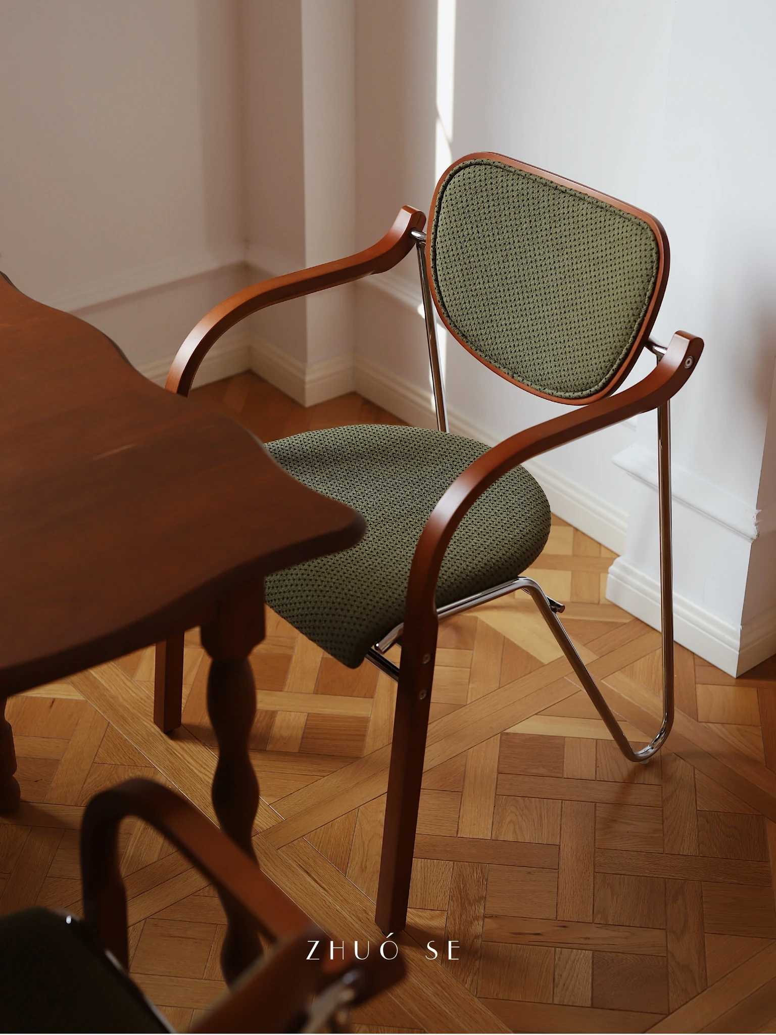 ZHUOSE "Green Time" French Vintage Solid Wood Armchair with Stainless Steel Soft Cushion - Stylish Backrest Chair for Living Room