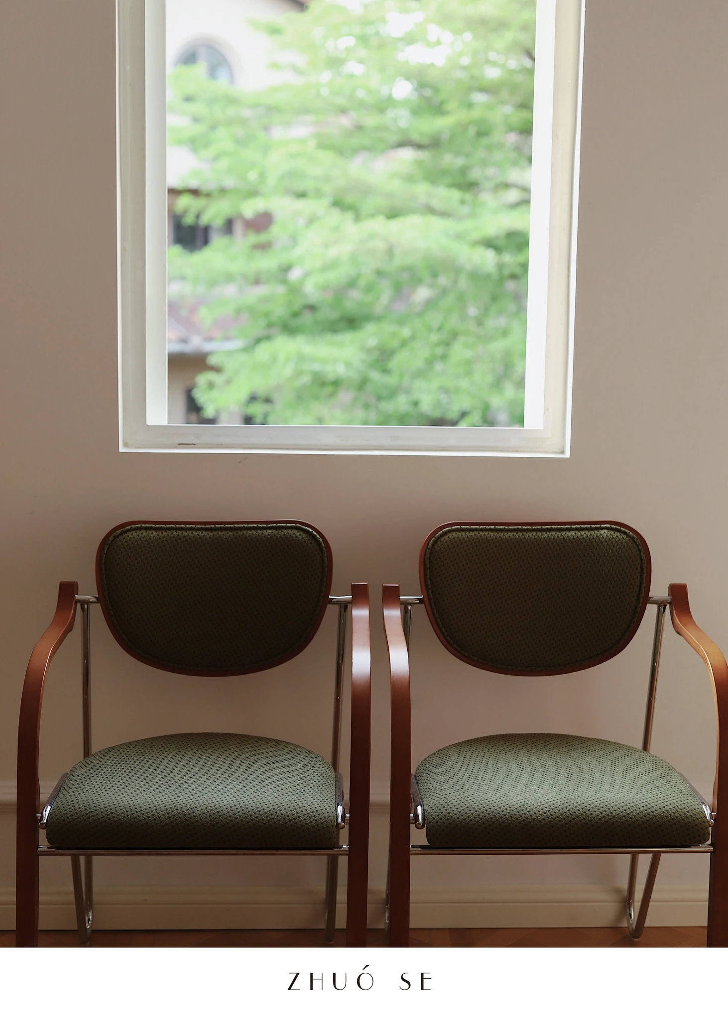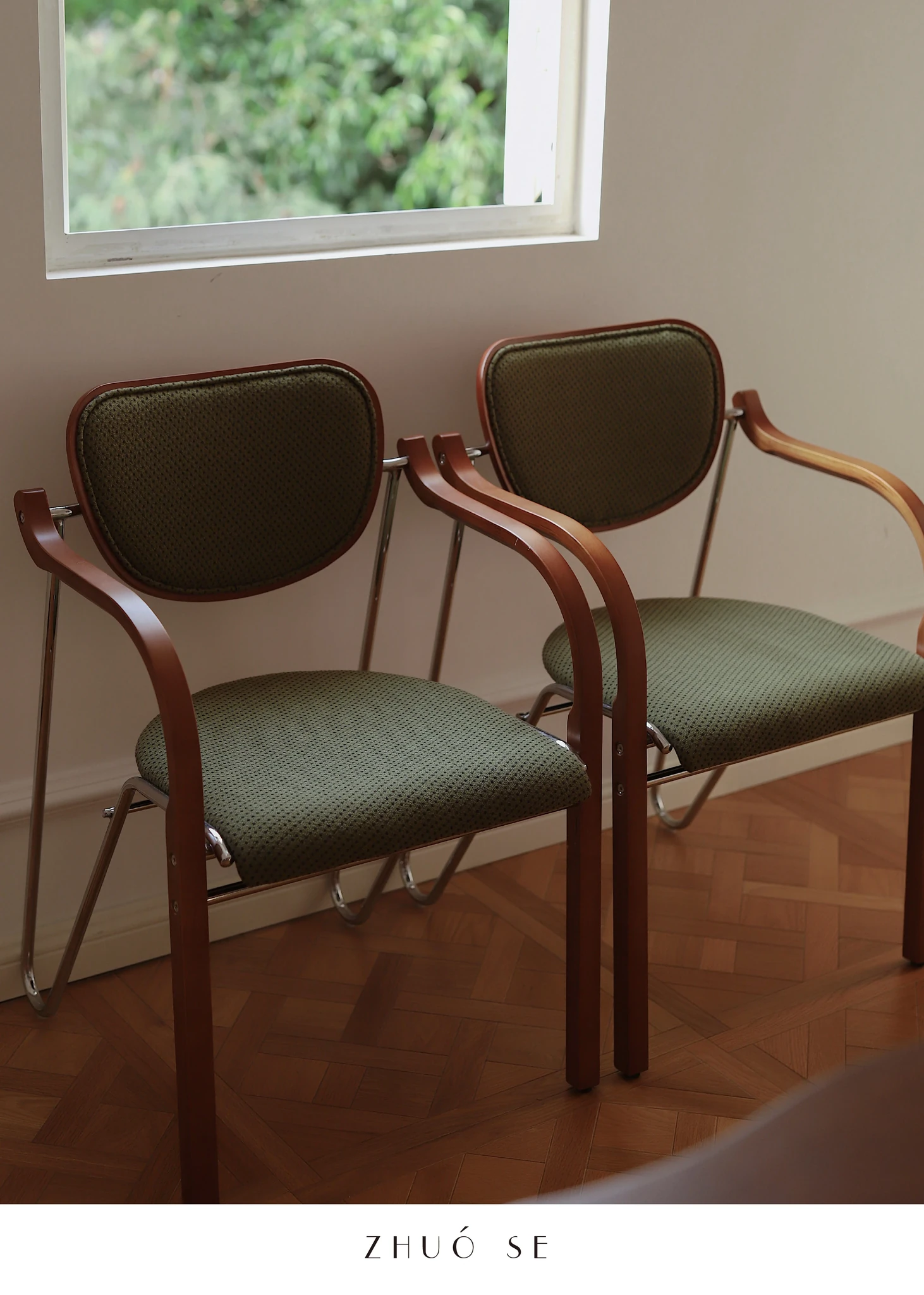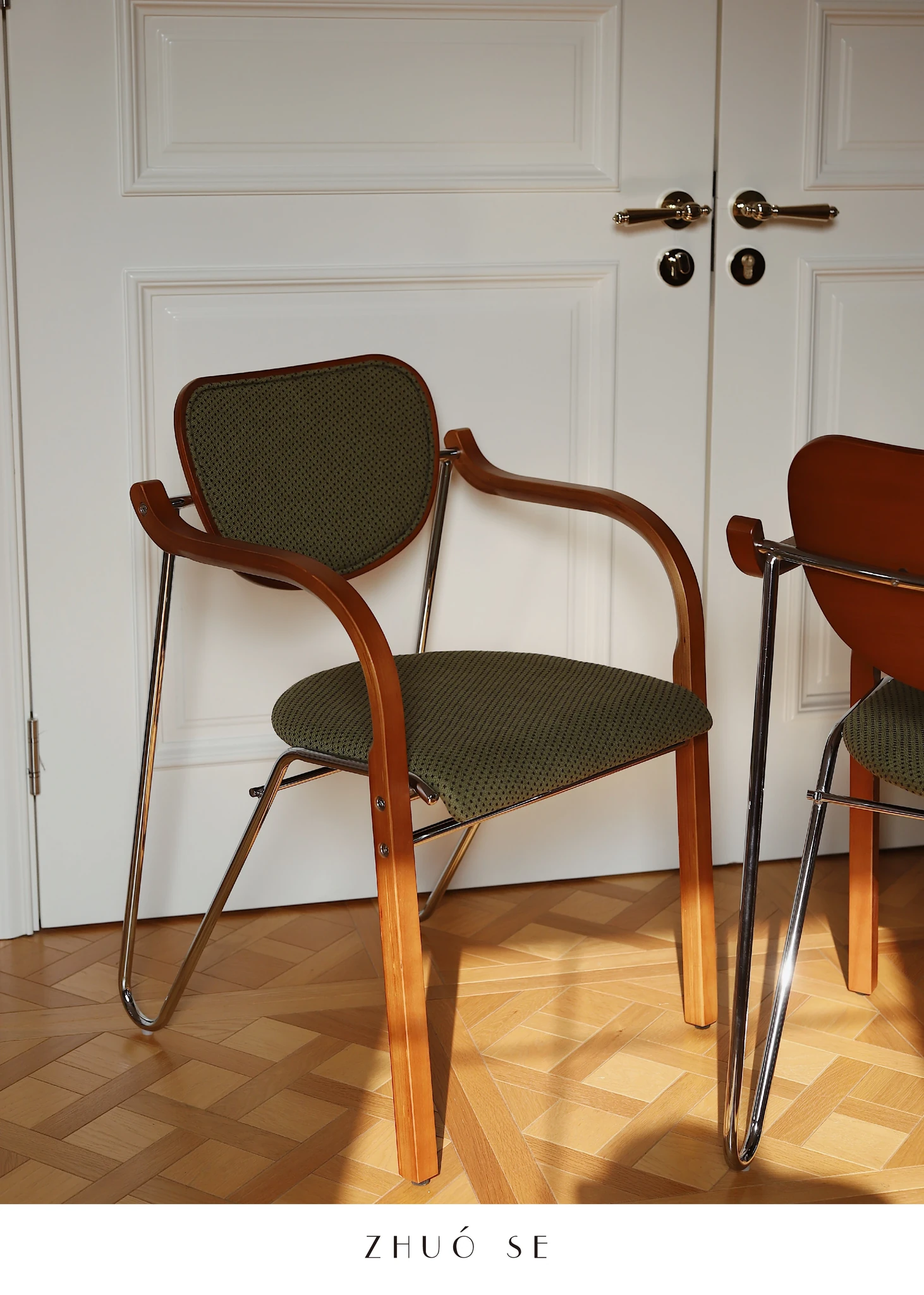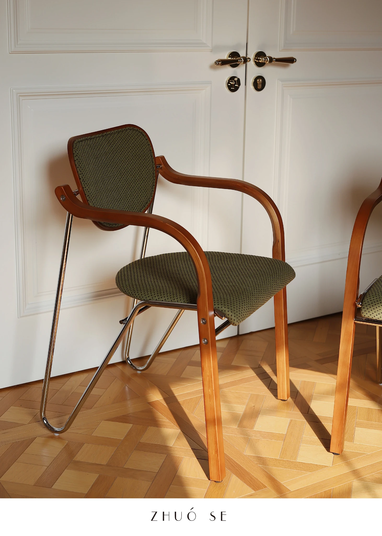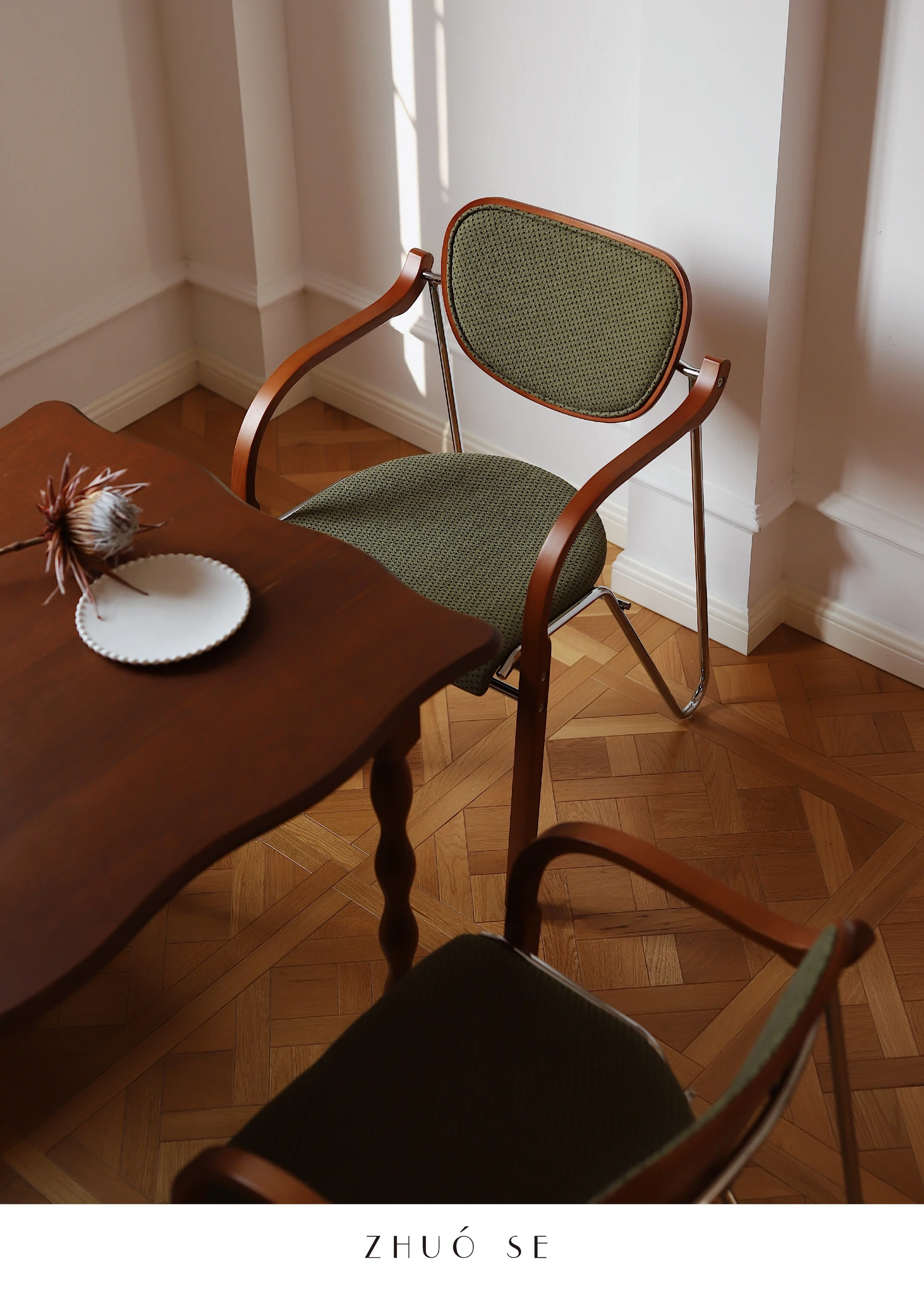 ZHUOSE "Green Time" French Vintage Solid Wood Armchair with Stainless Steel Soft Cushion - Stylish Backrest Chair for Living Room