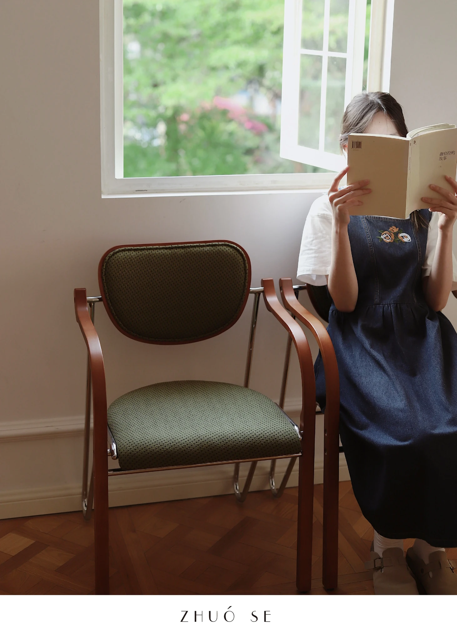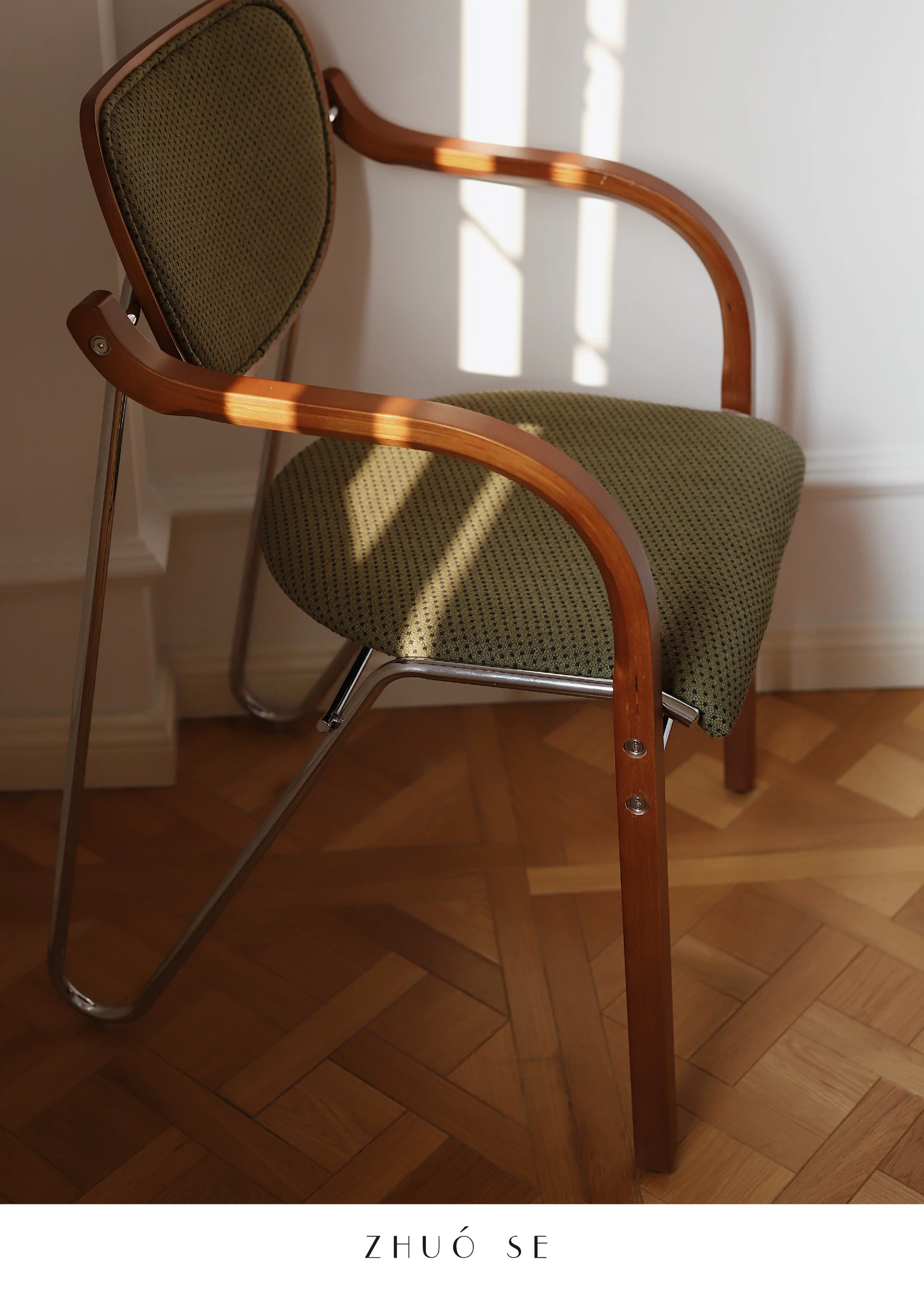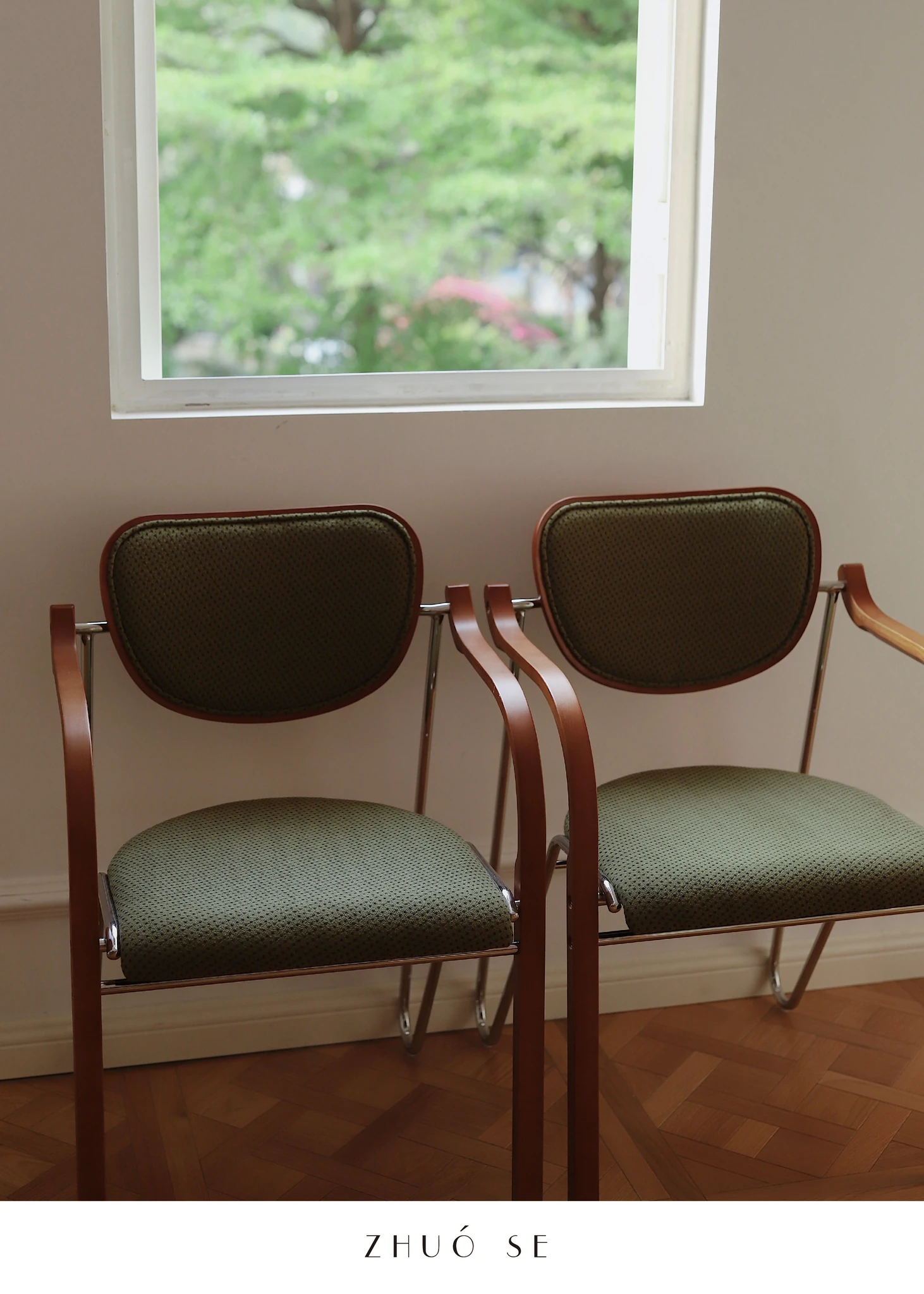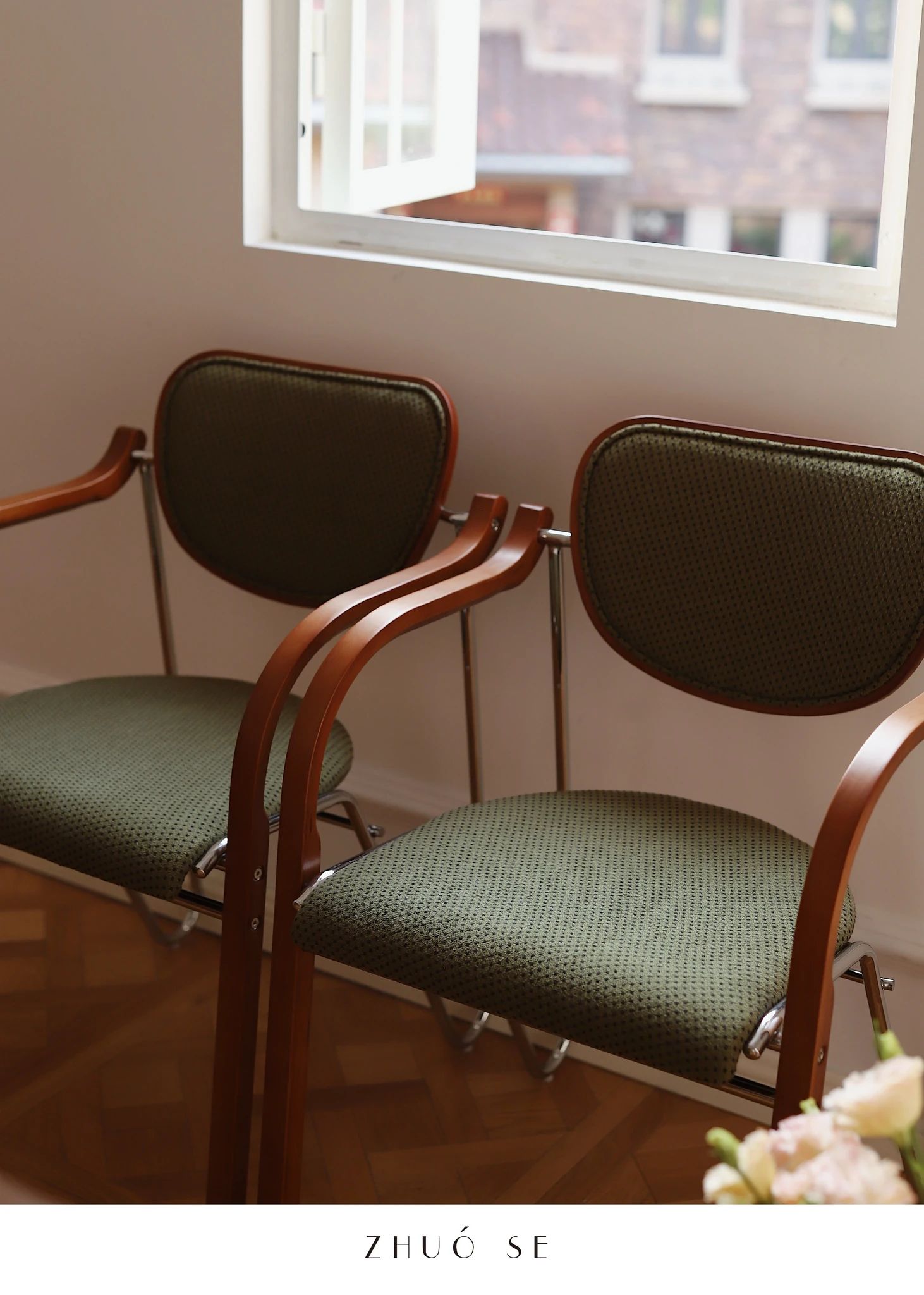 ZHUOSE "Green Time" French Vintage Solid Wood Armchair with Stainless Steel Soft Cushion - Stylish Backrest Chair for Living Room