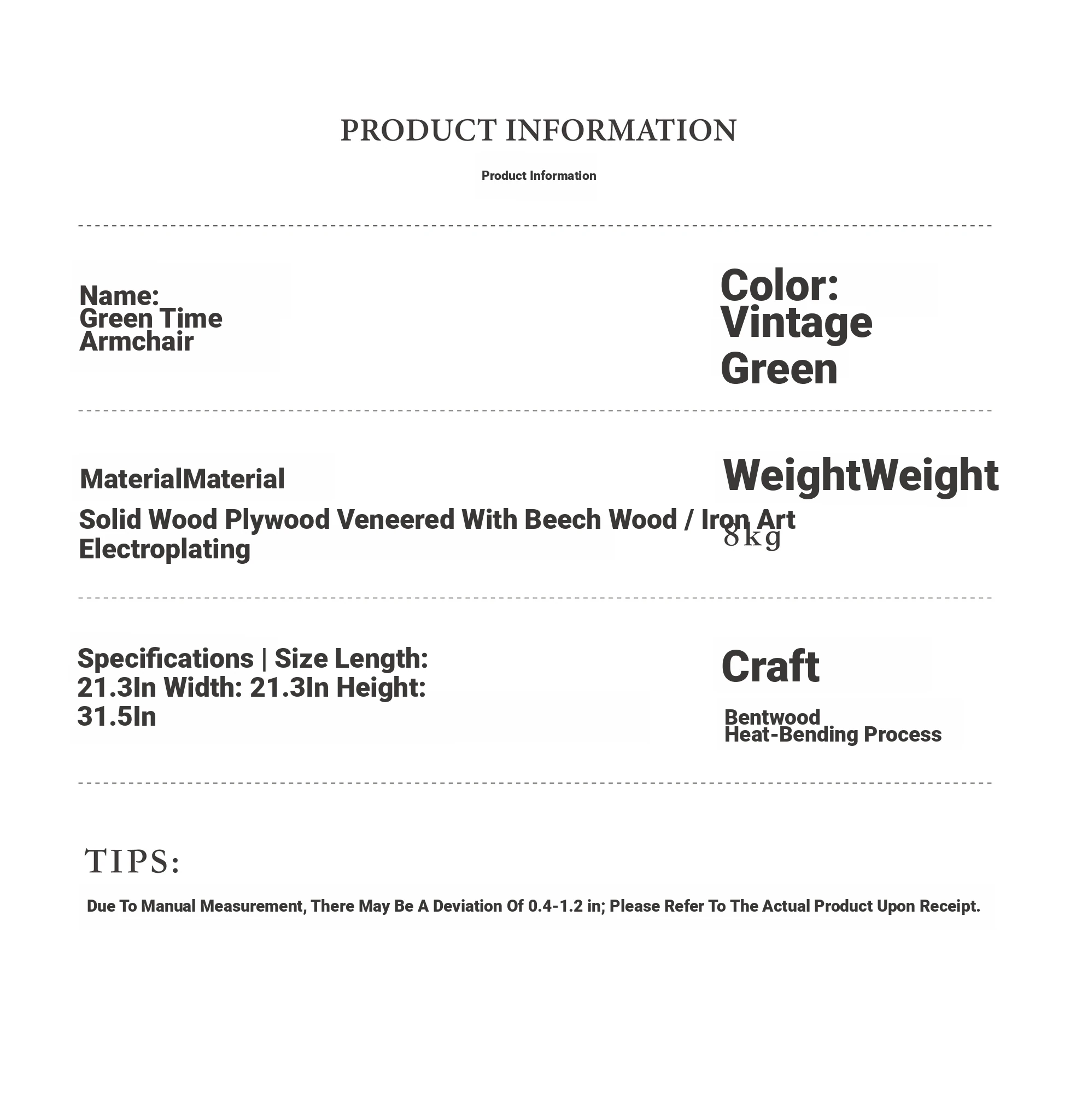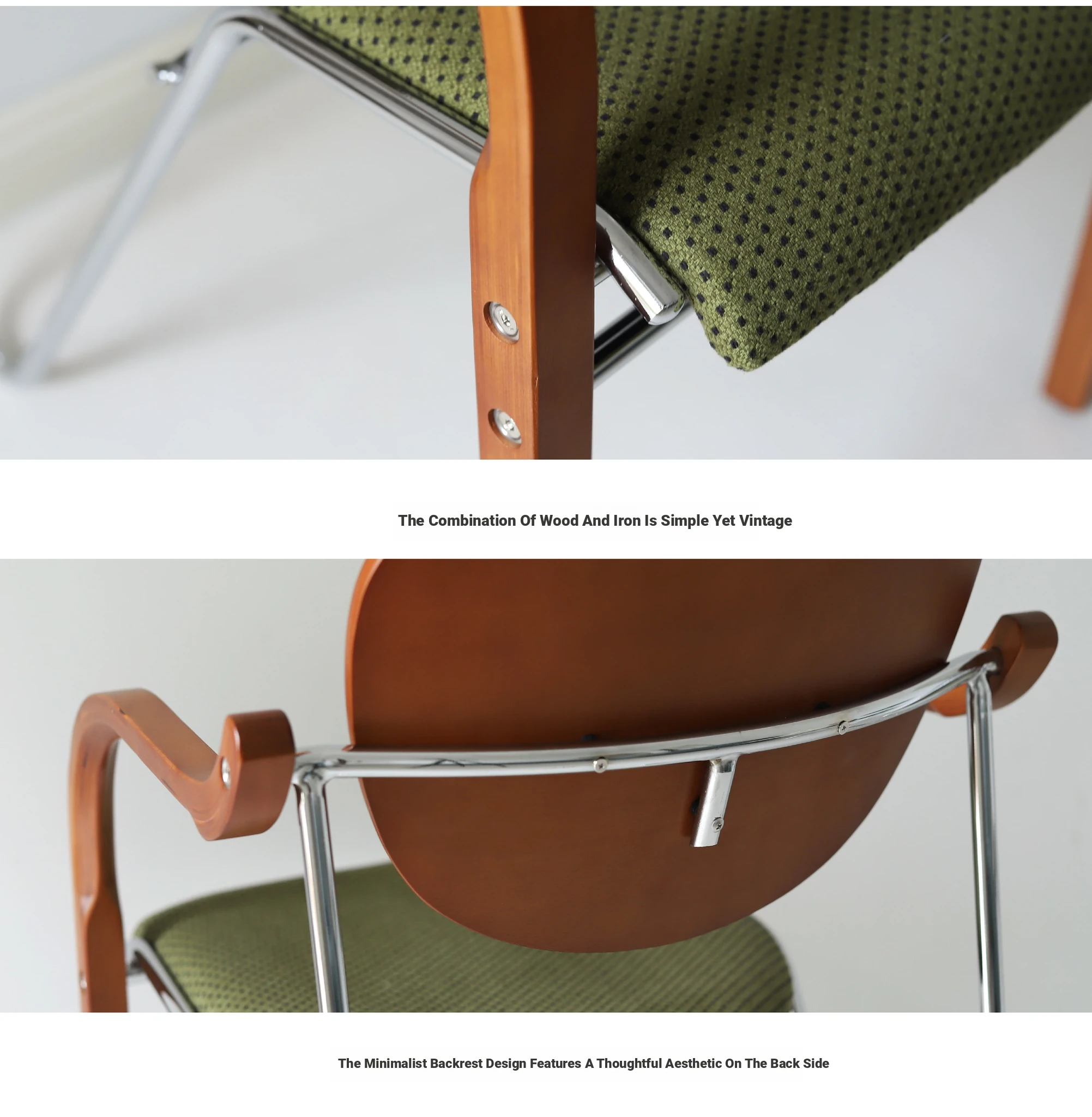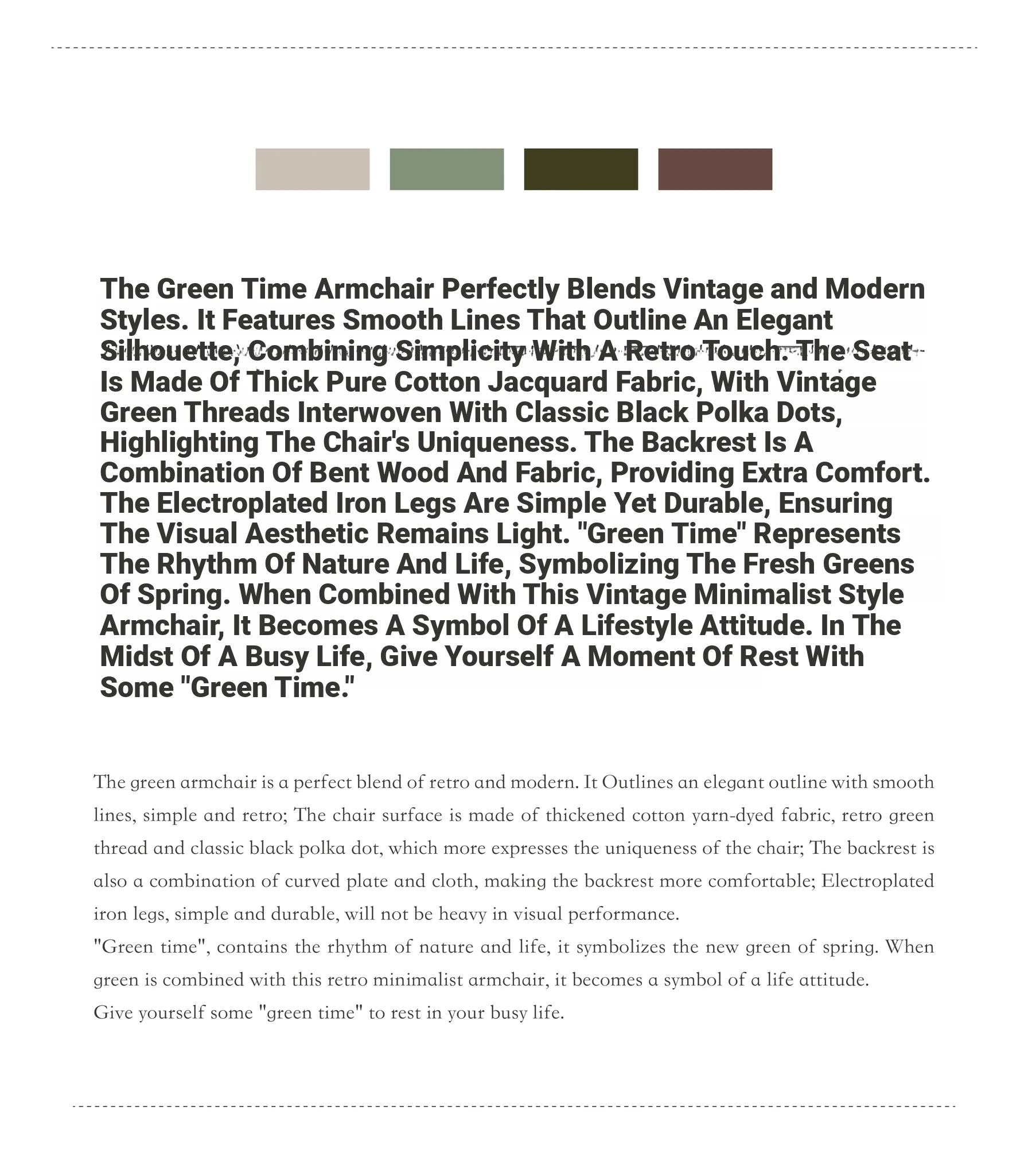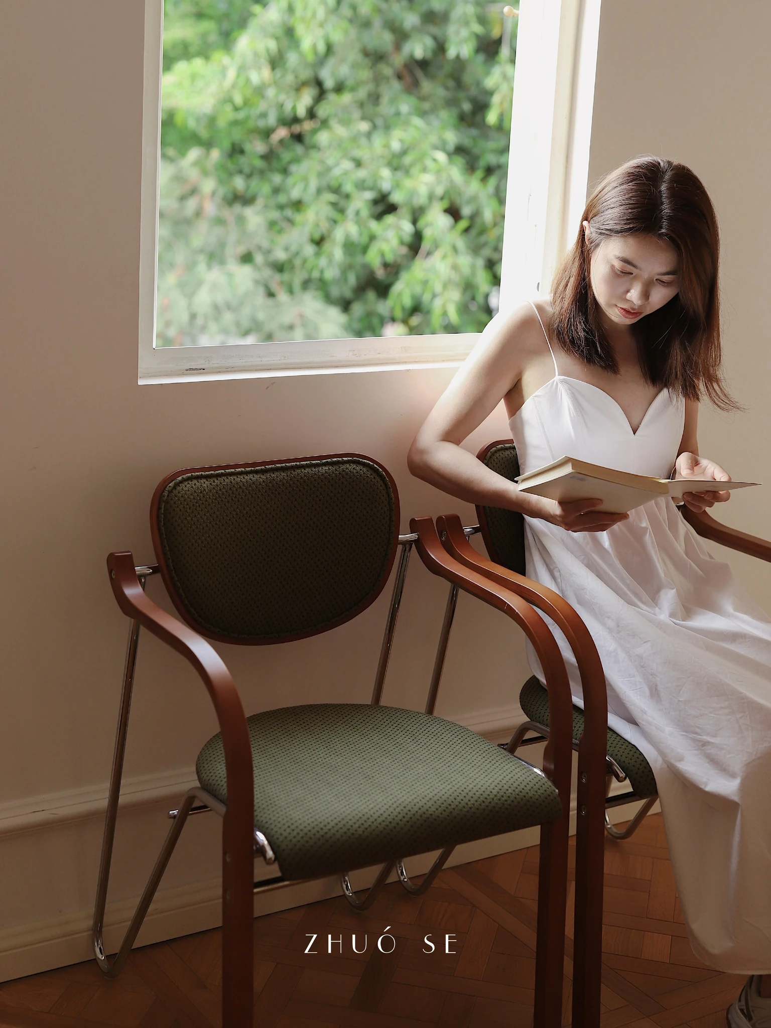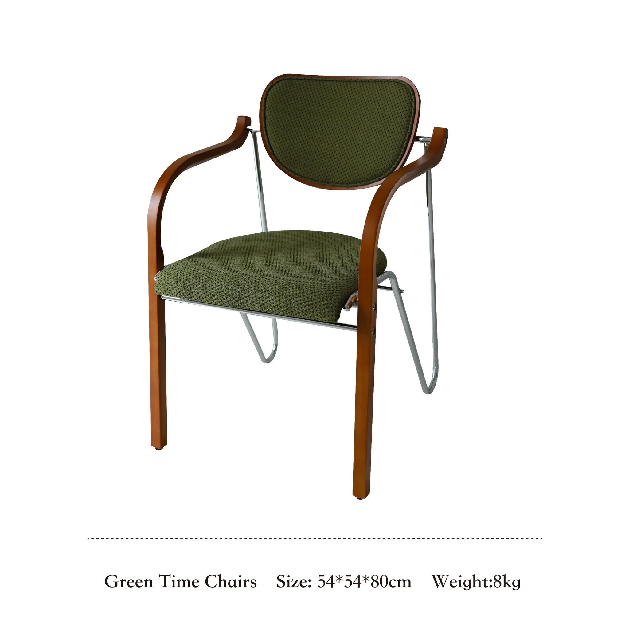 ZHUOSE "Green Time" French Vintage Solid Wood Armchair with Stainless Steel Soft Cushion - Stylish Backrest Chair for Living Room