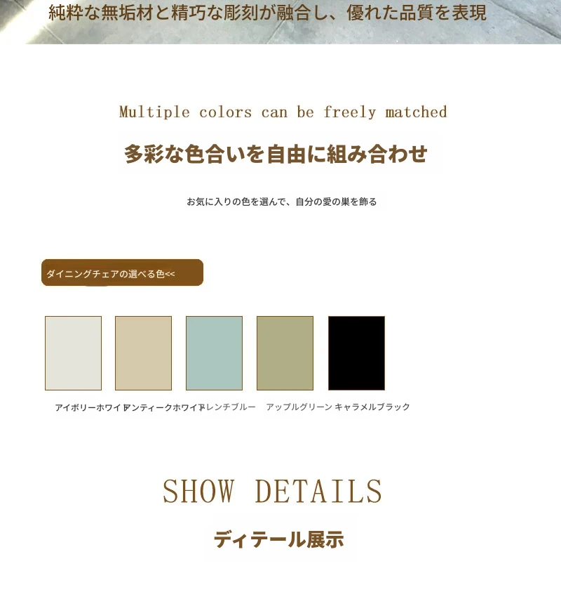 おしゃれな欧風デザインの背もたれ付き椅子、家用中式オーク材の彫刻入りダイニングチェア。現代的でシンプルな白い無垢材の食卓椅子。心地よい食事空間を演出します!