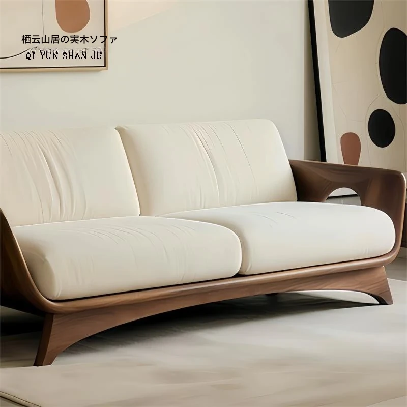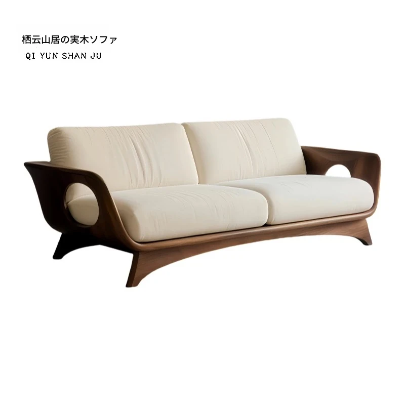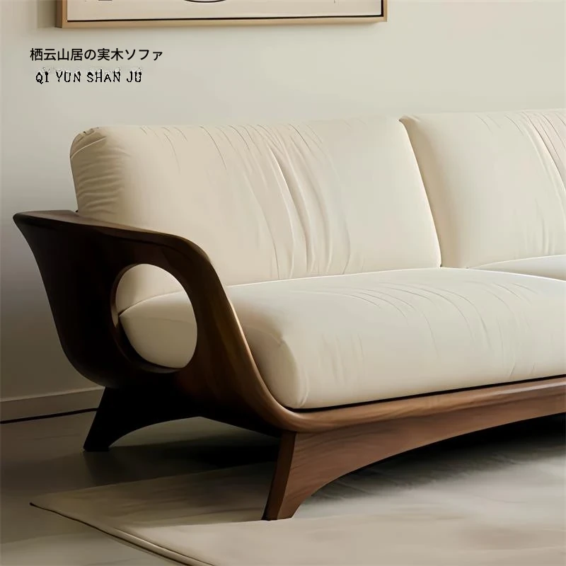 2025年新作!新中式デザインのブラックウォールナットソファ - 高級感溢れる布製ソファで、あなたのリビングをスタイリッシュに演出!別荘にもぴったりな上品な家具です。