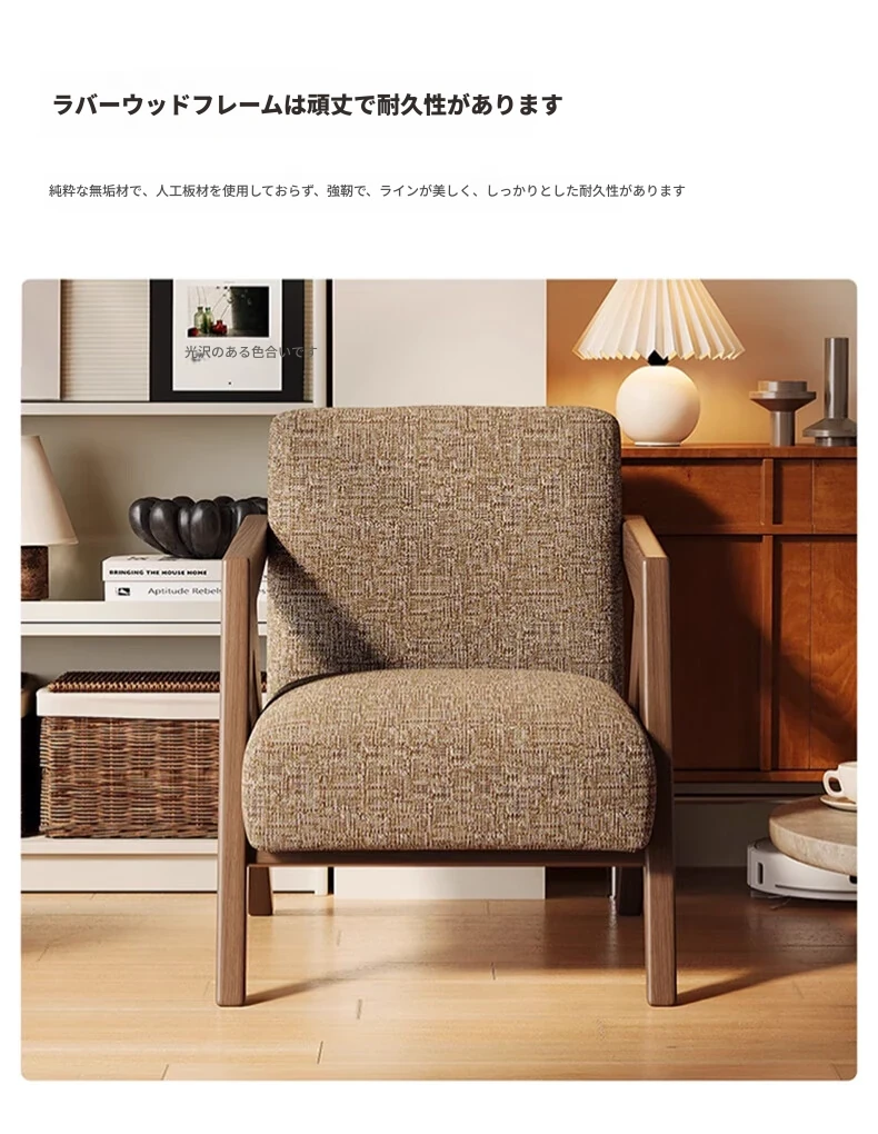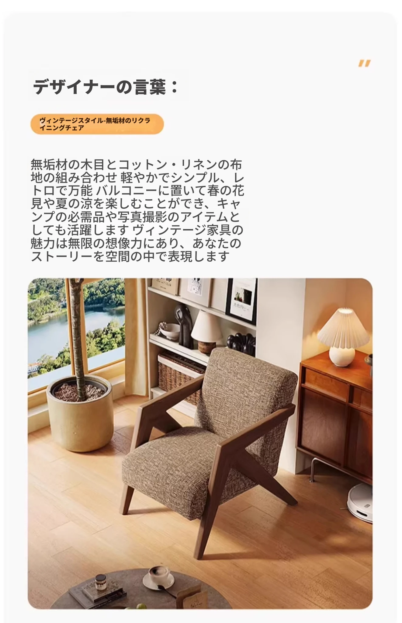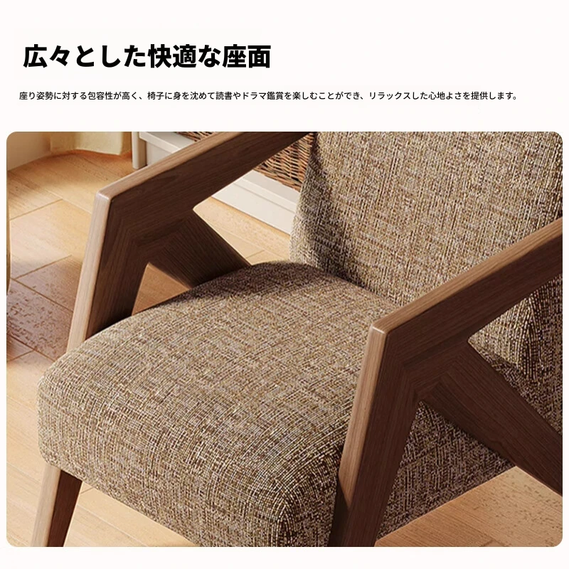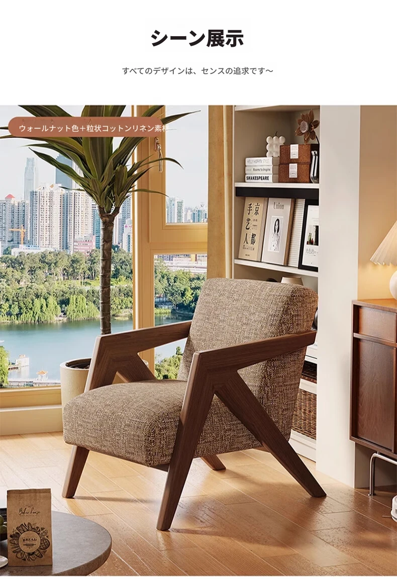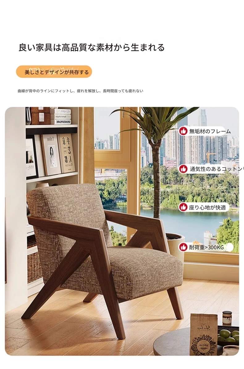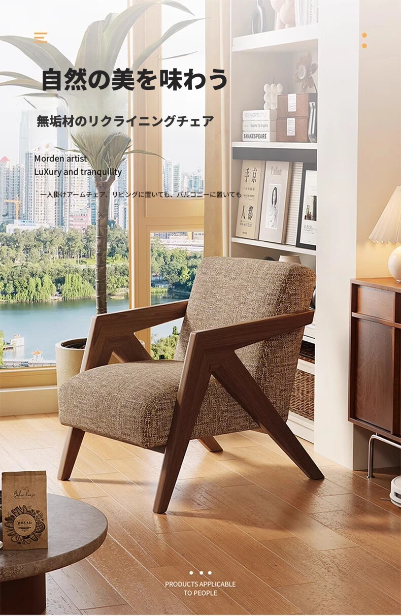 新作2025年モデル 北欧スタイルの一人掛けソファチェア - リラックスできる原木製、寝室やリビングにぴったり!バルコニーにも最適な和風デザインのラウンジチェアで、心地よい時間をお楽しみください。
