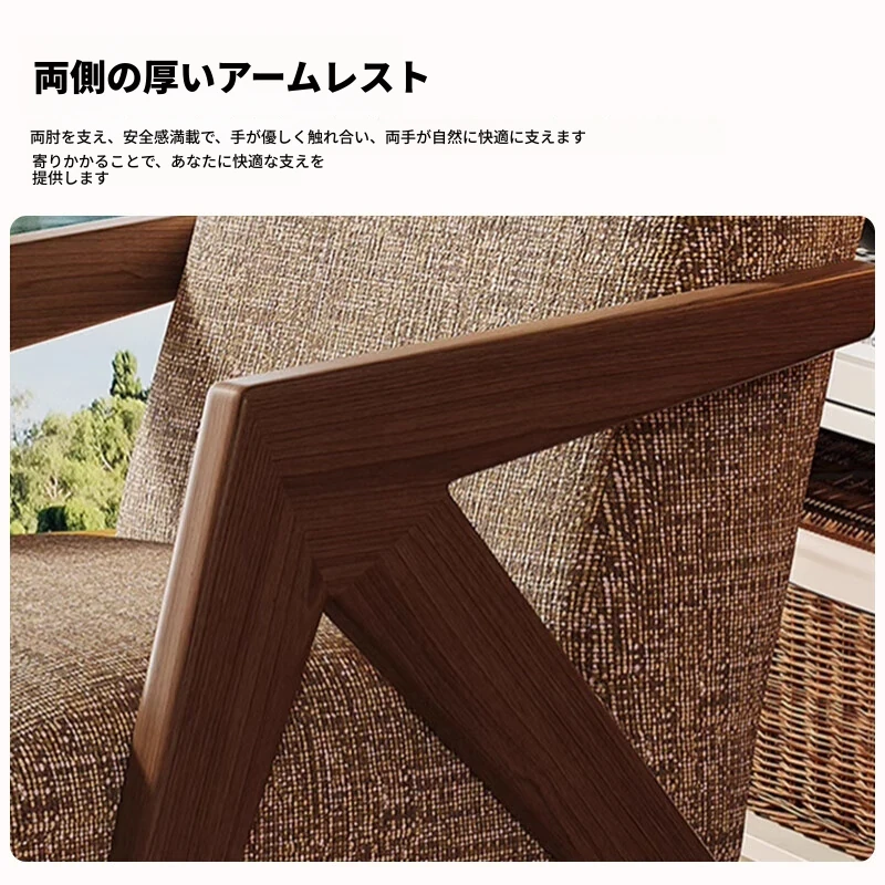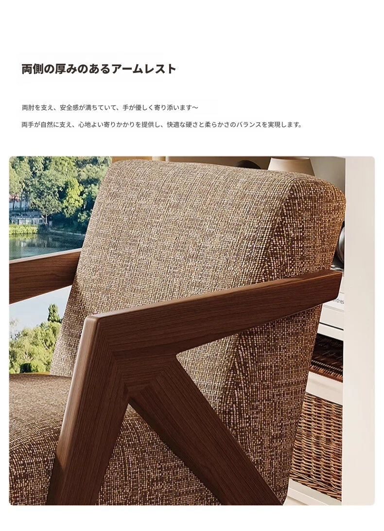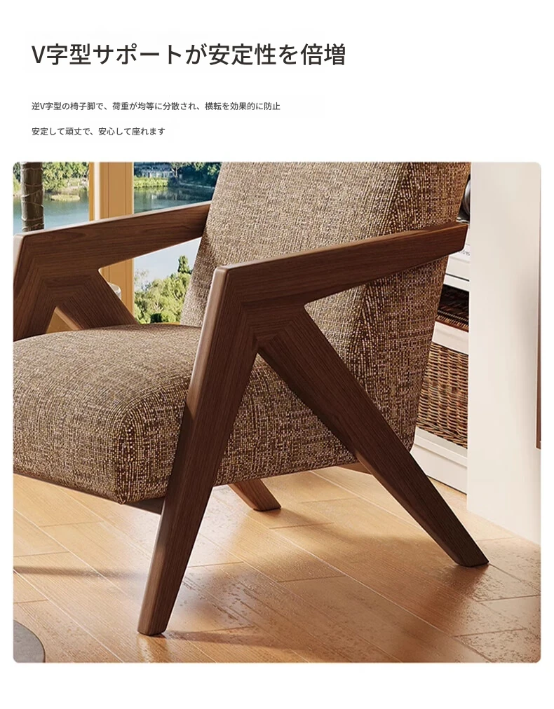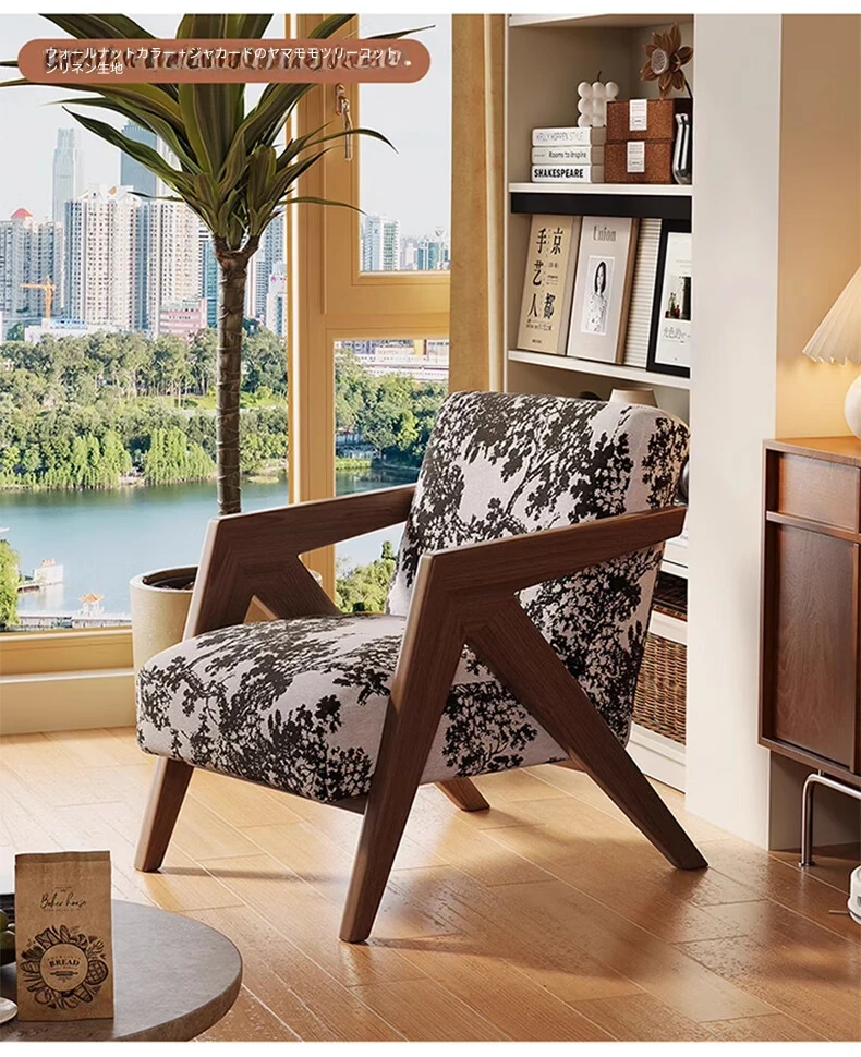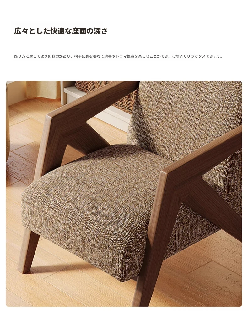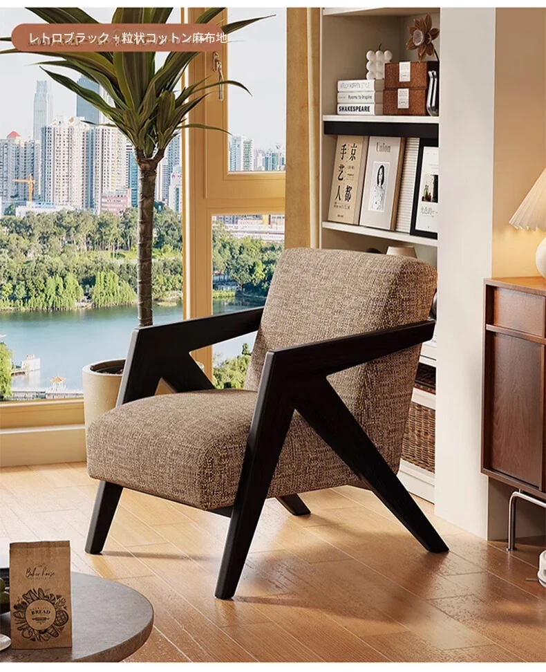 新作2025年モデル 北欧スタイルの一人掛けソファチェア - リラックスできる原木製、寝室やリビングにぴったり!バルコニーにも最適な和風デザインのラウンジチェアで、心地よい時間をお楽しみください。