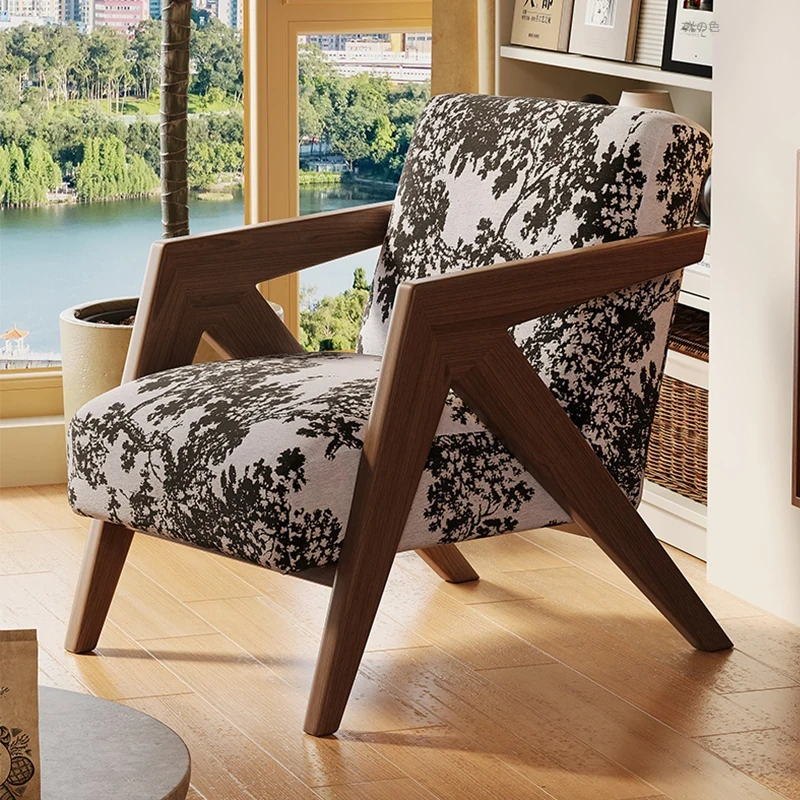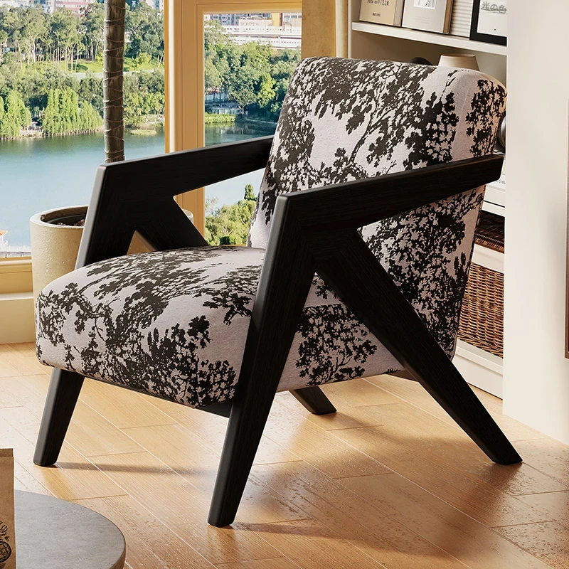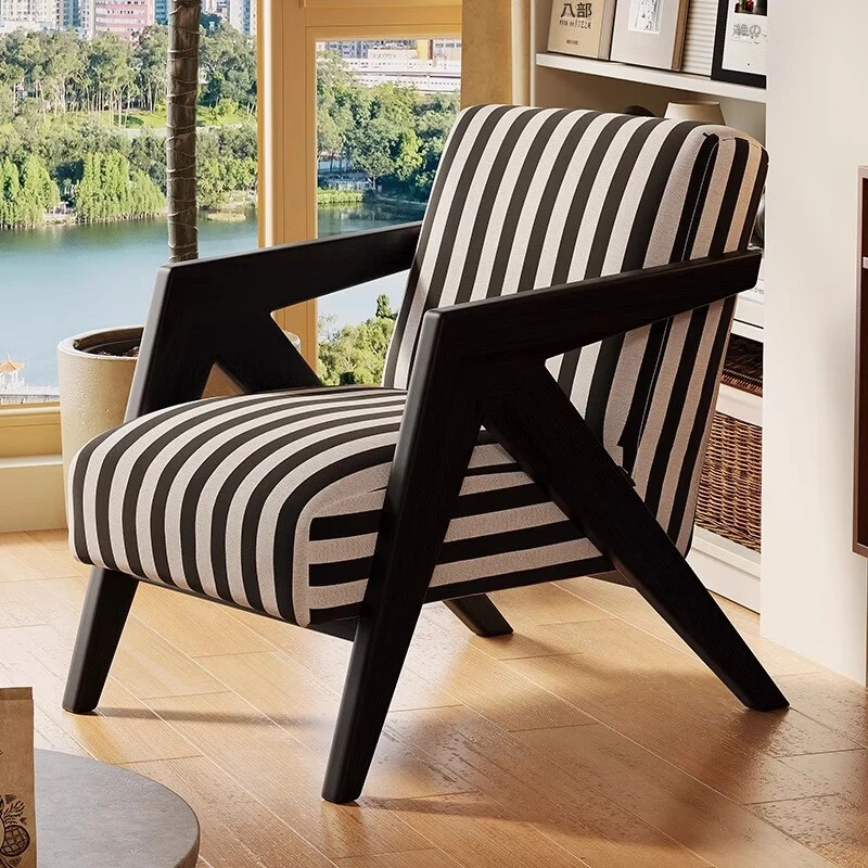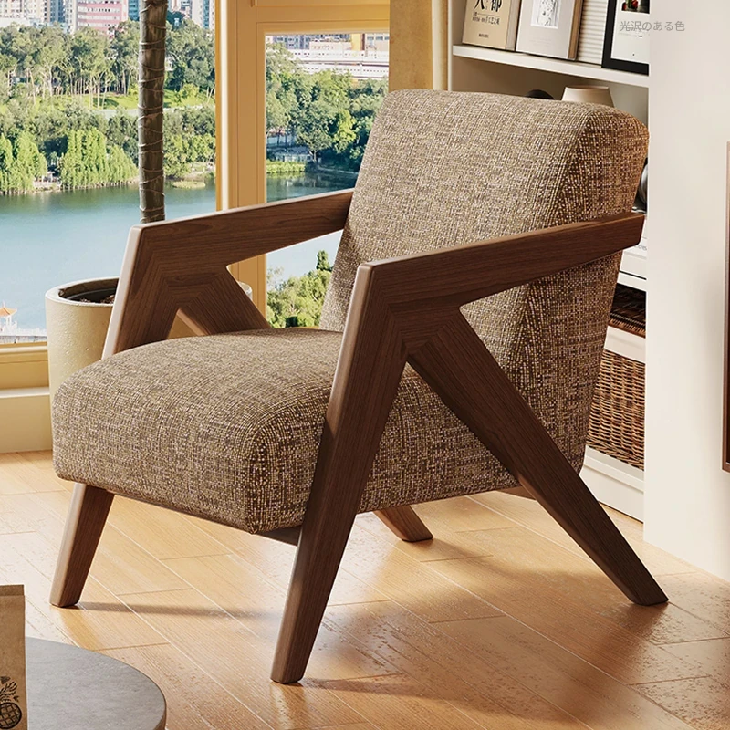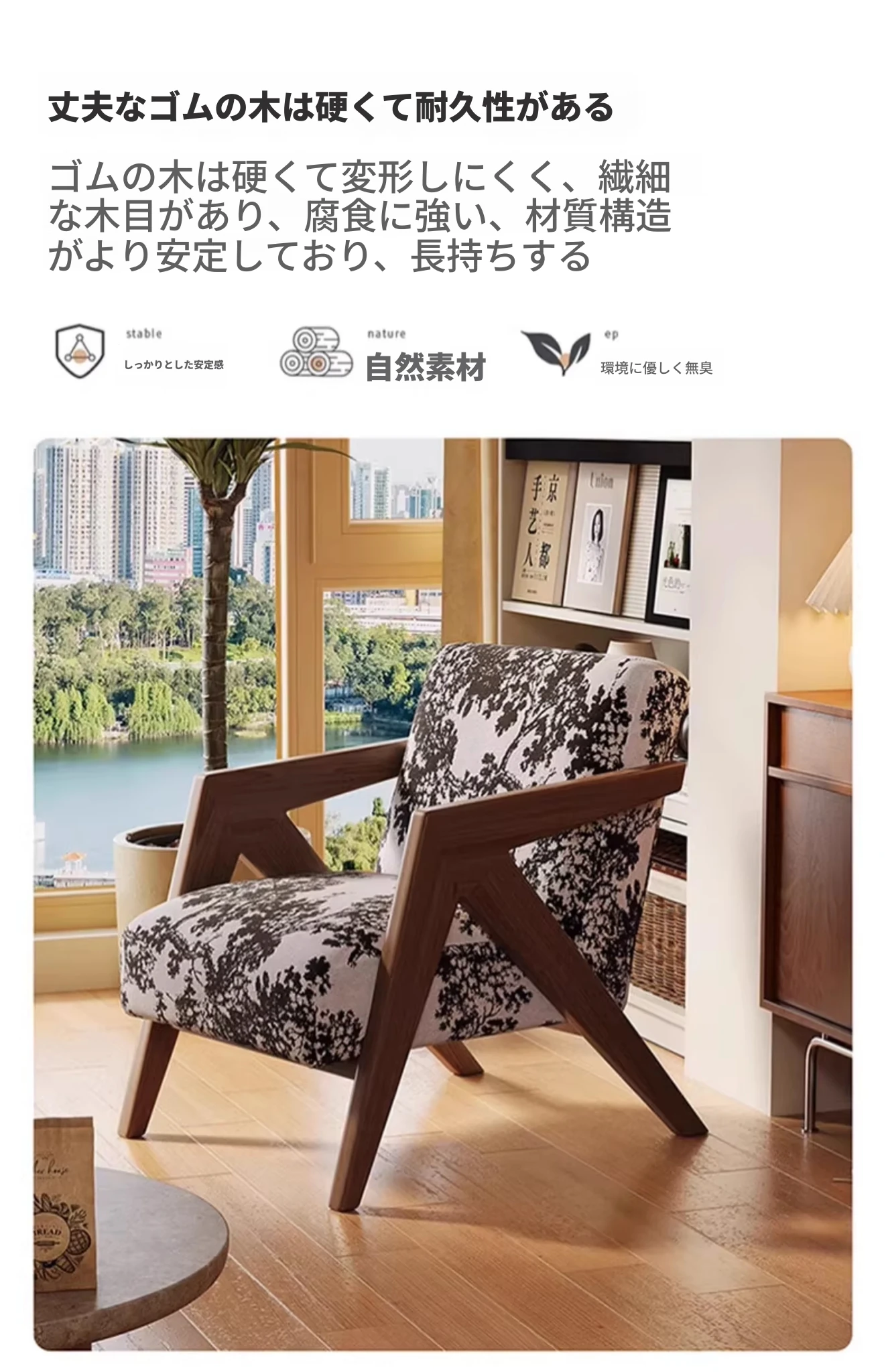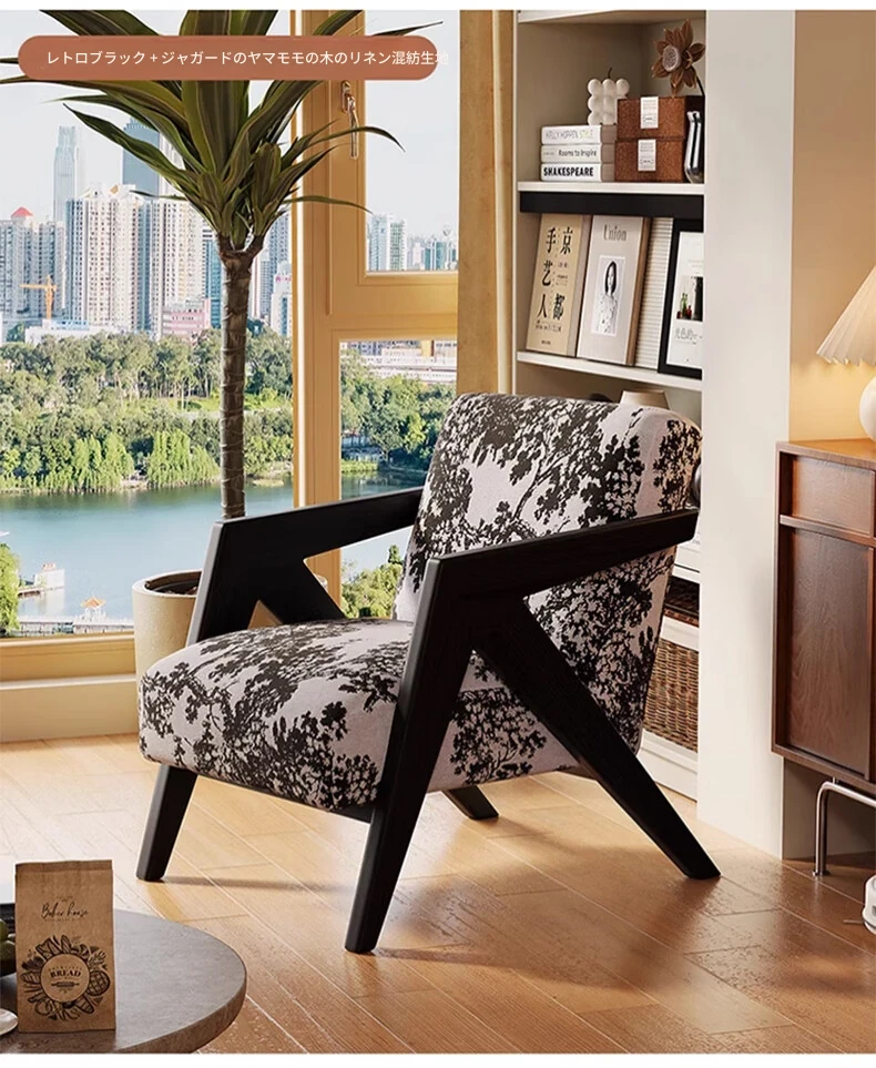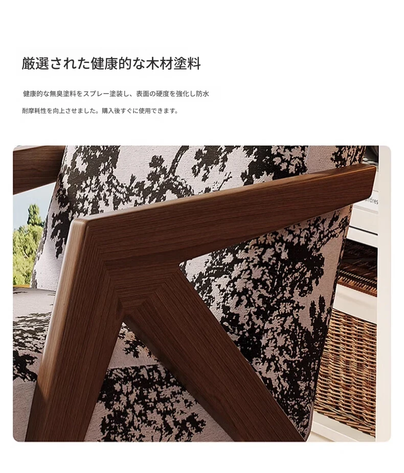 新作2025年モデル 北欧スタイルの一人掛けソファチェア - リラックスできる原木製、寝室やリビングにぴったり!バルコニーにも最適な和風デザインのラウンジチェアで、心地よい時間をお楽しみください。