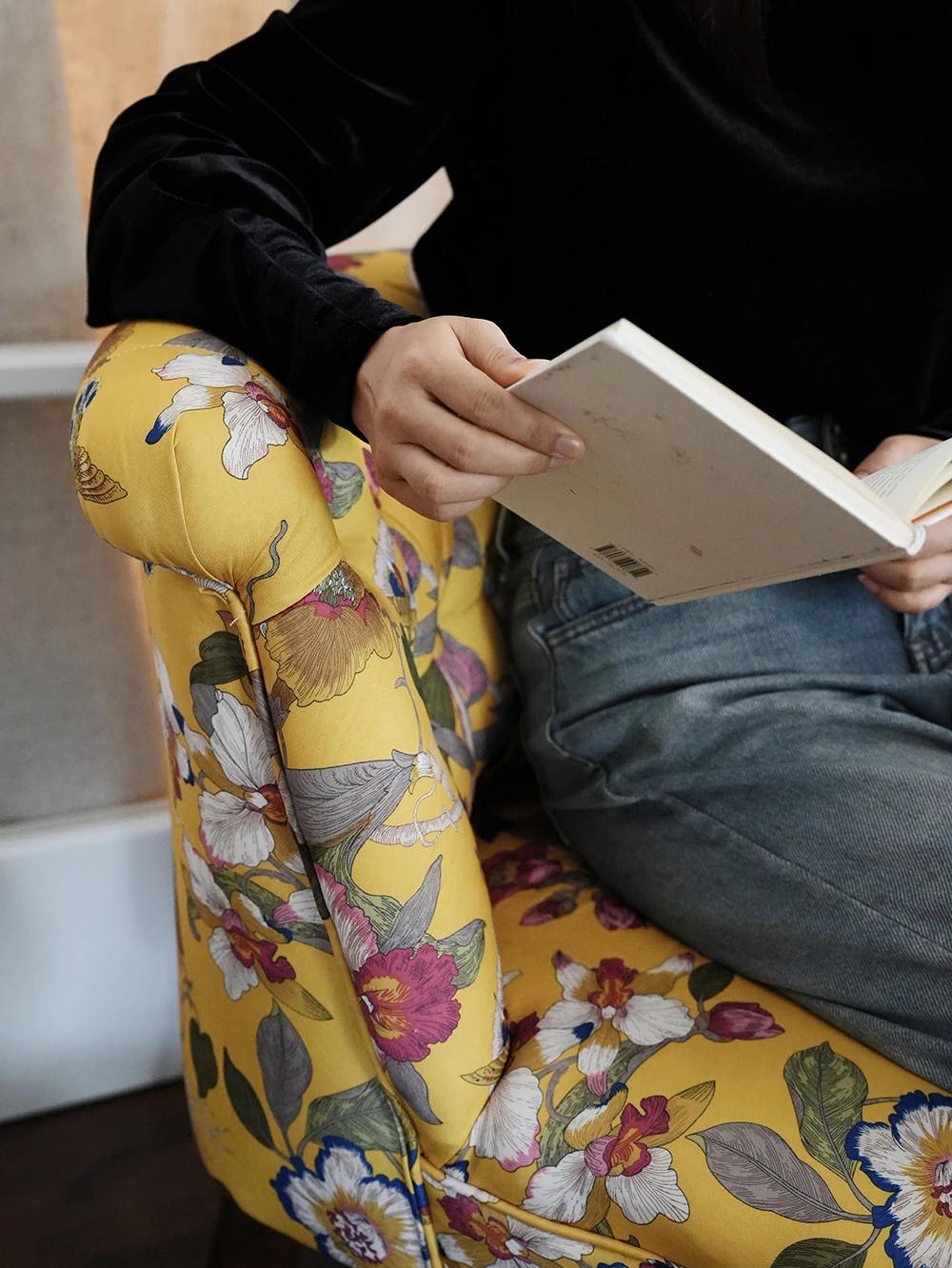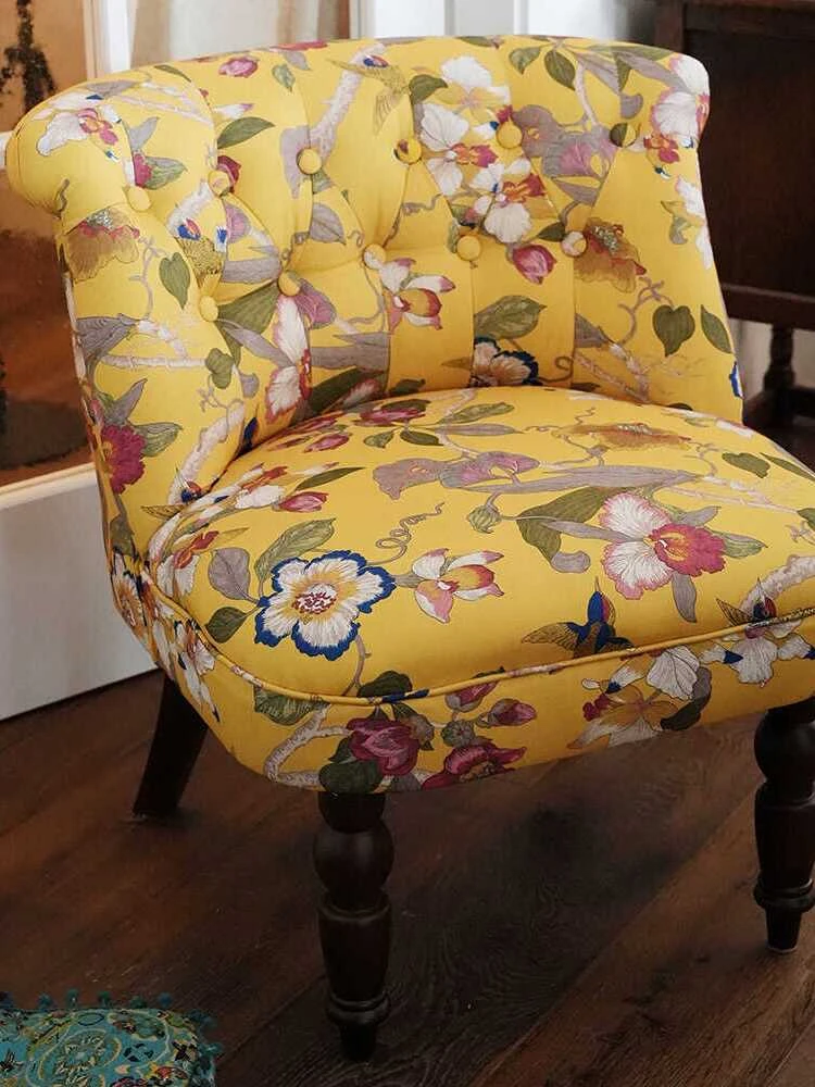 アメリカンカントリースタイルの布製1人掛けソファチェア - コンパクトなサイズで、リビングやバルコニーにぴったり!リラックスできる虎型デザインのラウンジチェアで、くつろぎの時間をお楽しみください。