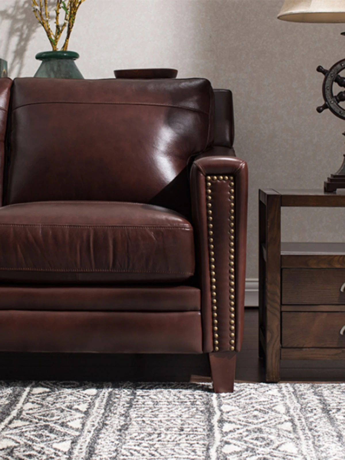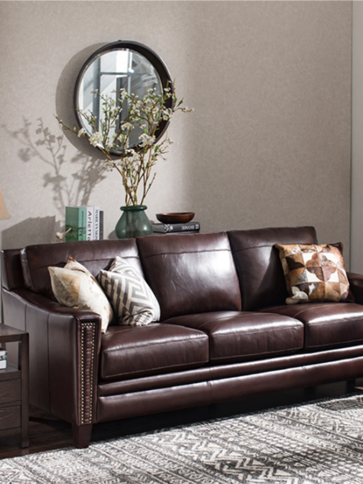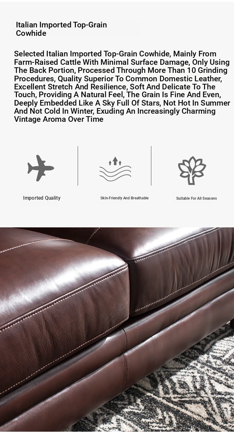 American Genuine Leather Sofa for Small Living Rooms - Complete Set of Vintage European Style Furniture, Double 3-Seater Leather Sofa, Perfect for Cozy Spaces!