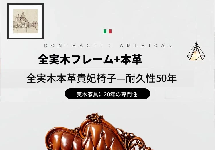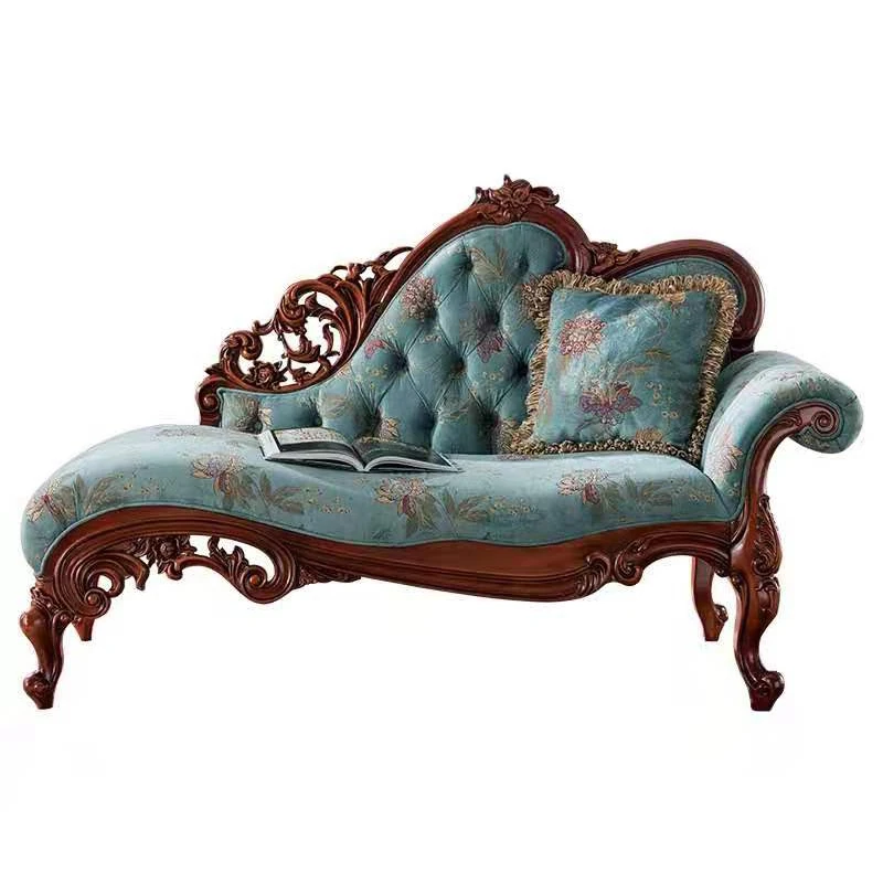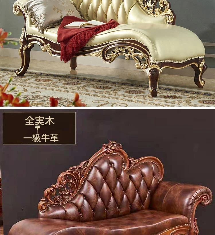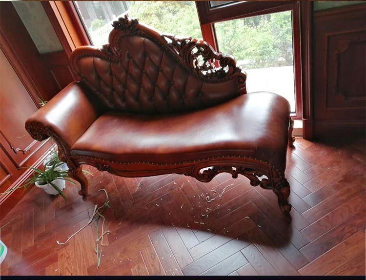 アメリカンスタイルの高級ウッド製貴妃椅子 - 寝室やリビングにぴったりな本革製ソファ。エレガントなデザインで、贅沢なひとときを提供します。お一人様用の特別な空間を演出し、リラックスした時間をお楽しみください。