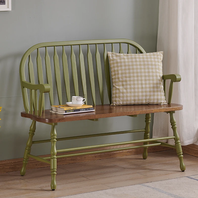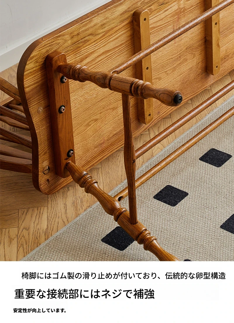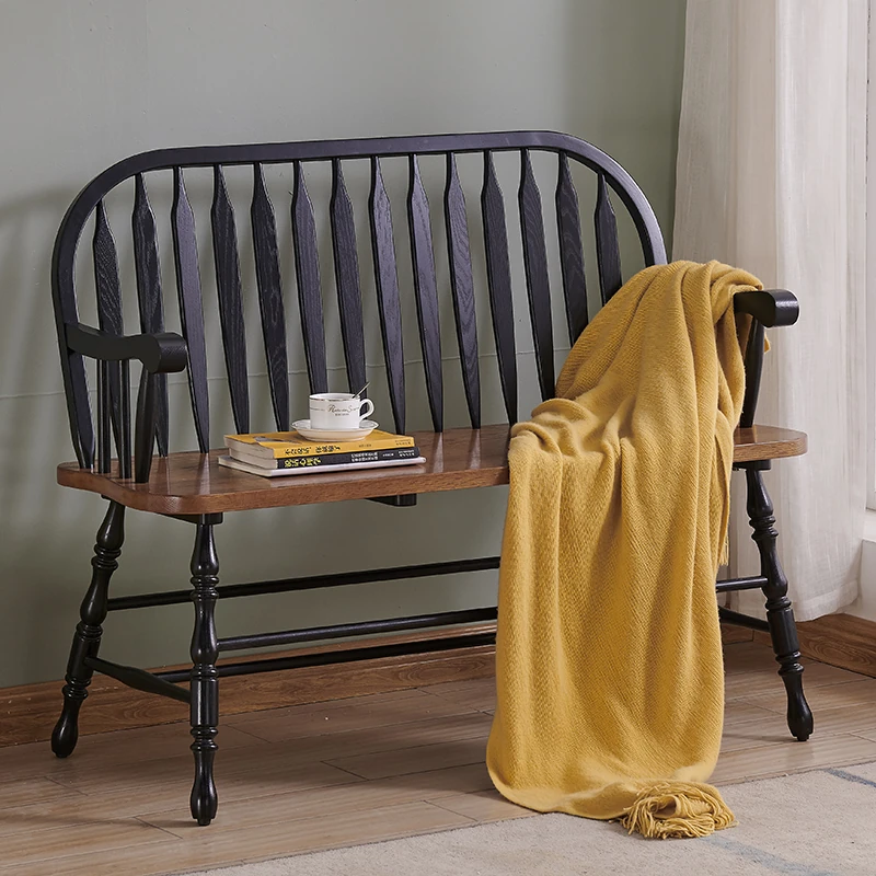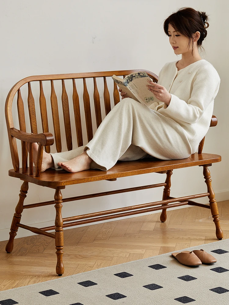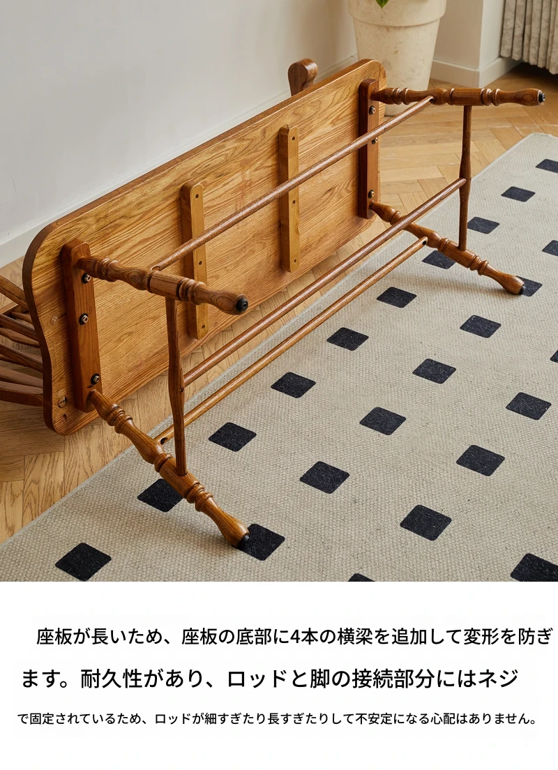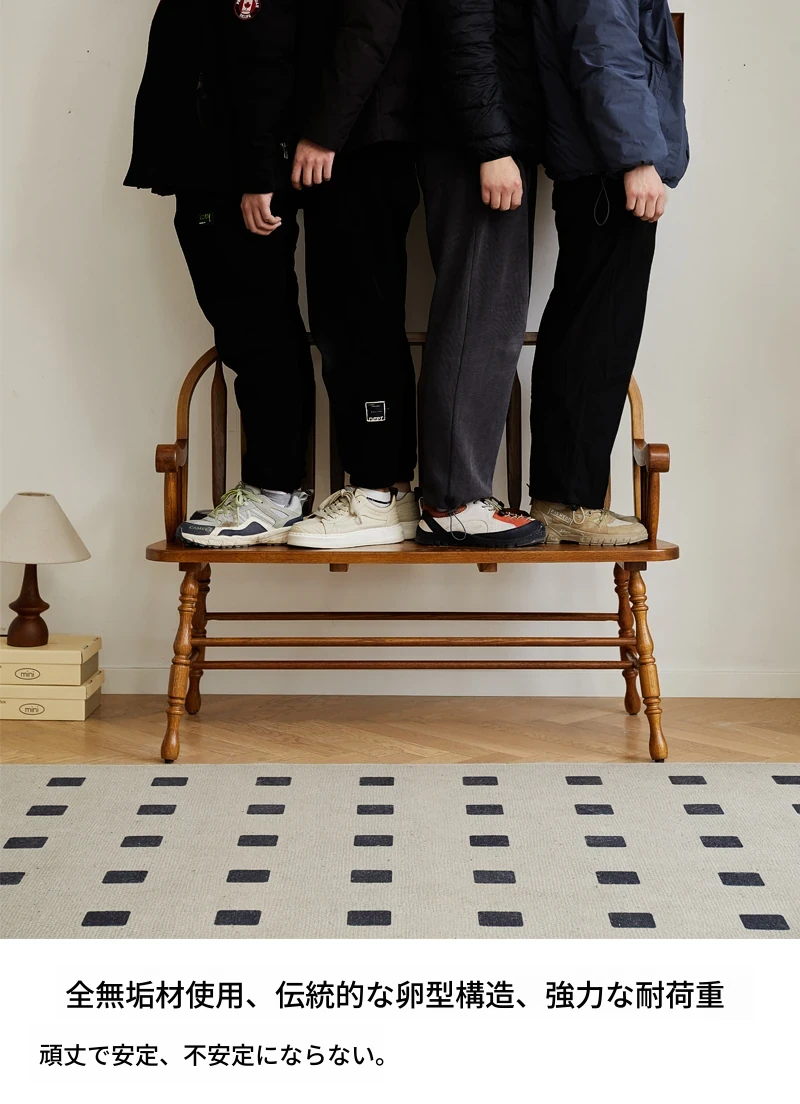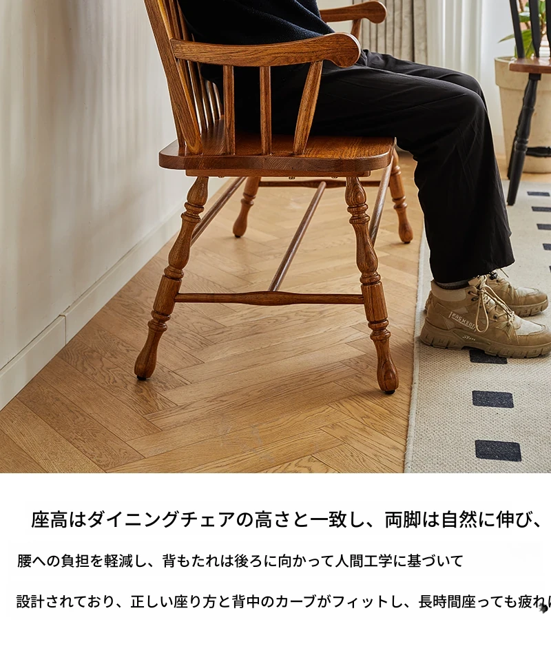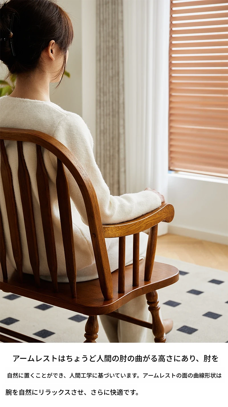 アメリカンスタイルの無垢材使用!快適なアームレスト付きの背もたれ椅子。ダイニングチェア、ベンチ、シューズベンチとしても最適!レトロなデザインで、あなたのお部屋に温もりをプラスします。