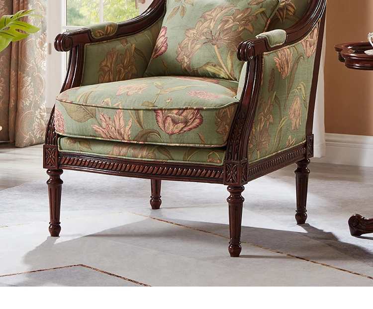 アメリカンスタイルの無垢材とファブリック製のラグジュアリーなリクライニングチェア。洗練されたデザインと簡単な組み立てで、快適な一人用ソファとして最適!伝統的なダボ接合構造で耐久性も抜群。オシャレな足置き付きで、あなたのリビングにぴったり!