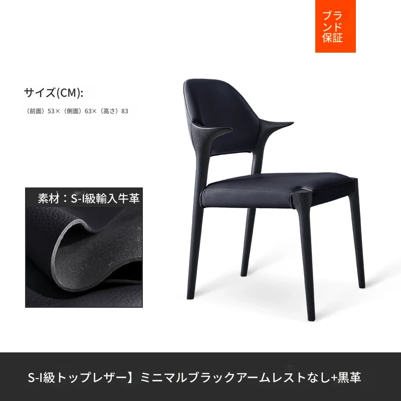 【S-I級牛革】ミニマルブラック無肘掛け+ブラックレザー