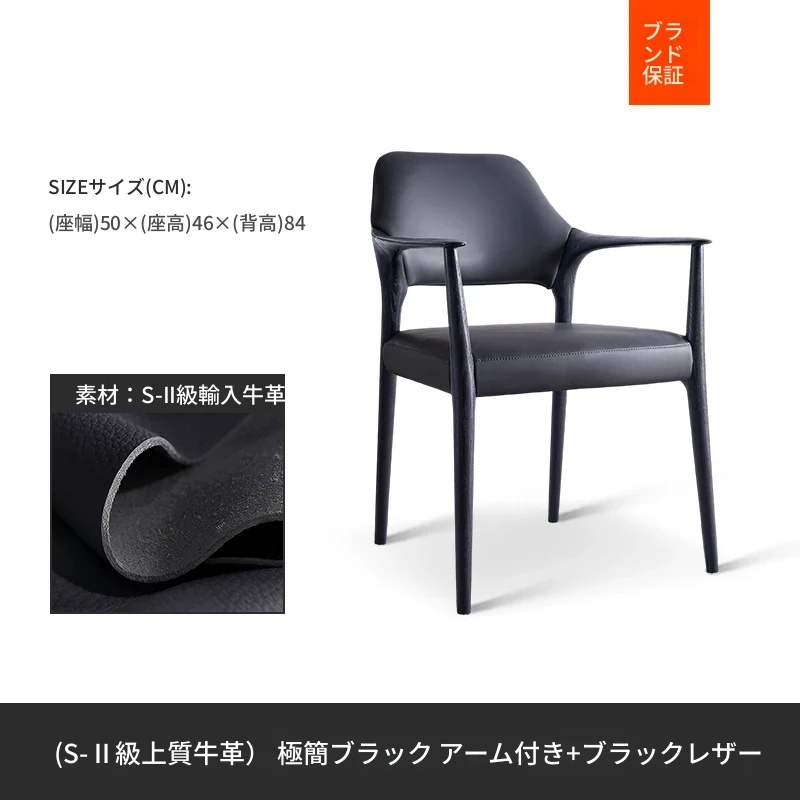 【S-II級牛革】ミニマルブラック有肘掛け+ブラックレザー