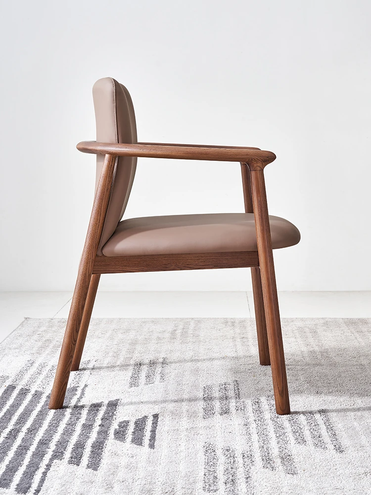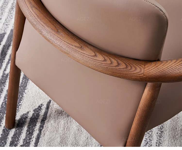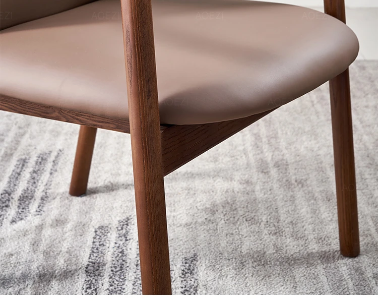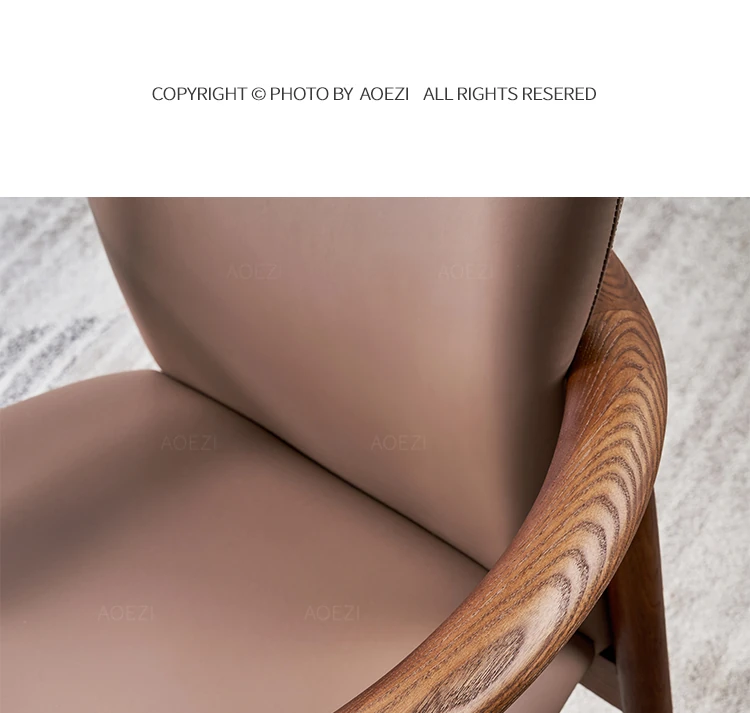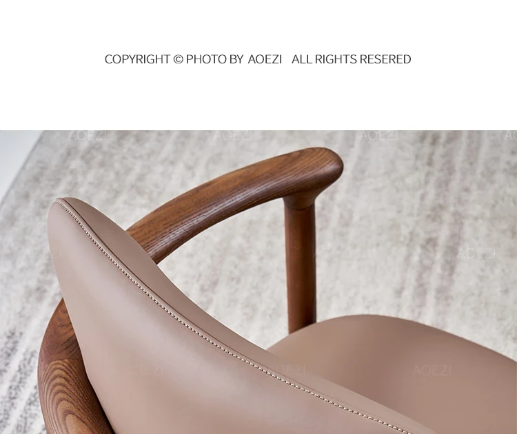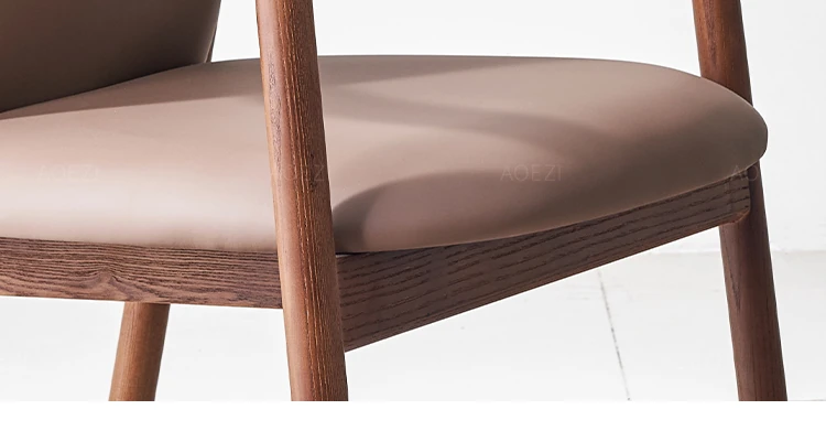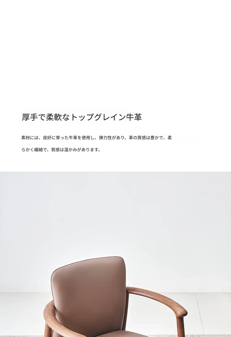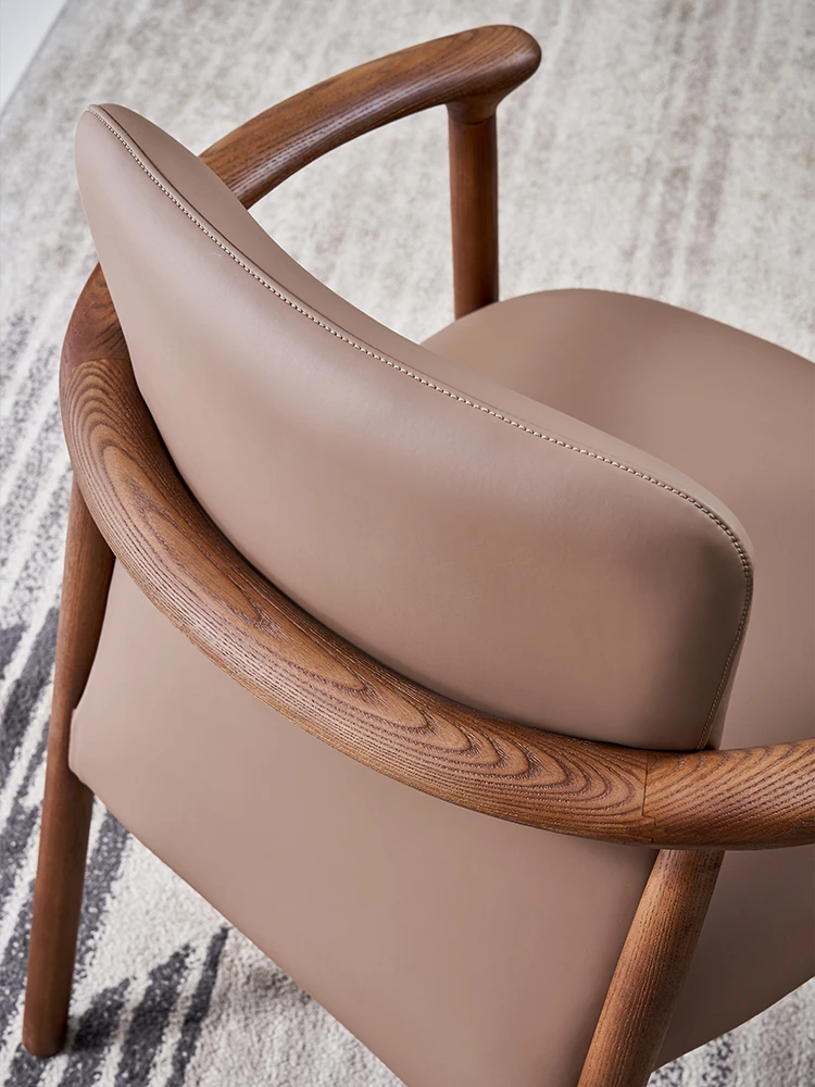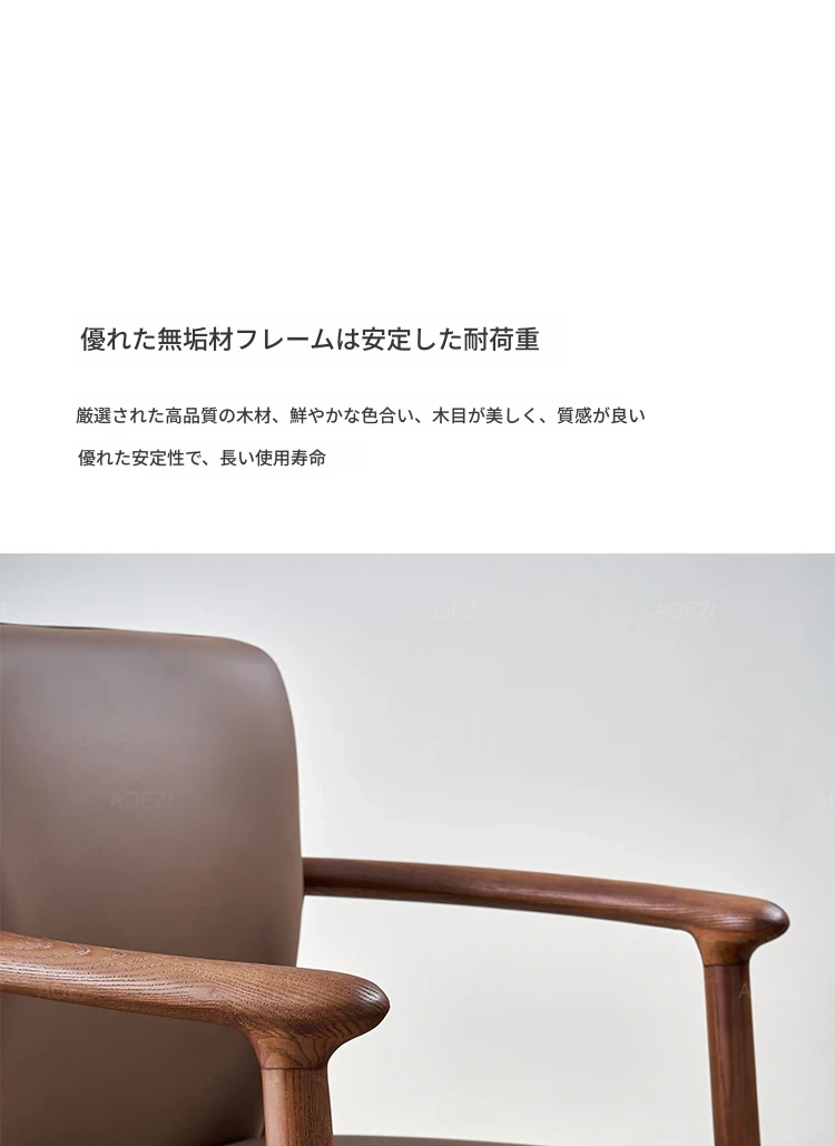 aoeZI 高級感あふれるアームチェア|本革ソフトパッド仕上げ|高級ホテルやヴィラに最適なダイニング・ティーテーブル用チェア。上質な木製フレームで、贅沢なひとときを提供します。