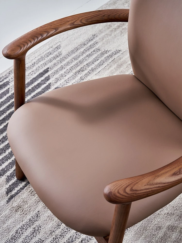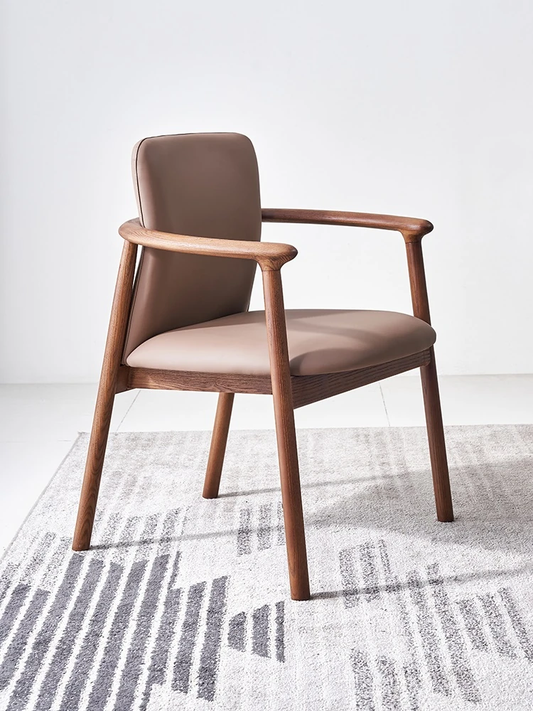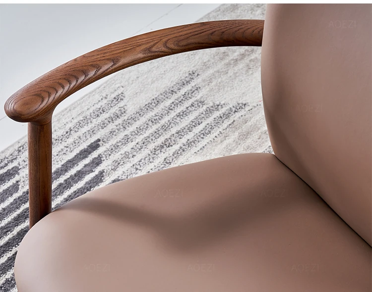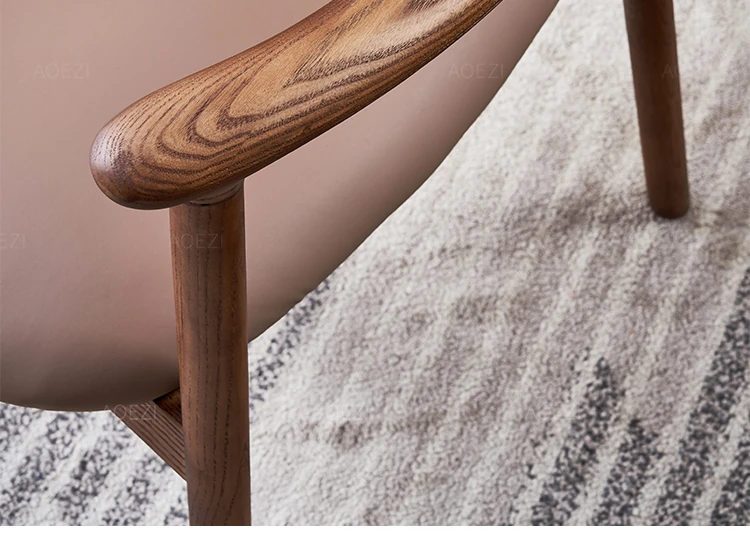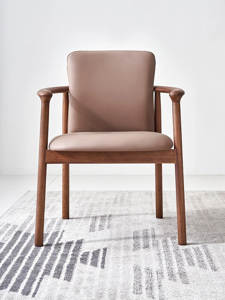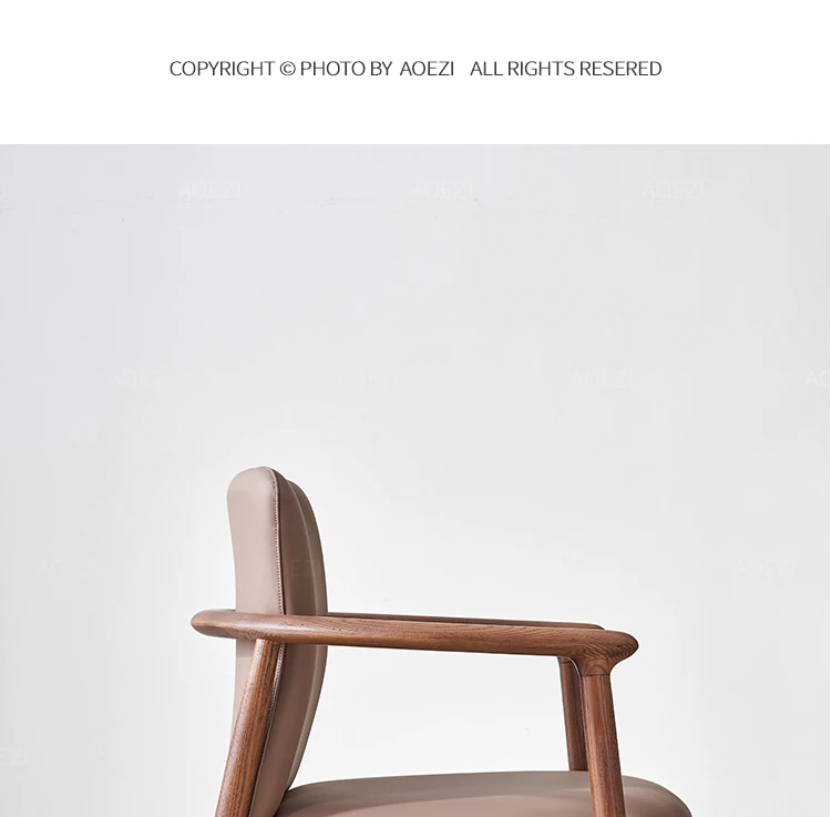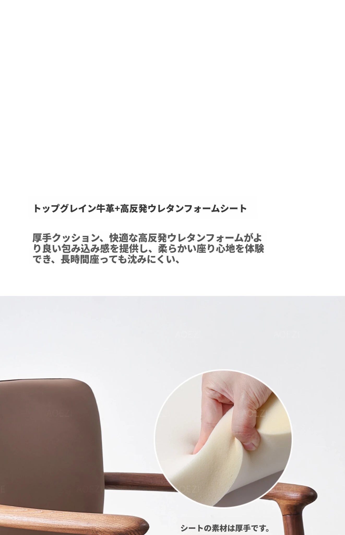aoeZI 高級感あふれるアームチェア|本革ソフトパッド仕上げ|高級ホテルやヴィラに最適なダイニング・ティーテーブル用チェア。上質な木製フレームで、贅沢なひとときを提供します。