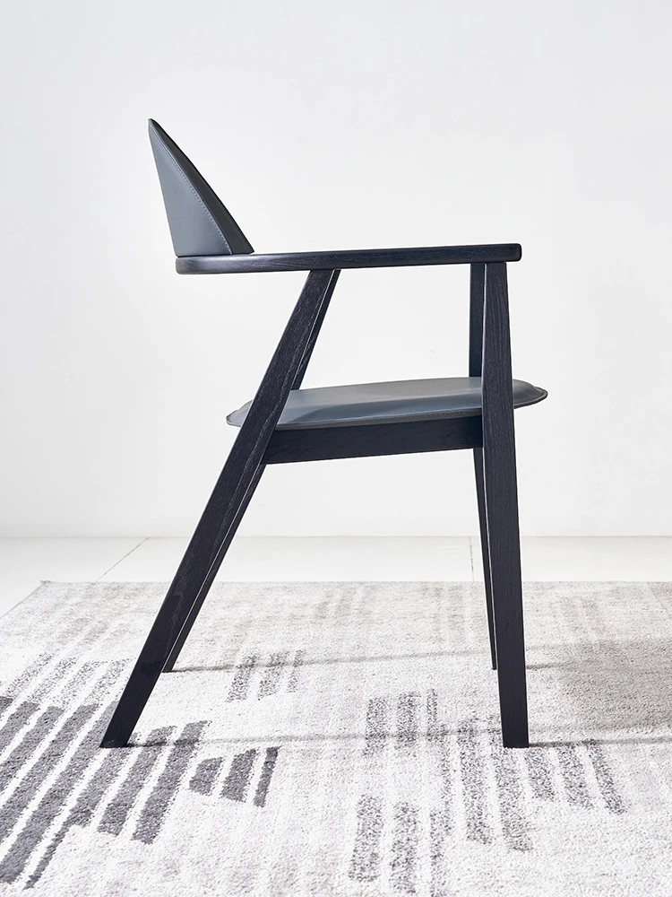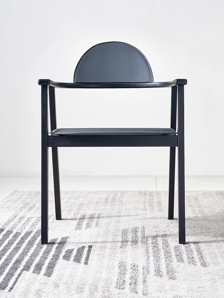 新中式デザインの黒胡桃無垢材を使用したダイニングチェア。優雅なカウホーンスタイルの背もたれ付き、家庭でのリラックスタイムやお茶のひとときにぴったり。高品質な素材で、長くご愛用いただけます。