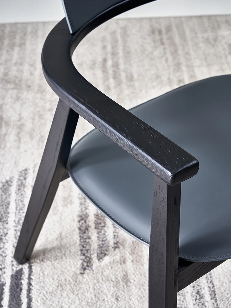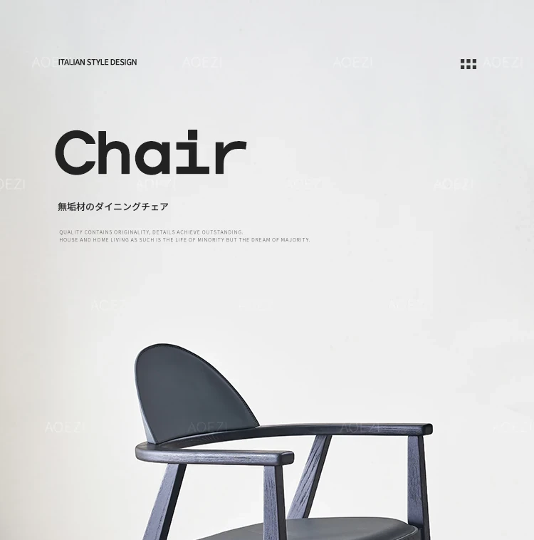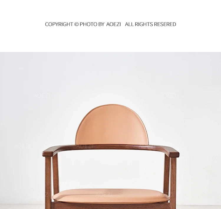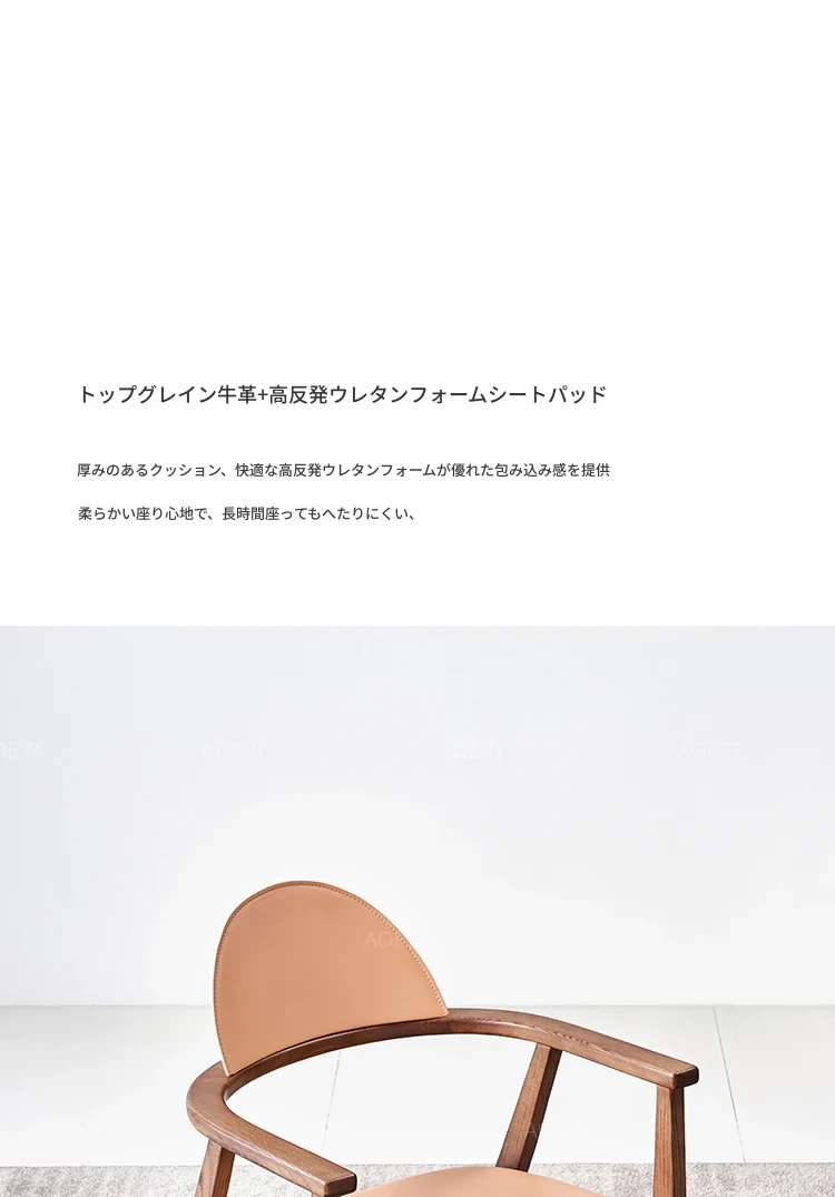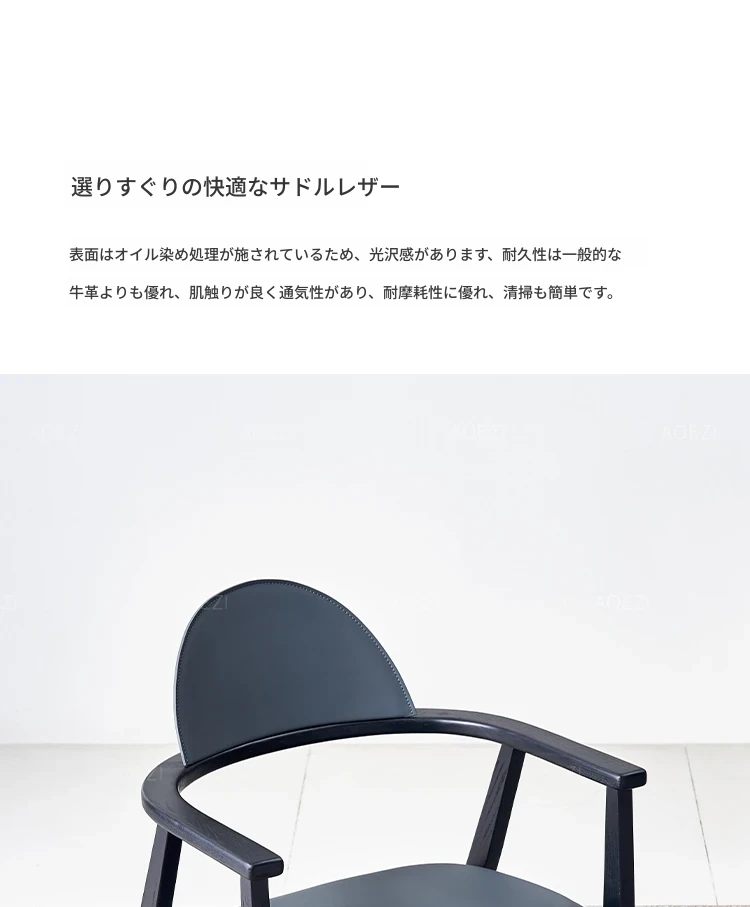 aoeZI 中古風レストランチェア|イタリアンミニマリズムの高級感|北欧レトロスタイル|厳選された無垢材とサドルレザーのハンドル付き|理想的なダイニング体験をあなたに!