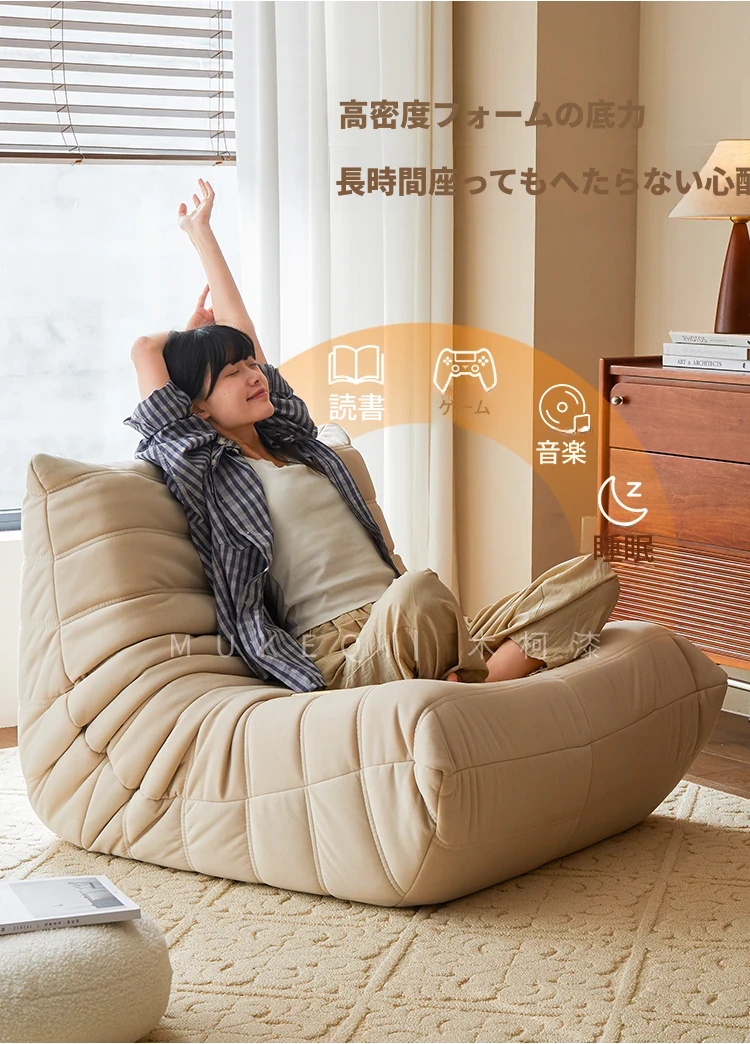 ボンボンカタツムリソファー - ラグジュアリーなデザインで、コンパクトな部屋にもぴったり!リビングや寝室、バルコニーでくつろげる、寝転んで寝られる一人用の人気リクライニングチェア。
