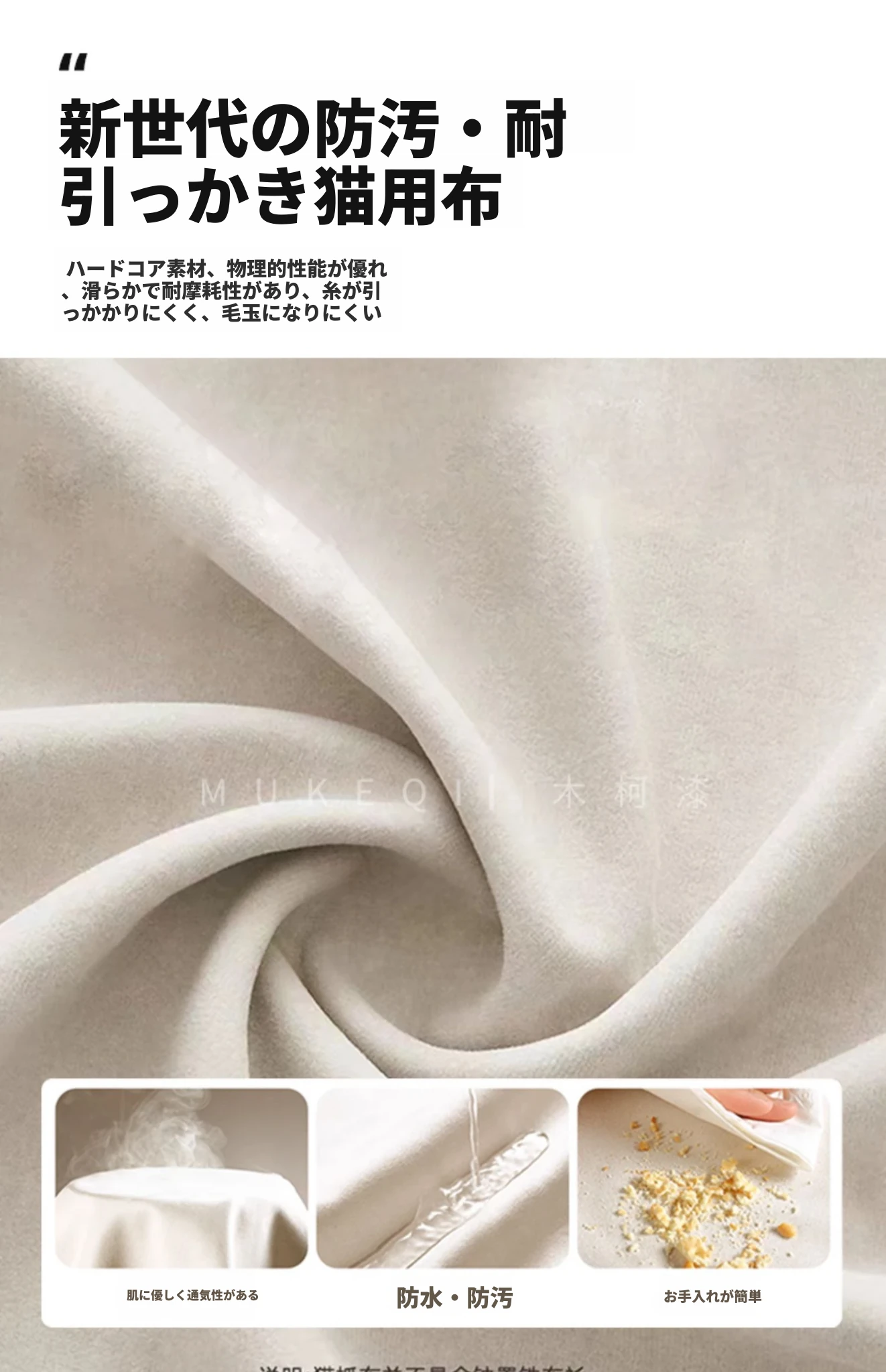 クリーム色-猫爪布 汚れ防止・猫爪防止