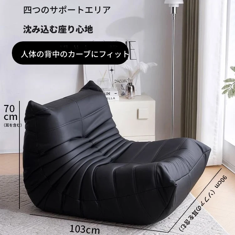 毛虫ソファ/ブラック【アップグレード1.8mmエコレザー】