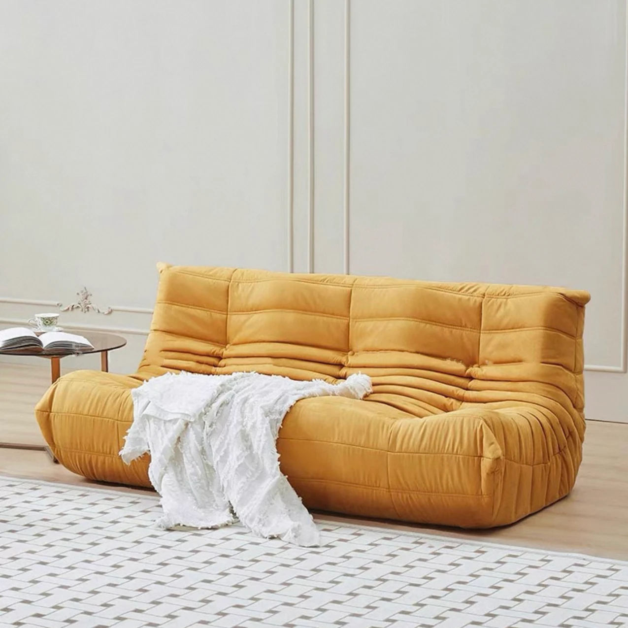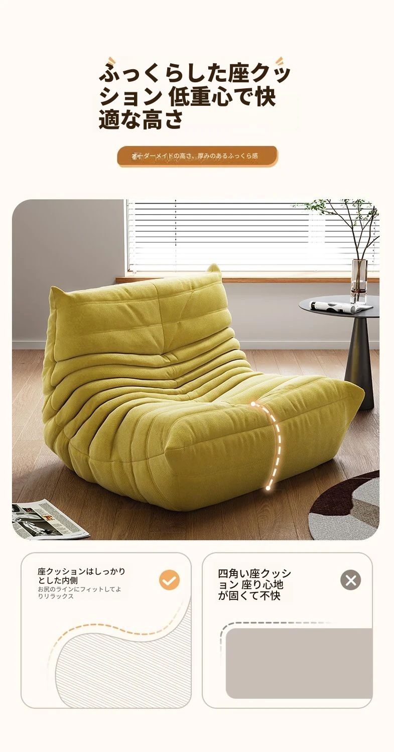 毛虫ソファ/イエロー-キャットクロー布(防汚 耐引掻き)