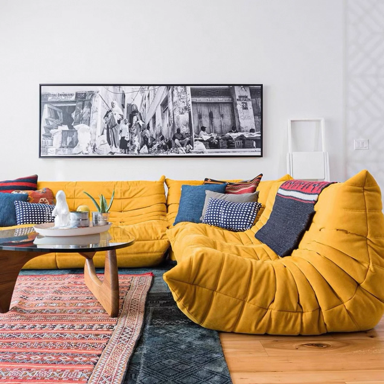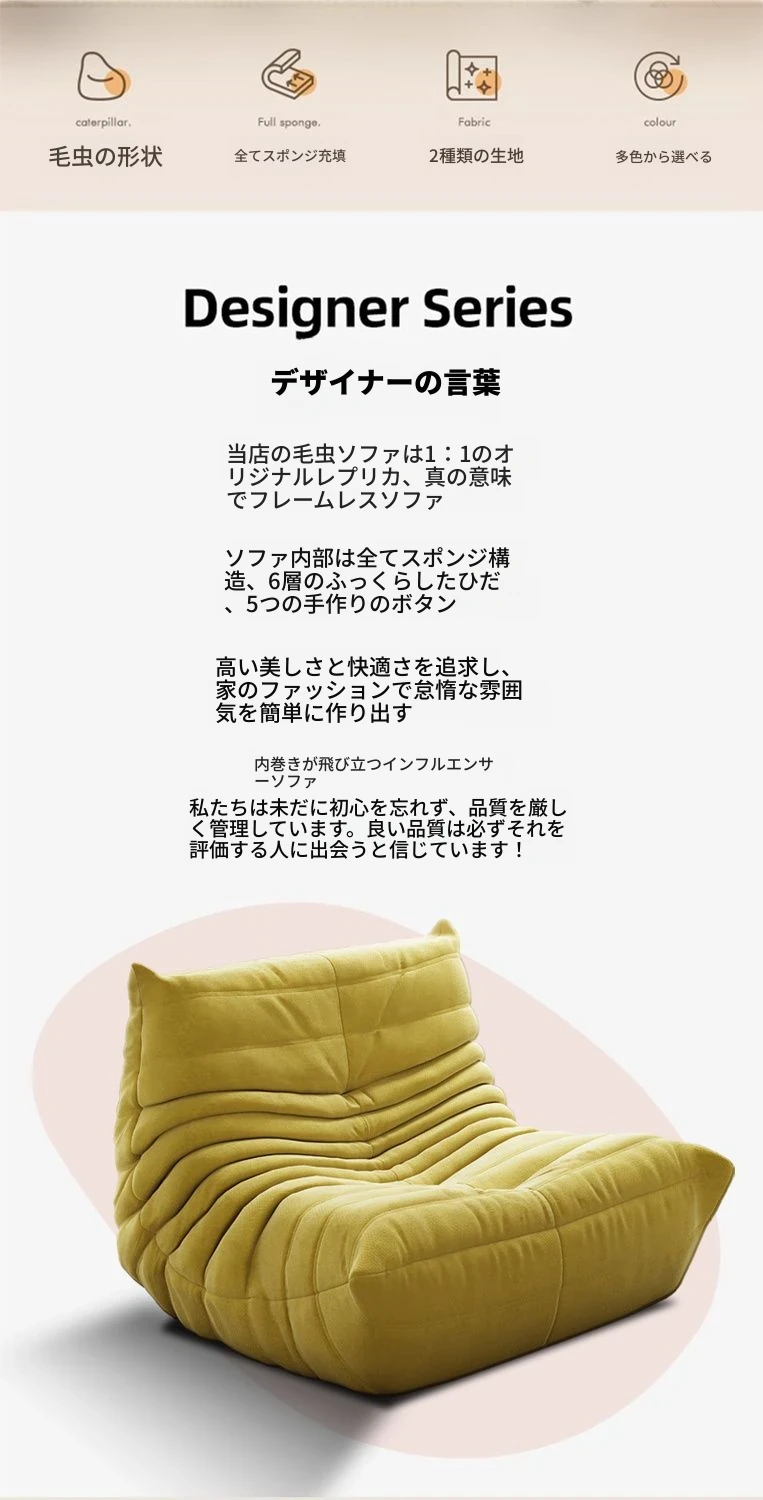 毛虫ソファ+オットマン/イエロー-キャットクロー布(防汚 耐引掻き)