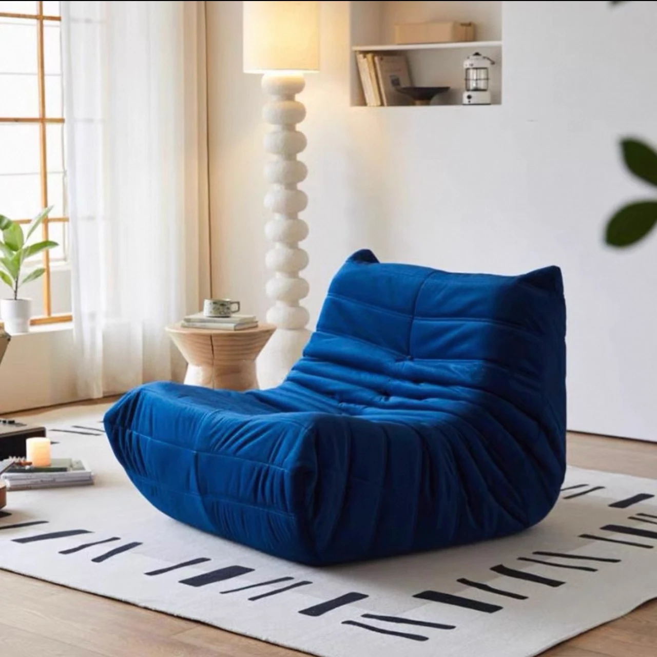 毛虫ソファ/ロイヤルブルー-キャットクロー布(防汚 耐引掻き)