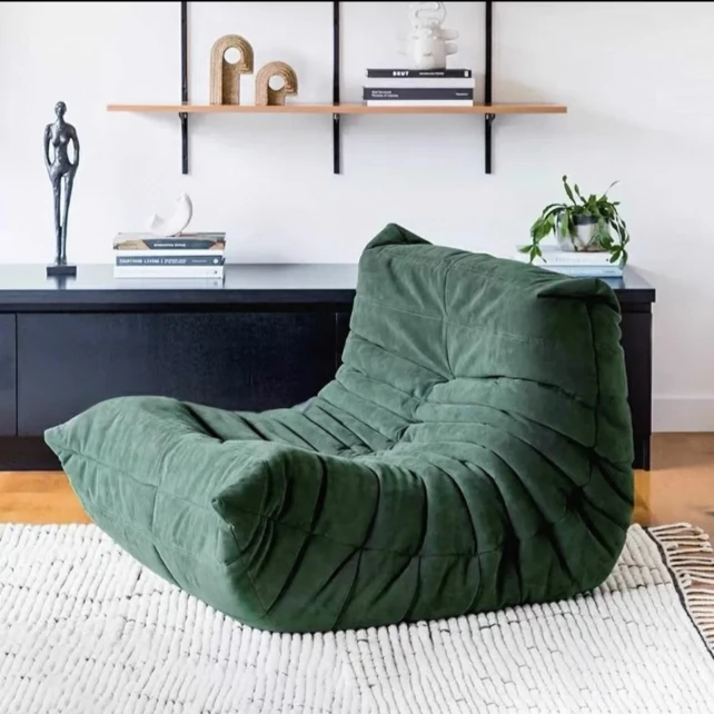 毛虫ソファ+オットマン/ダークグリーン スエード