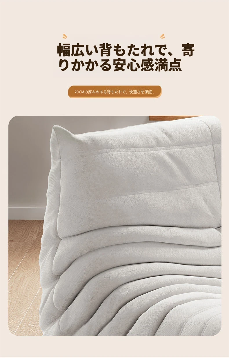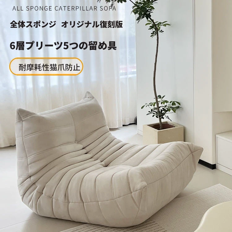 毛虫ソファ/クリーム色-キャットクロー布(防汚 耐引掻き)
