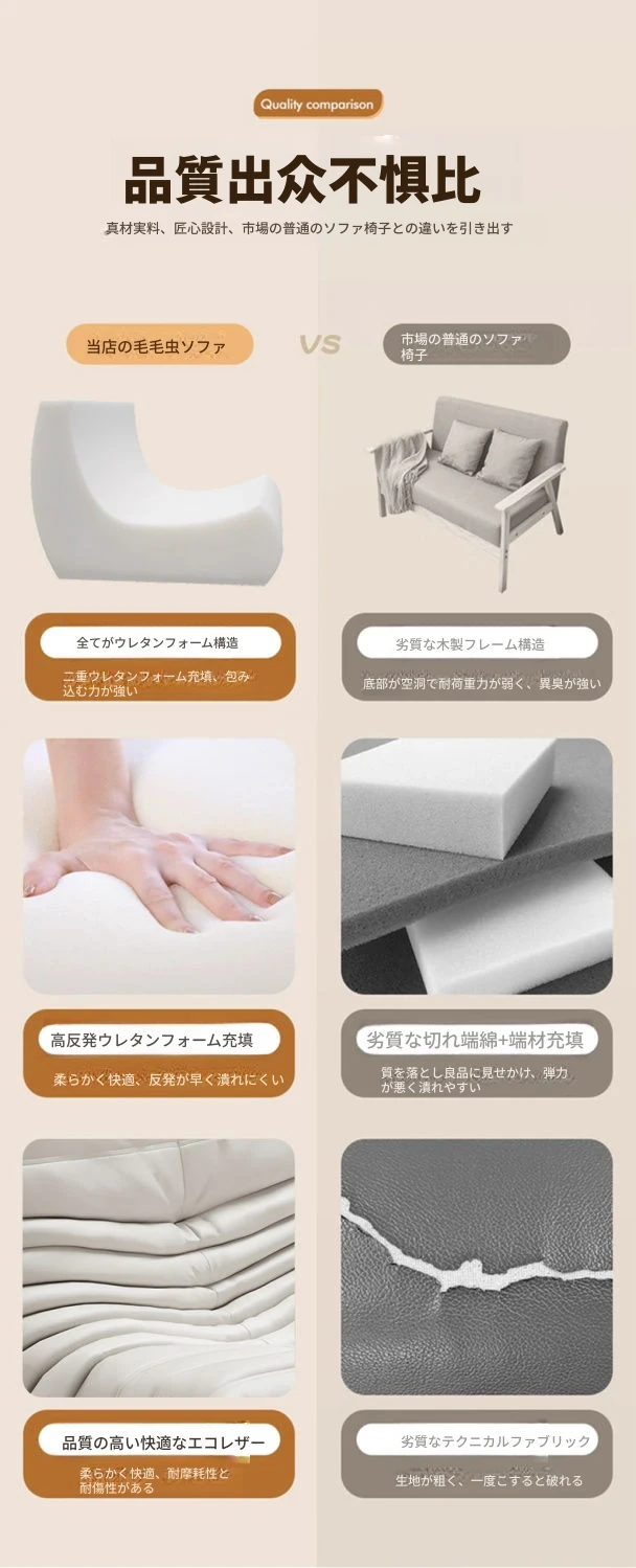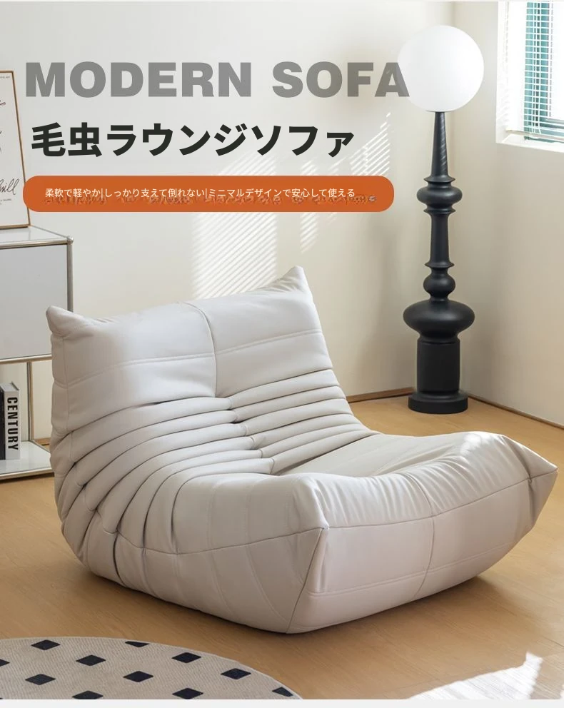 毛虫ソファ/アイボリー【アップグレード1.8mmエコレザー】