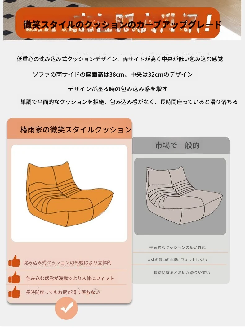 毛虫ソファ+オットマン/ハニオレンジ色 スエード