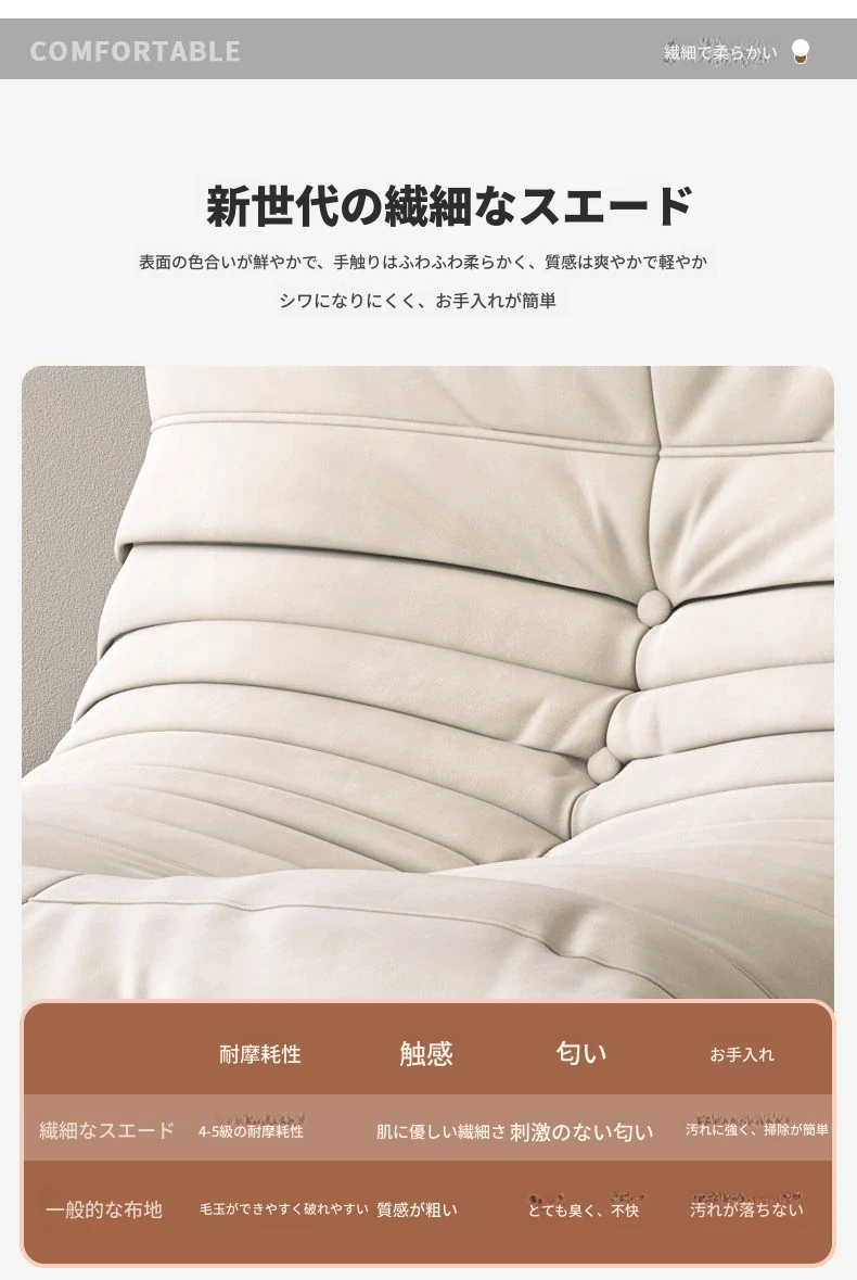 毛虫ソファ+オットマン/ライトベージュ スエード