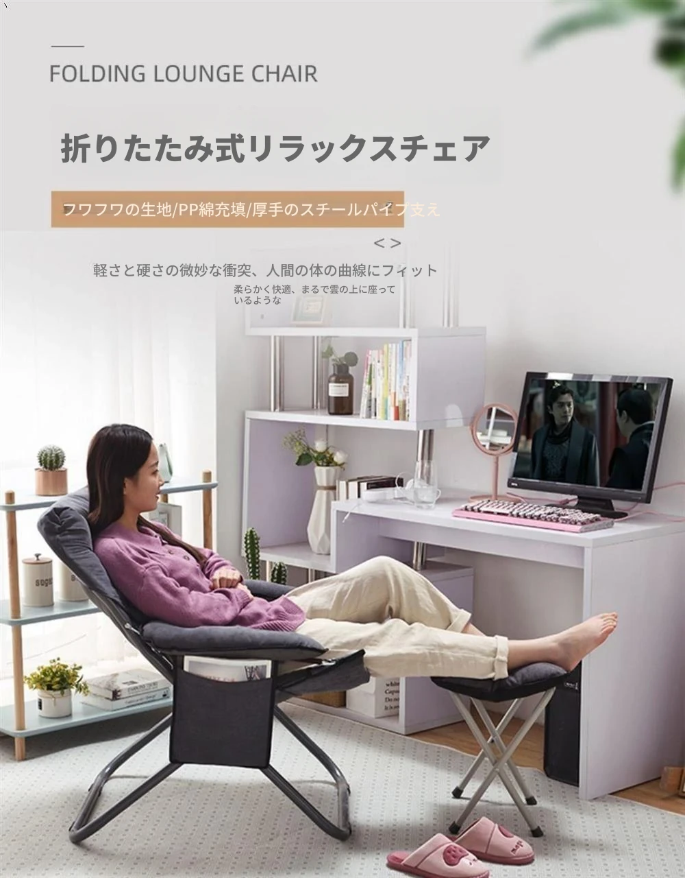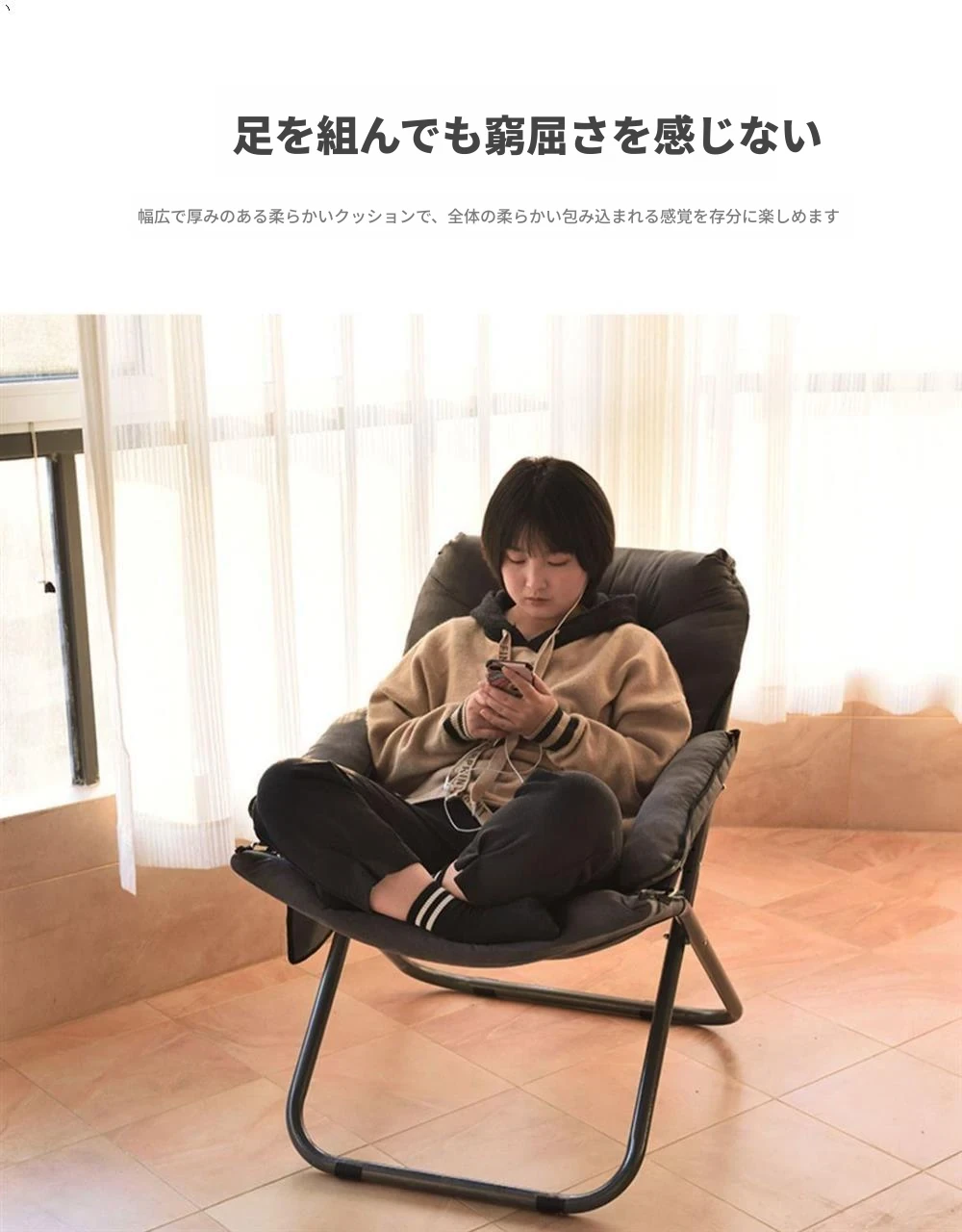 リラックスできる折りたたみソファチェア|家でのくつろぎやバルコニーに最適!コンパクト設計で、デスクワークや休憩にぴったり。背もたれ付きで快適さ抜群、寮生活にもおすすめ!