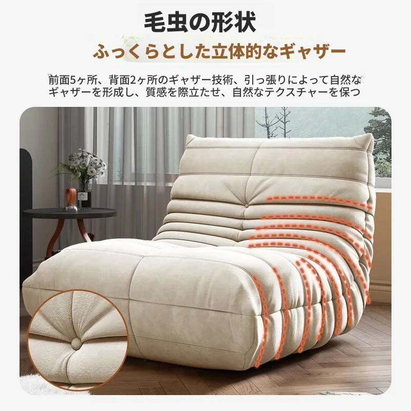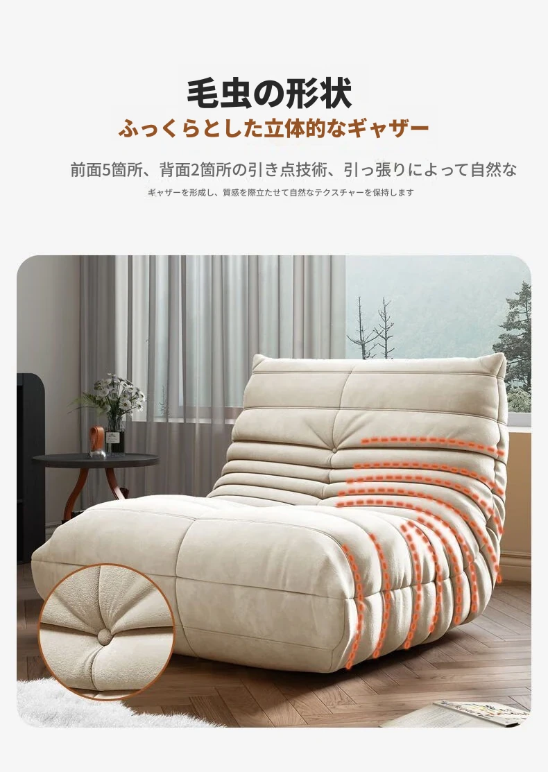 リラックスできる毛虫型ソファ|バルコニーや寝室に最適な一人用ソファ|タタミでも使える!寝転がっても快適に眠れる、人気の懶人ソファです!