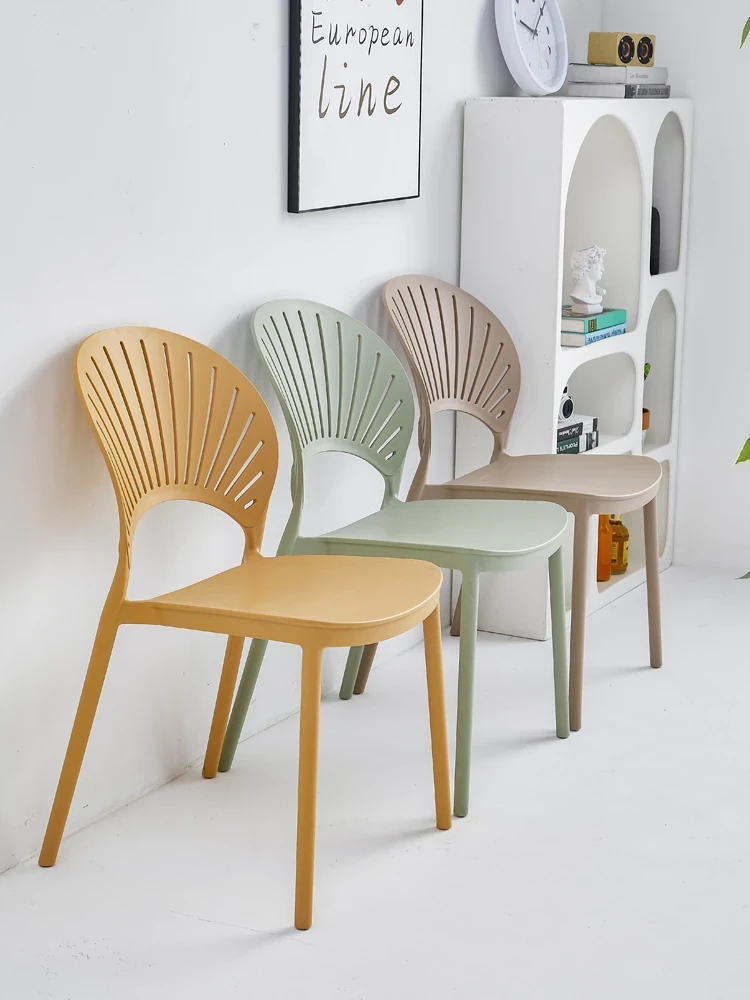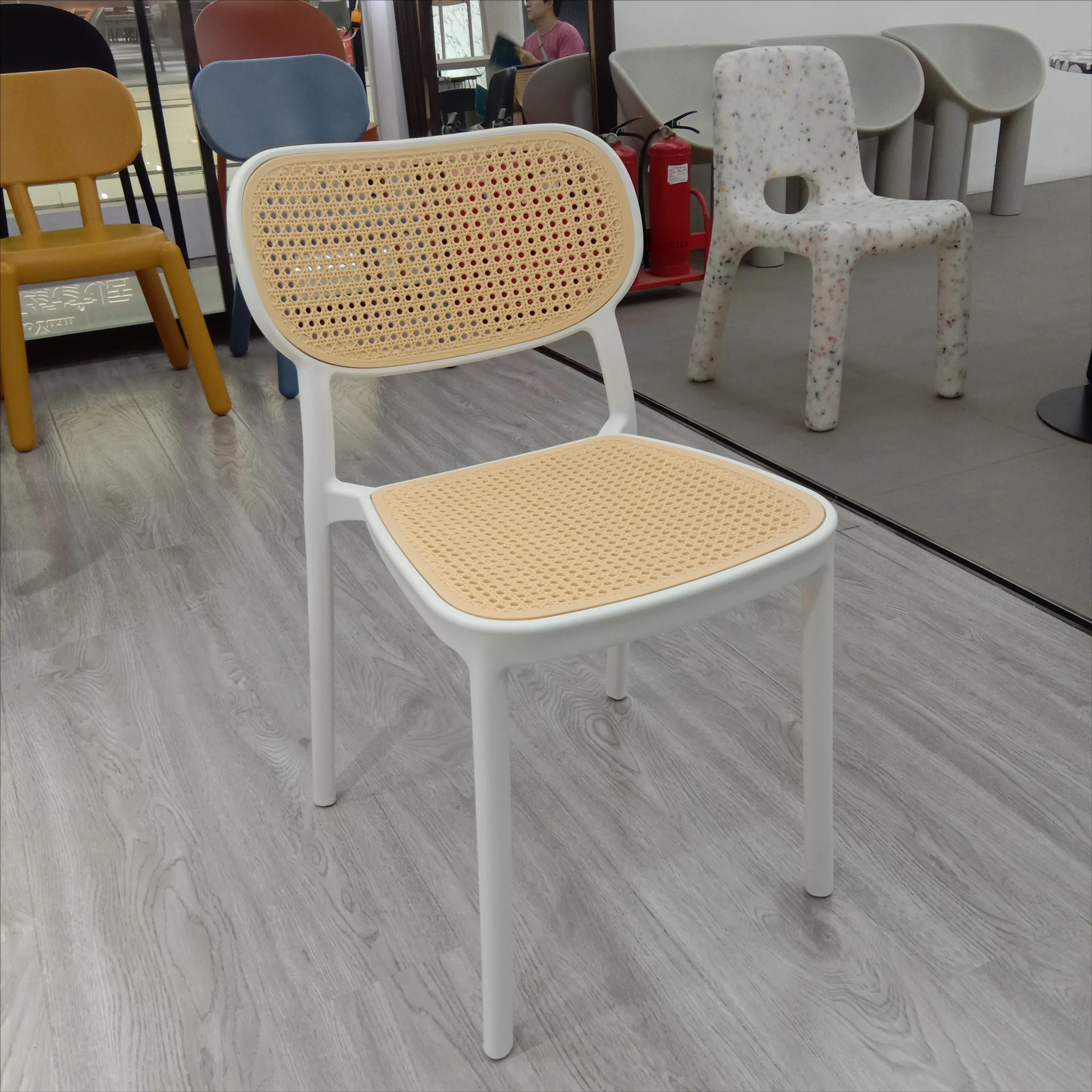 クリーム風モダンミニマリスト北欧スタイルの背もたれ付きハイバックシェルプラスチックチェア、人気のティー&コーヒーショップにぴったり!おしゃれで快適なデザインで、あなたの空間を引き立てます。