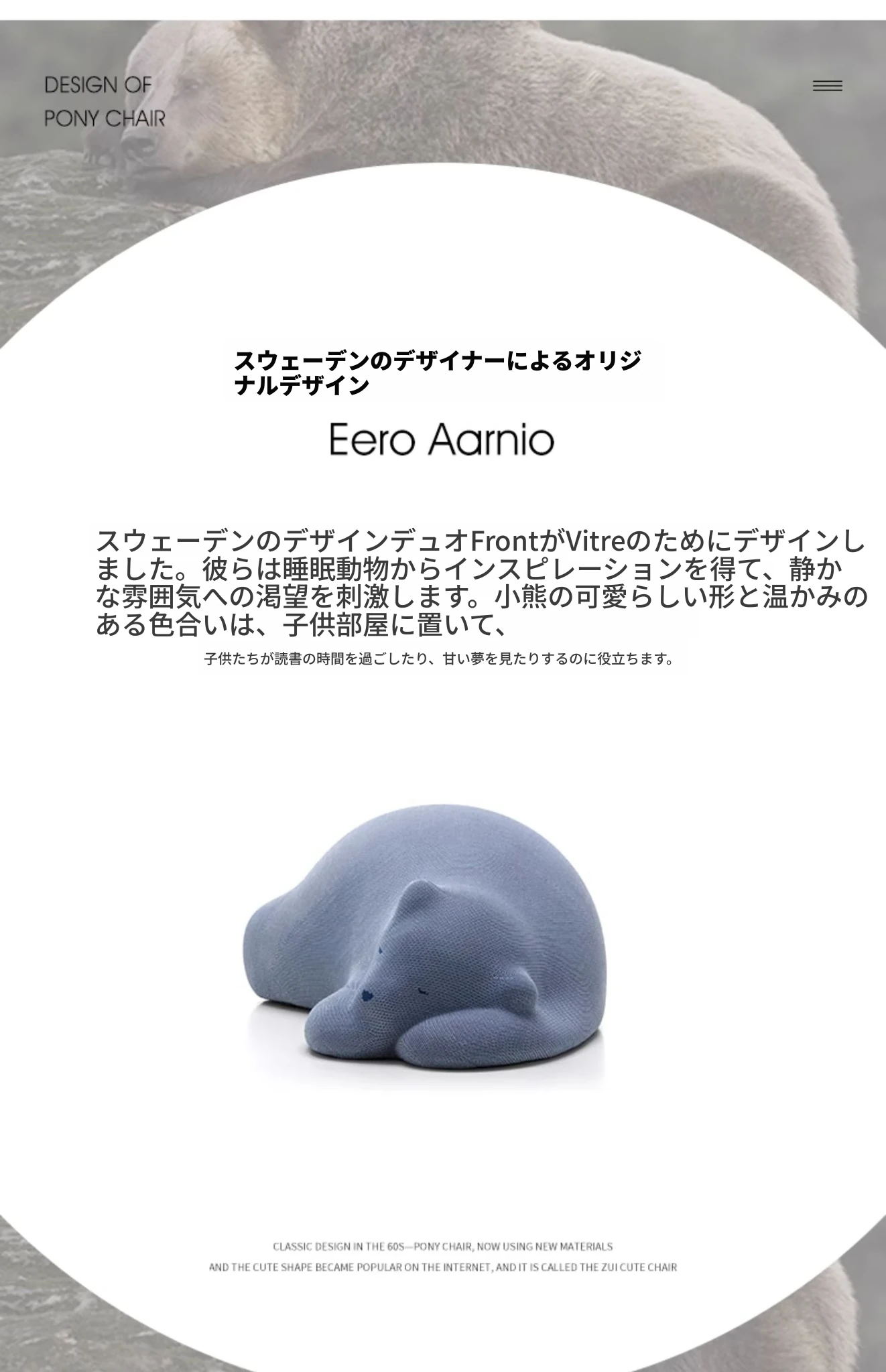 パパベアソファー:可愛い北極熊デザインの子供用シングルチェア!お部屋を彩るクリエイティブな一品、リラックスしたいお子様にぴったりのラウンジチェアです。