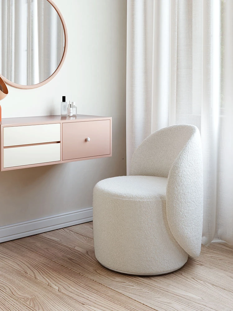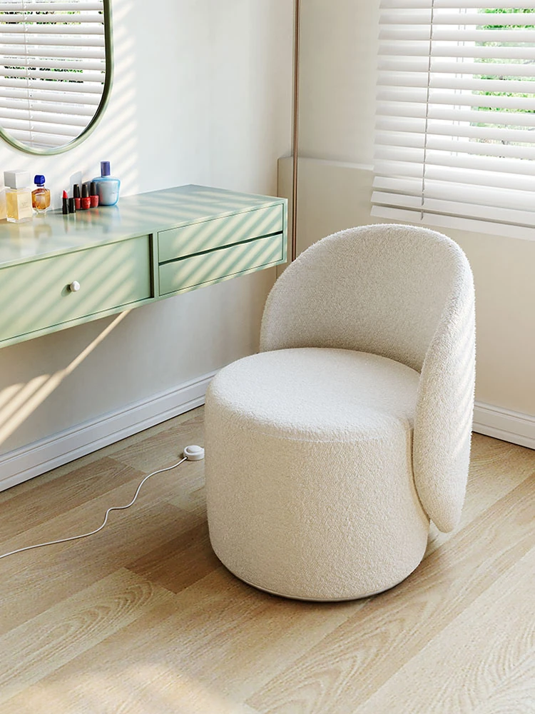 デザイナーズ化粧台椅子 - 軽やかなラグジュアリー感漂う回転式バックレスト付きメイクアップスツール。おしゃれなインスタ映え間違いなしの寝室用化粧凳で、あなたのビューティータイムを特別なものに!