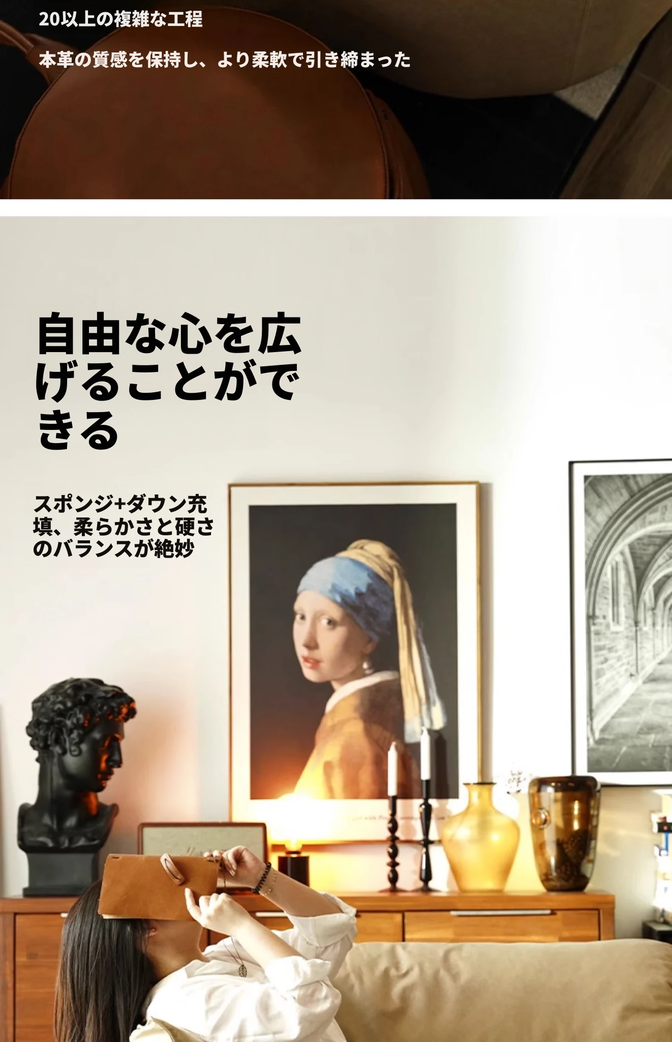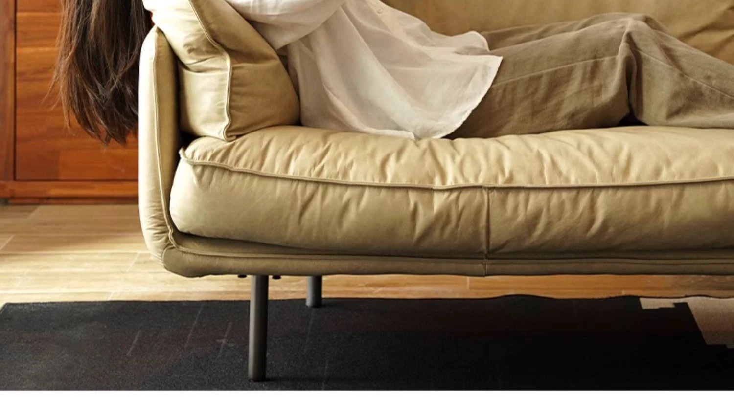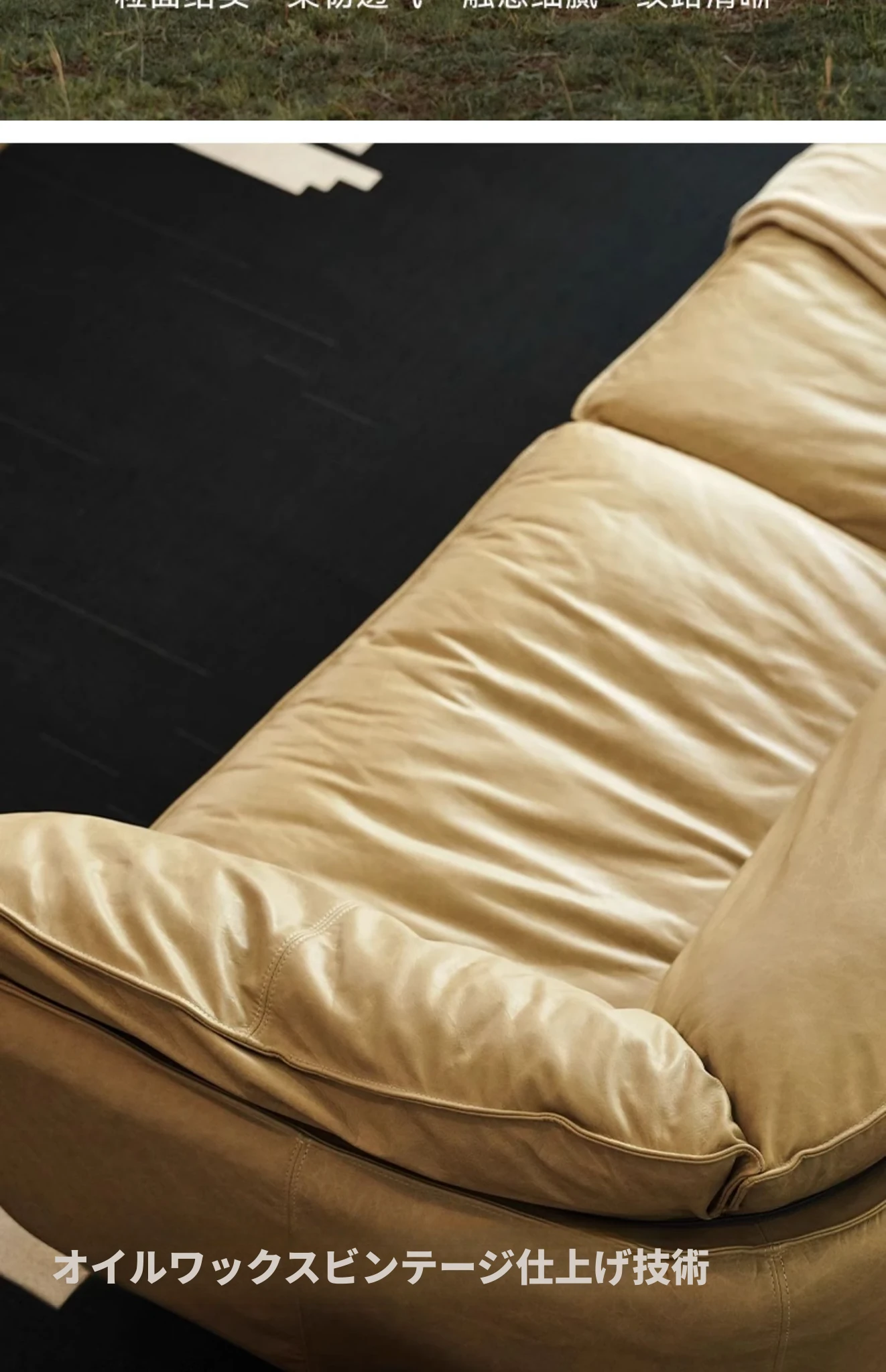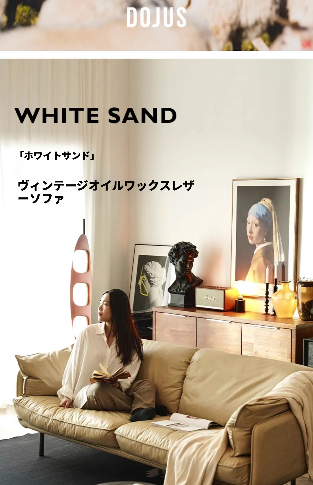 DOJUSリゾートスタイル本革ソファ 小型住宅向け 高級トップグレイン牛革&ダウンクッション 北欧風リビング用3人掛けソファで、快適さとスタイルを両立!