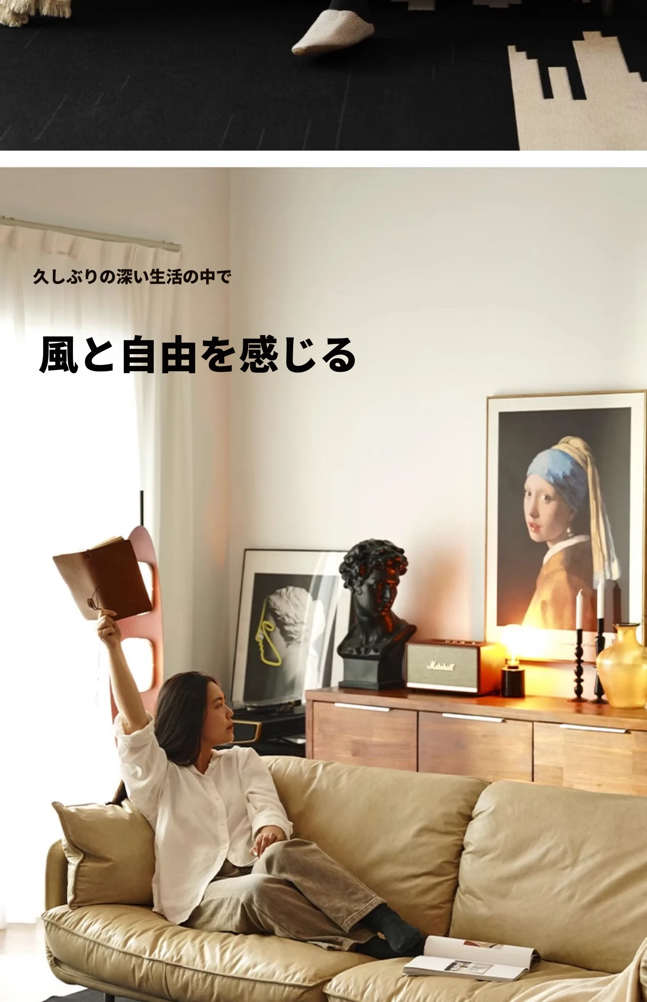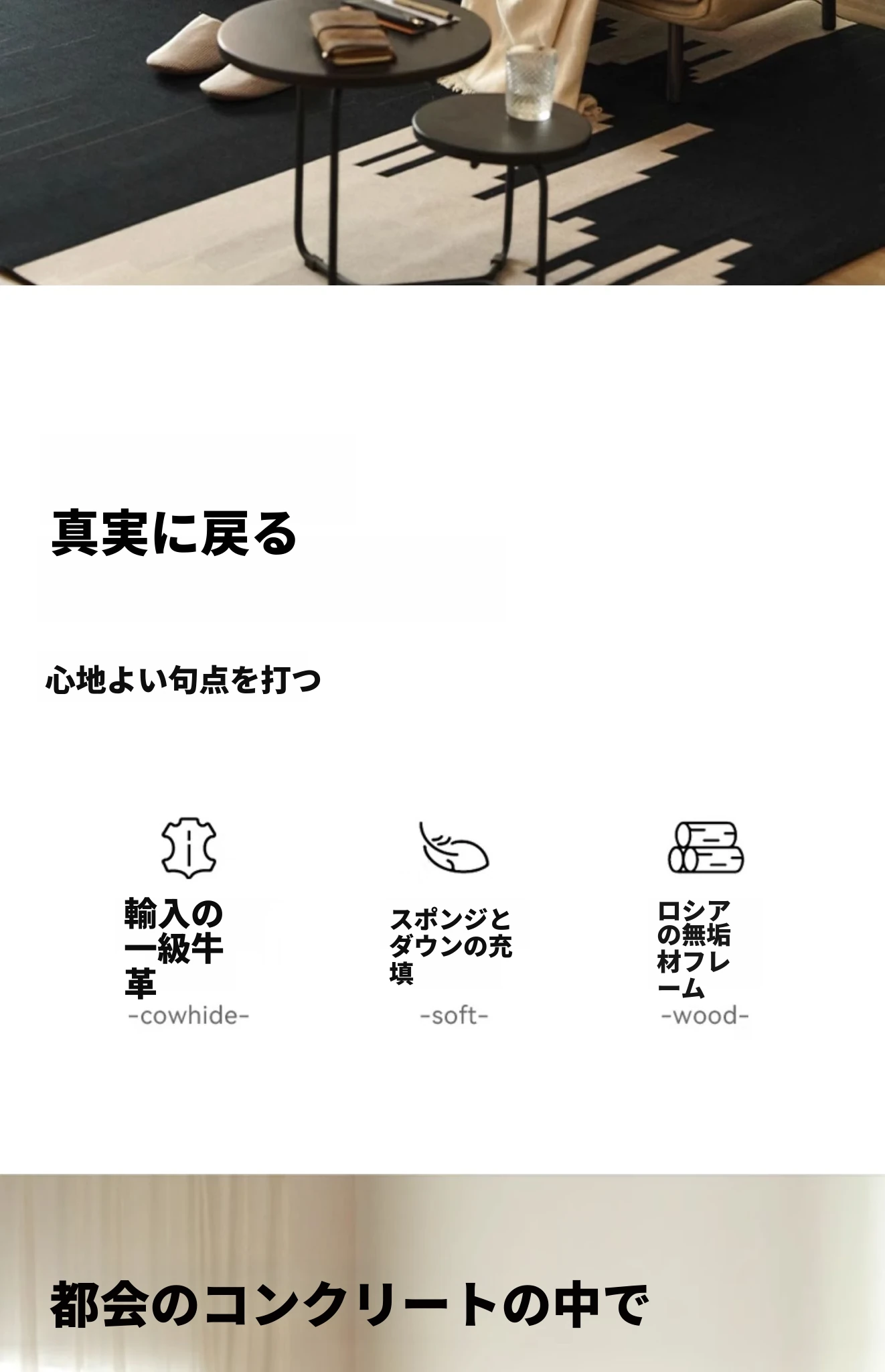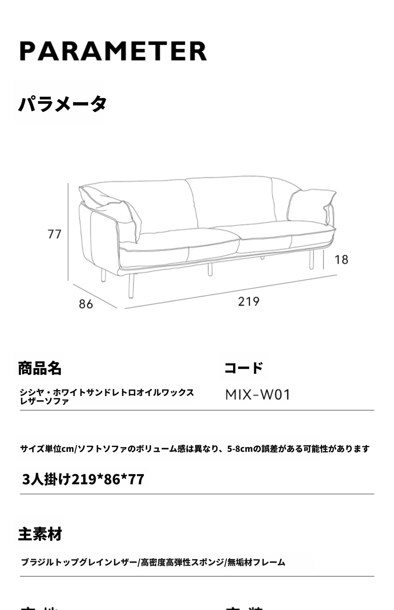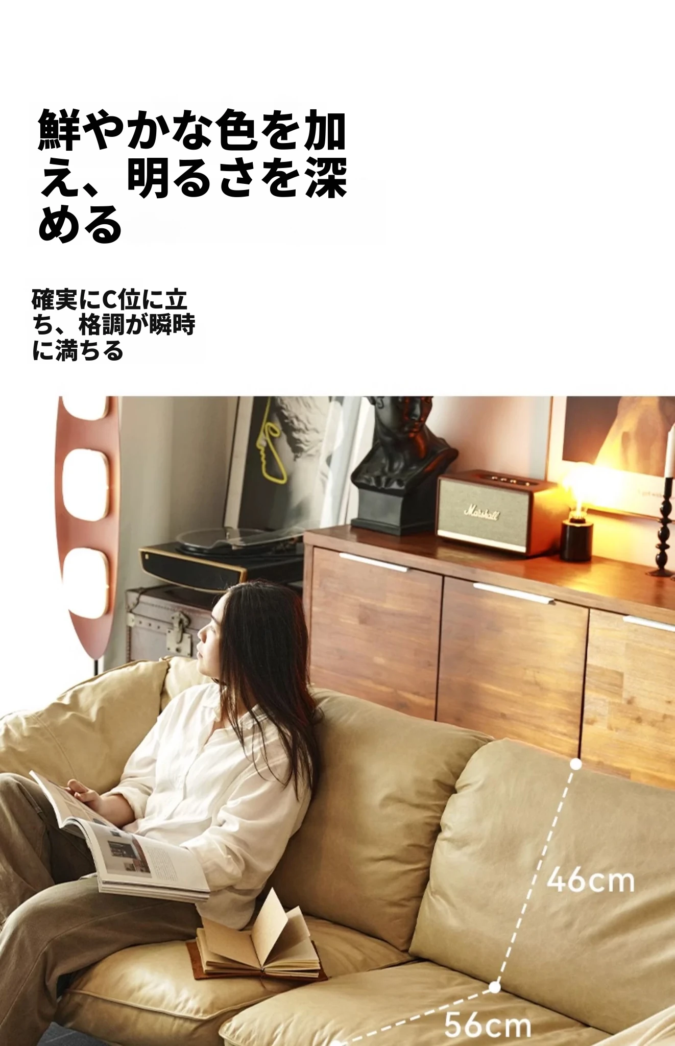 DOJUSリゾートスタイル本革ソファ 小型住宅向け 高級トップグレイン牛革&ダウンクッション 北欧風リビング用3人掛けソファで、快適さとスタイルを両立!