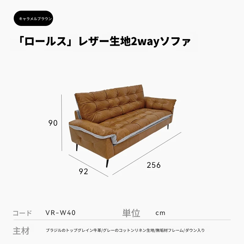 「ロールス」2.56メートルソファ(分割、合皮・布両用/キャラメルブラウン)【定価18999元、特価10999元】